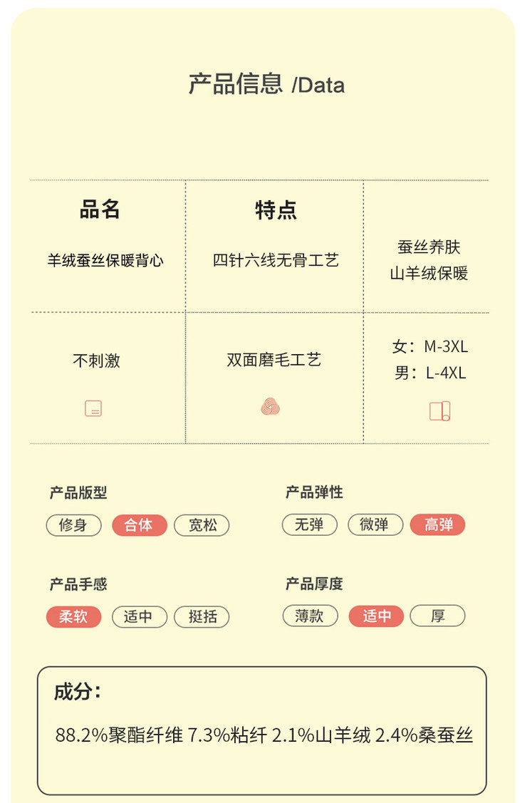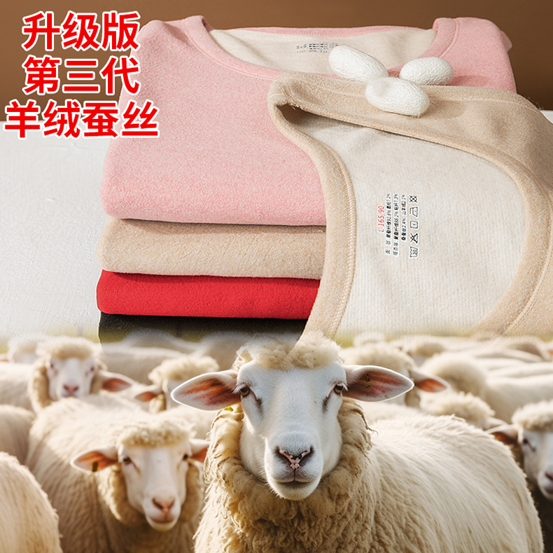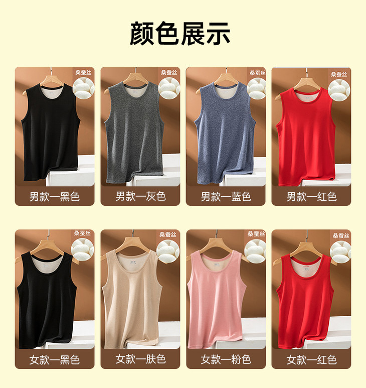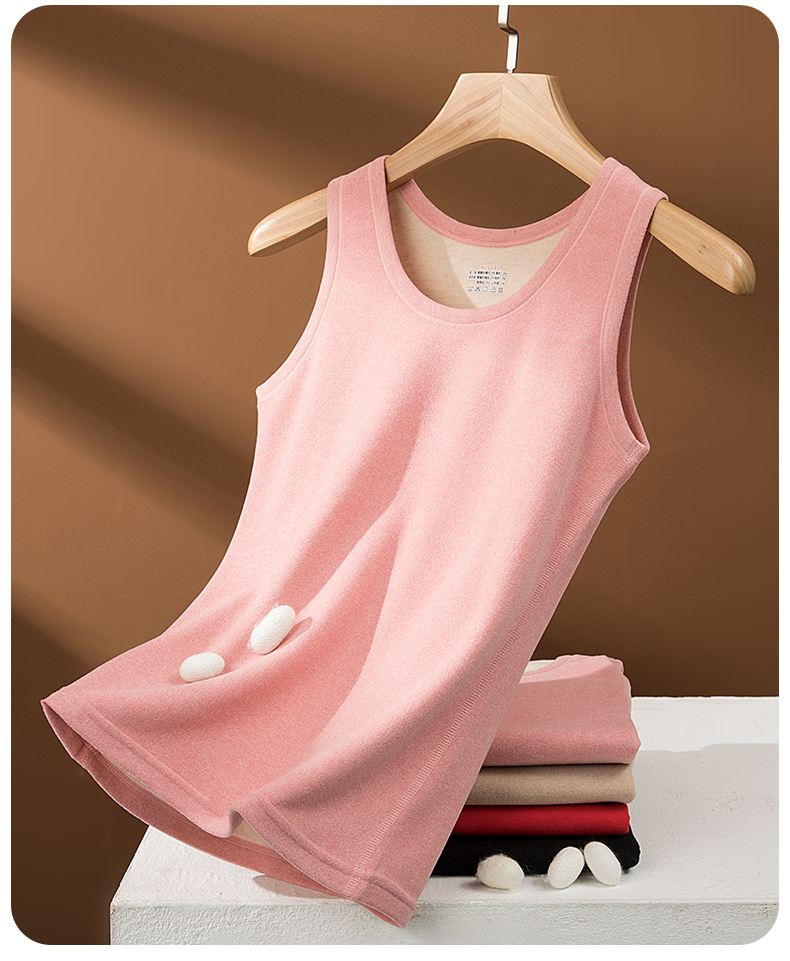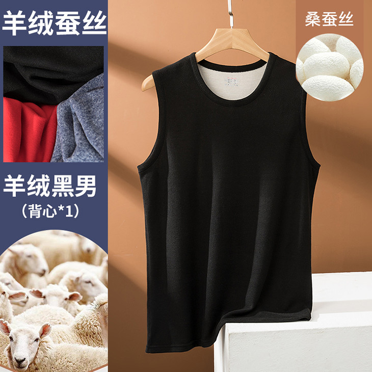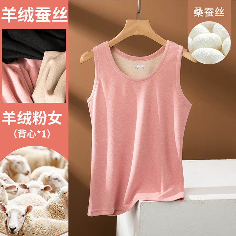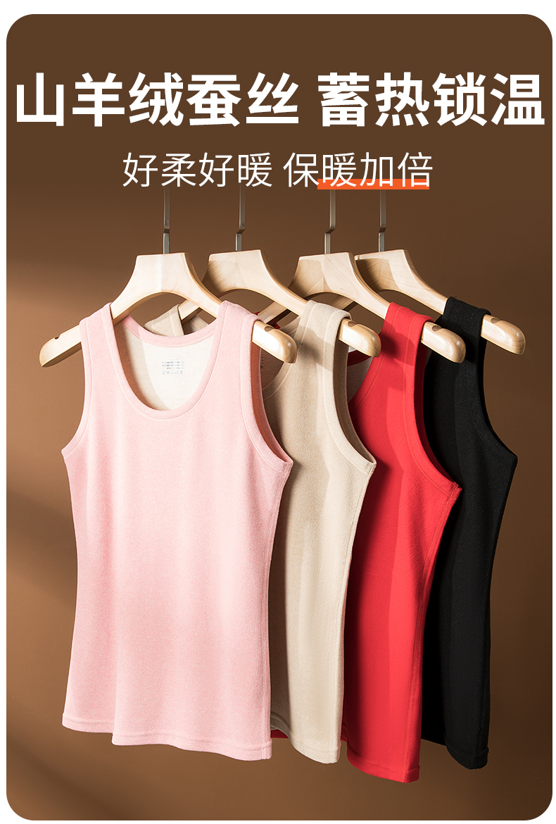 【实付满399送保温杯】【含羊绒蚕丝保暖背心】加绒打底背心 双面磨毛男女坎肩上衣