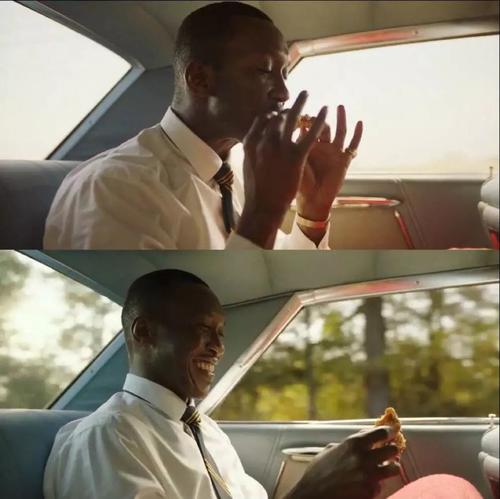 看完绿皮书,男主唐·雪利在吃一块炸鸡块后终于放开自我,