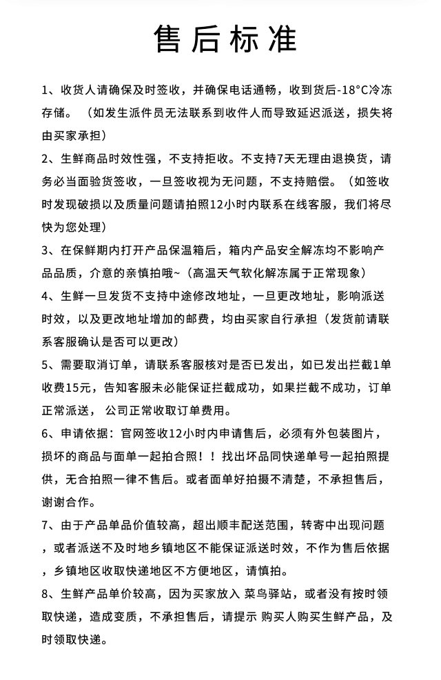 【售后须知】冷冻食品类一经售出不接受退货 不接受个人口味为依据的售后