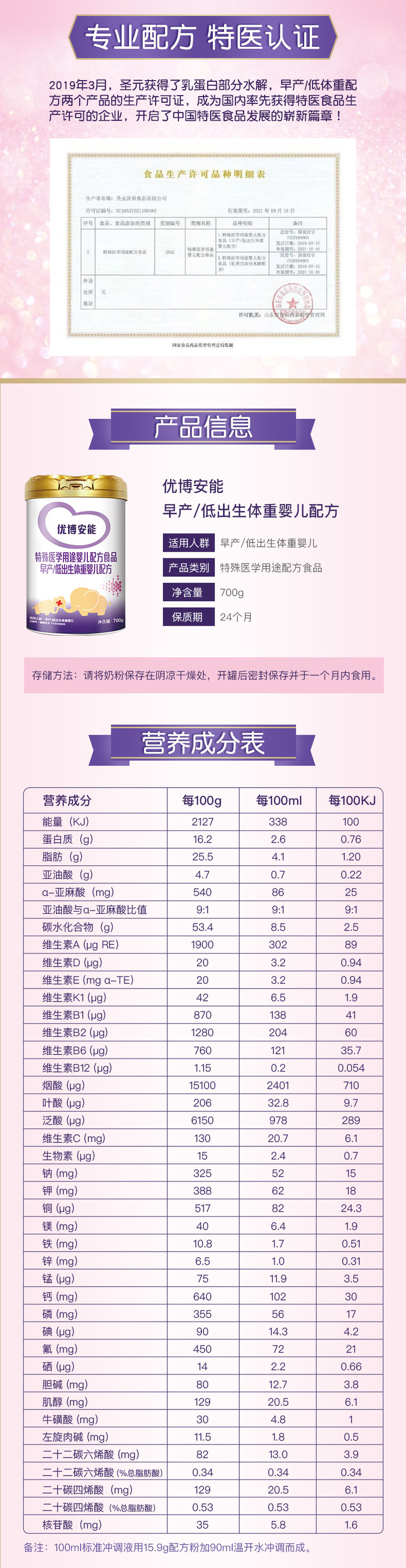 优博安能 特殊医学用途 早产/低出生体重婴儿配方奶粉