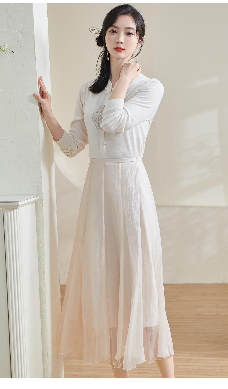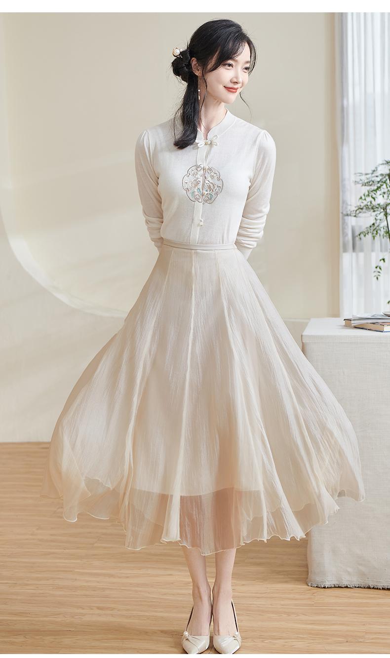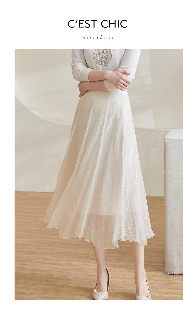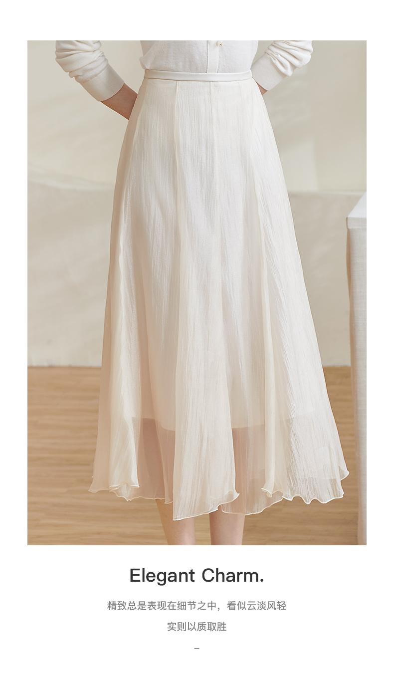 米思阳2026夏季新款优雅气质纯色大摆裙高腰修身网纱半身裙女1642