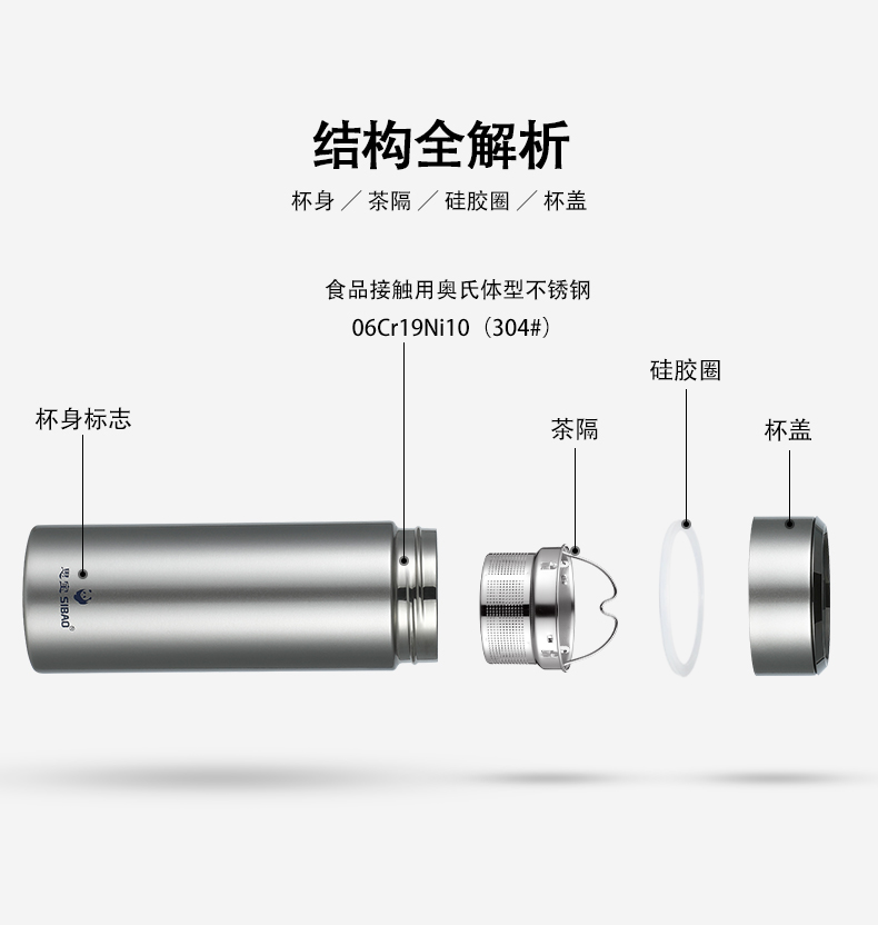 思宝旗舰店保温杯晨光B2/3真空杯办公红茶杯篆文方印水杯