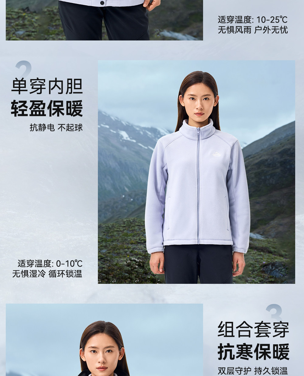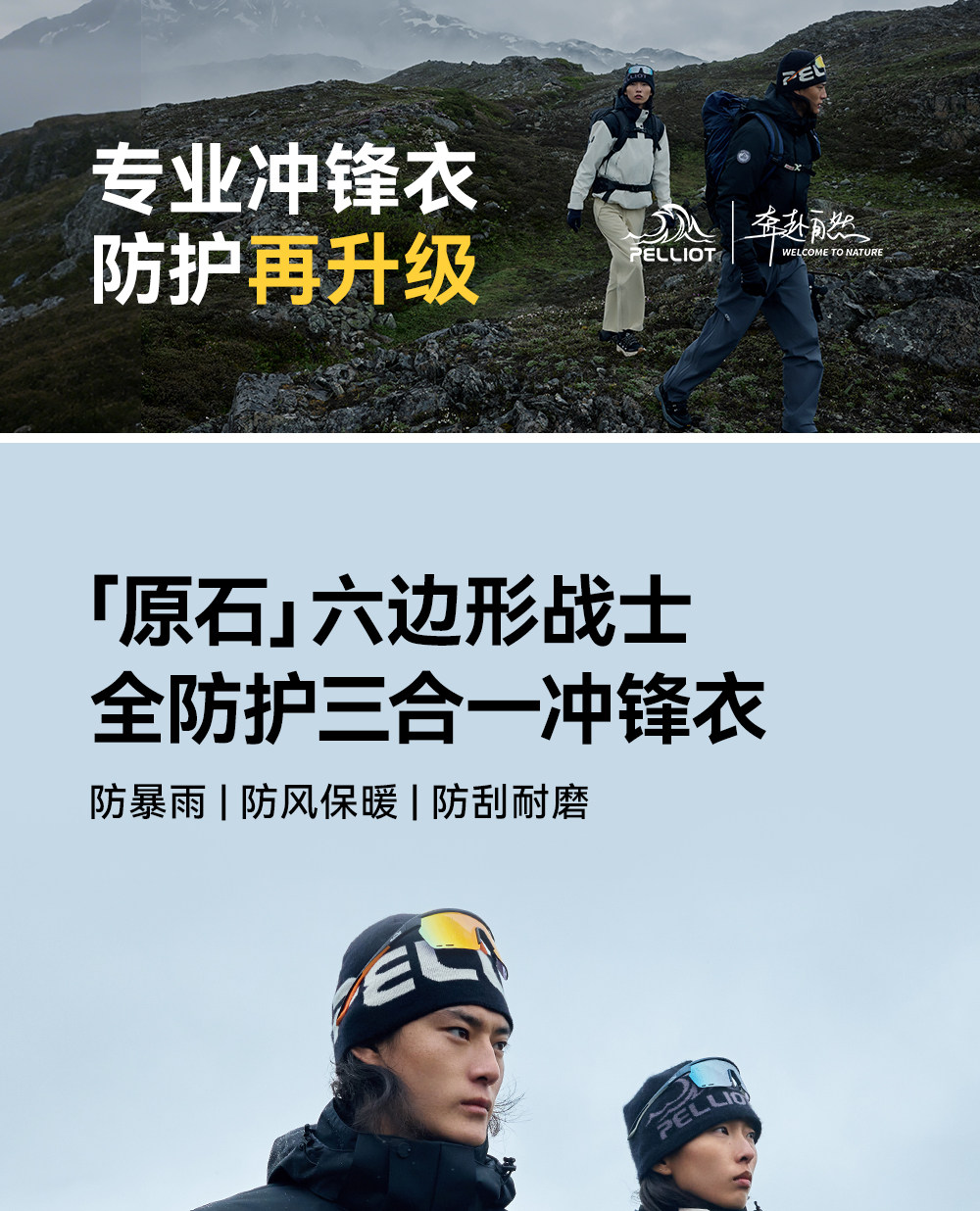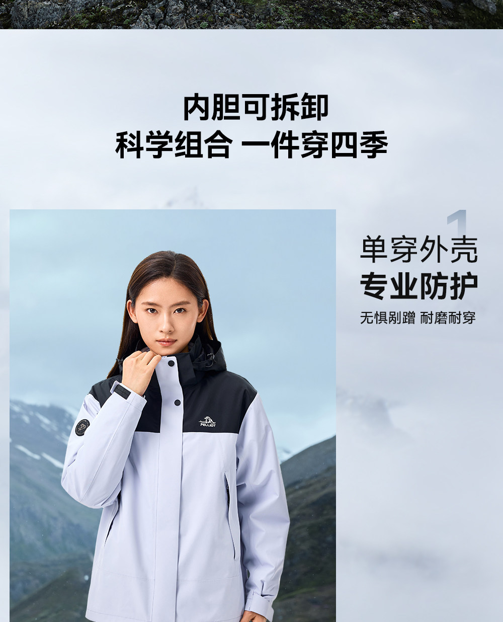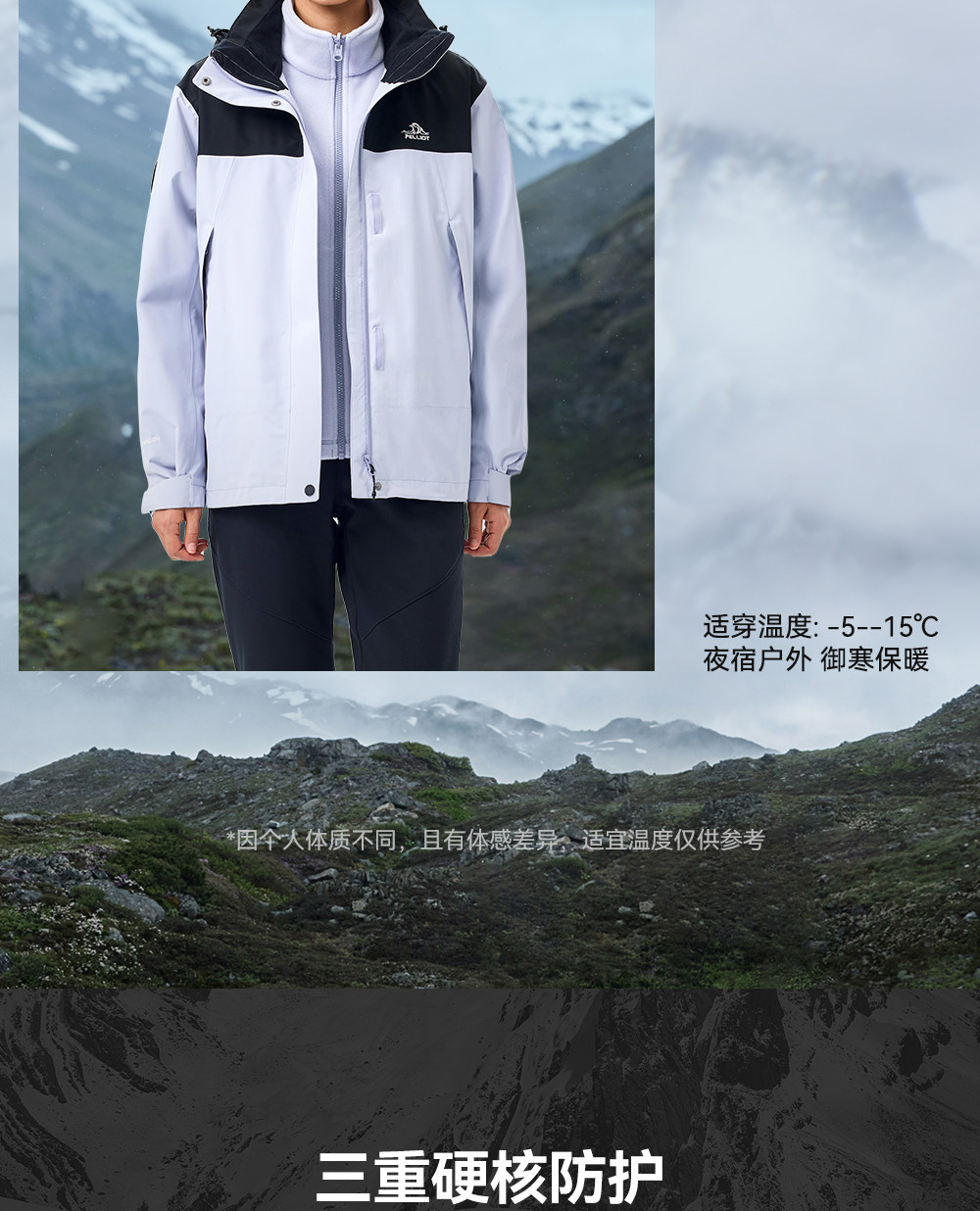 【原石】伯希和户外冲锋衣女保暖摇粒绒内胆防风三合一登山外套男