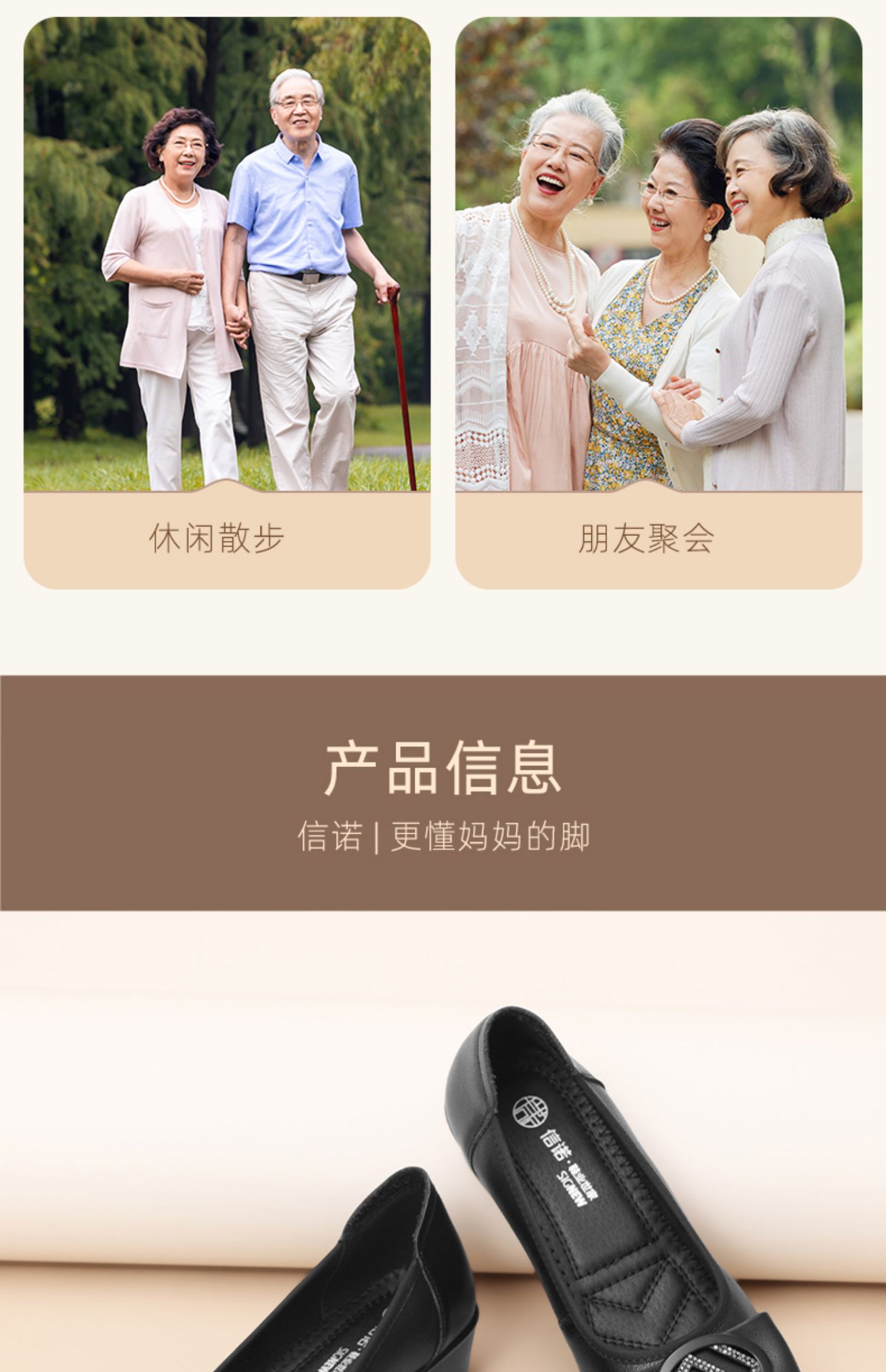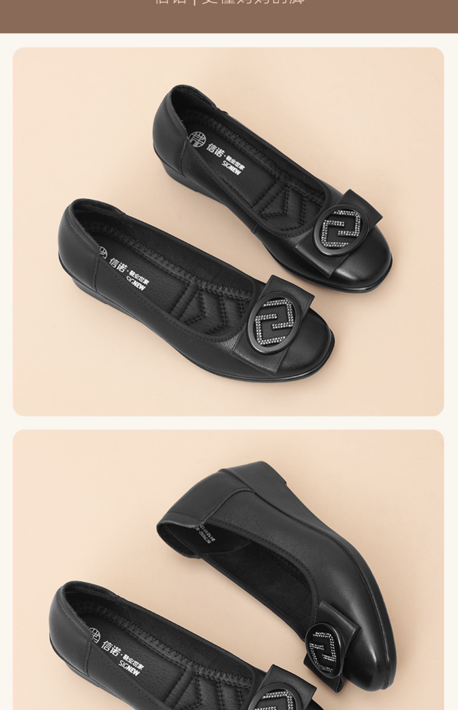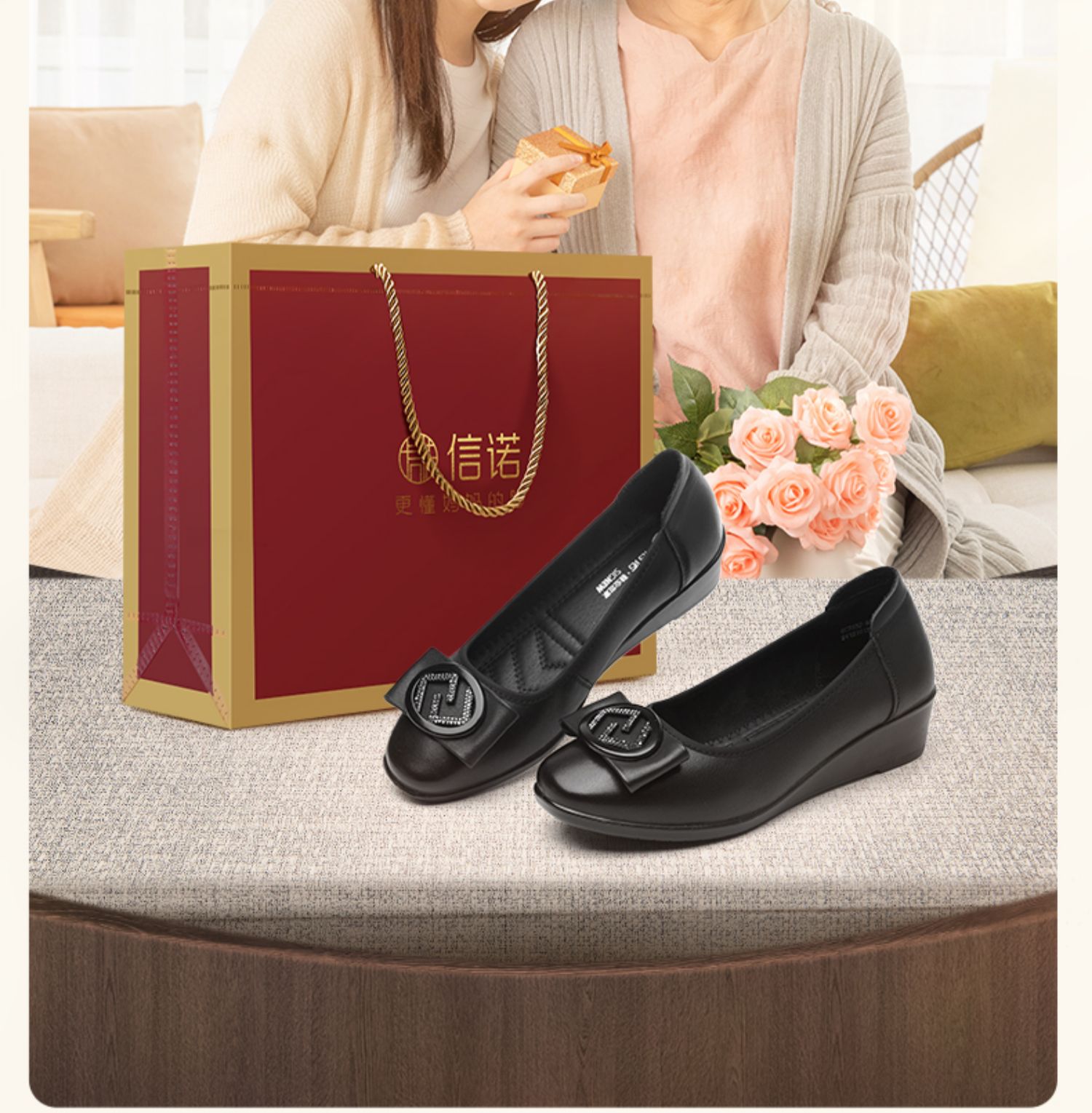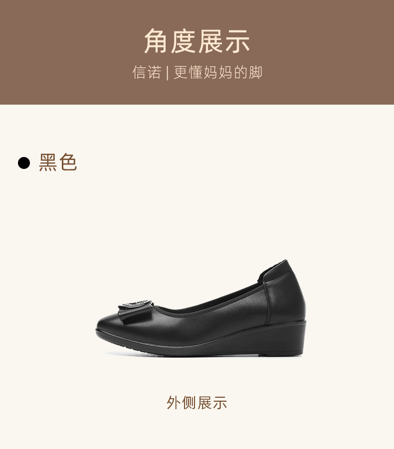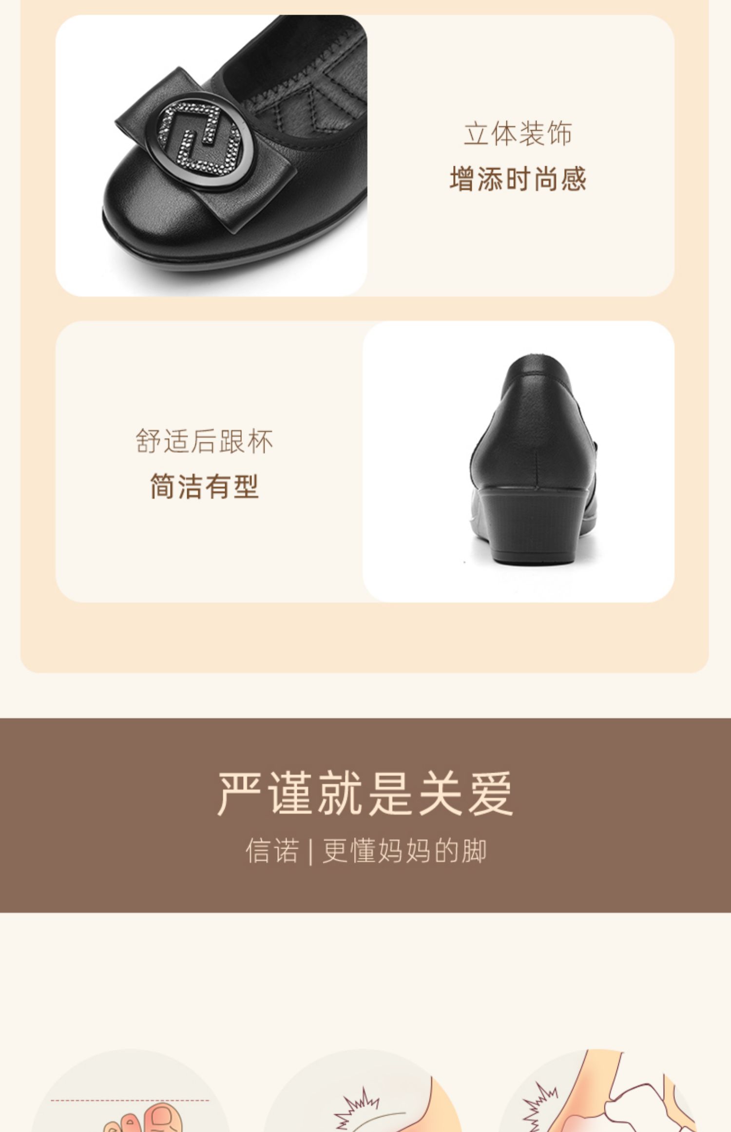 信诺真皮女鞋一脚蹬妈妈鞋子2025春季新款中老年软底皮鞋坡跟单鞋5C7832-83