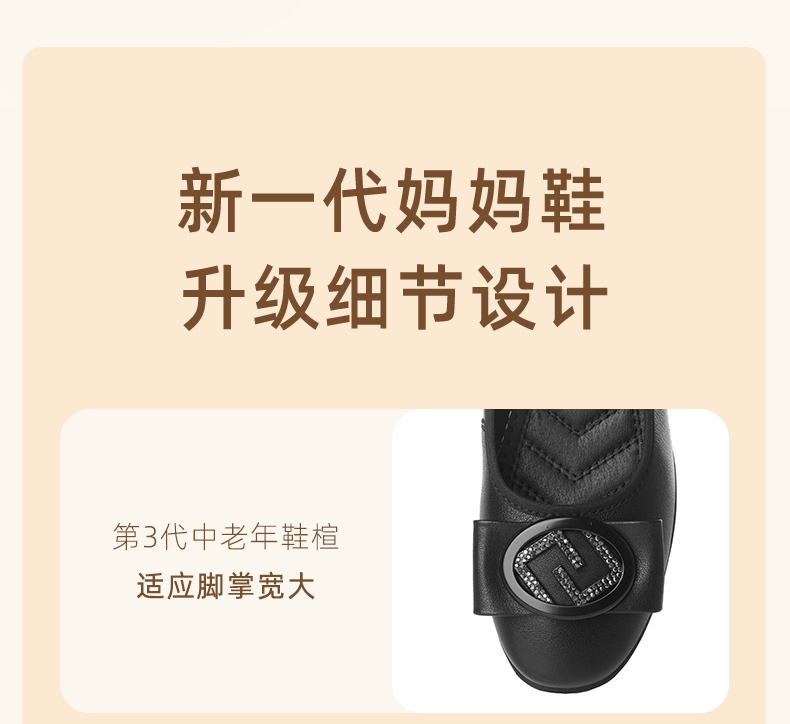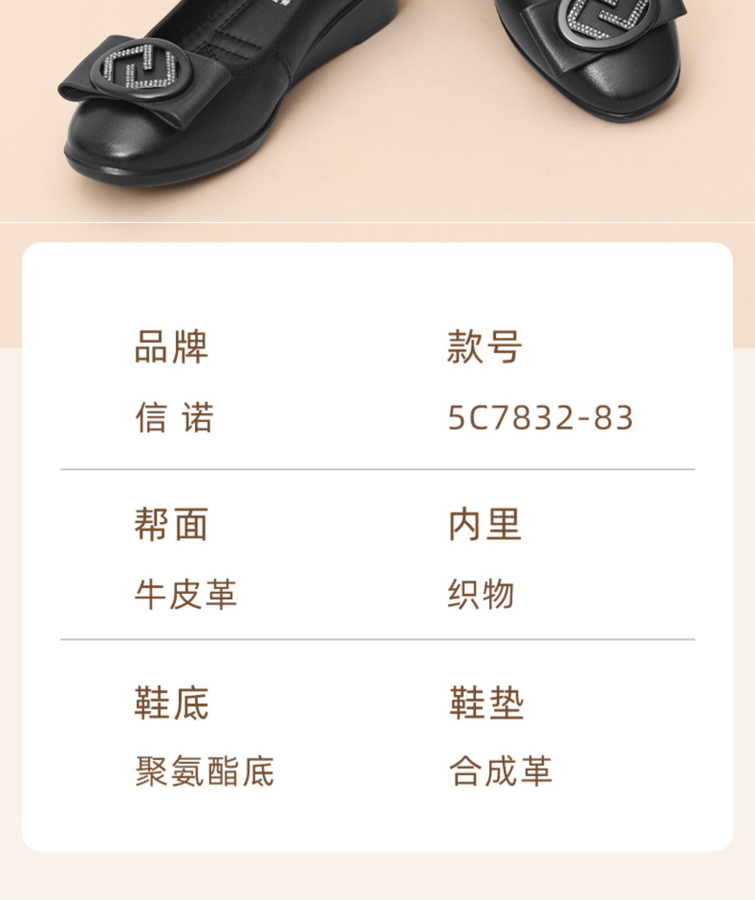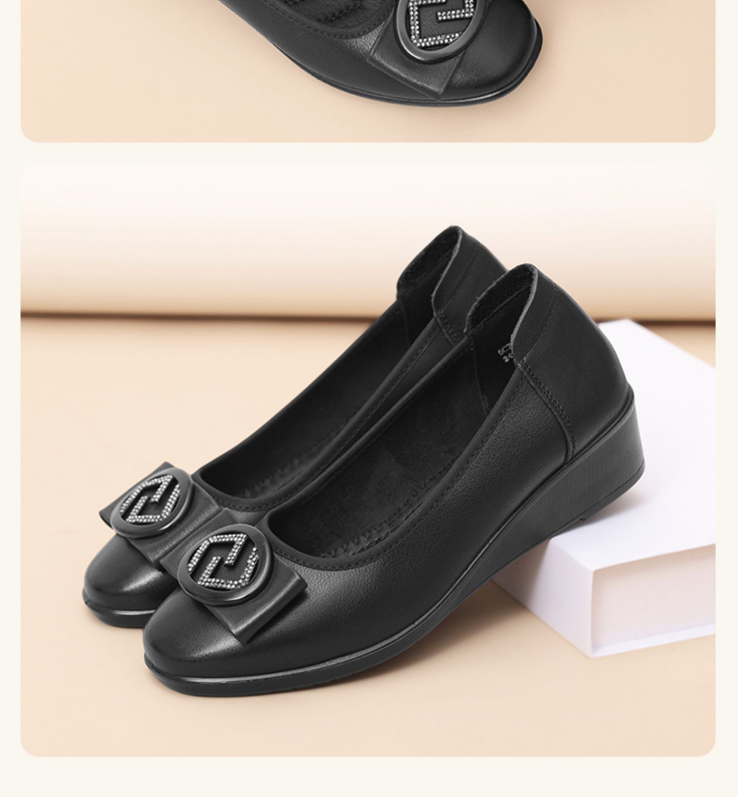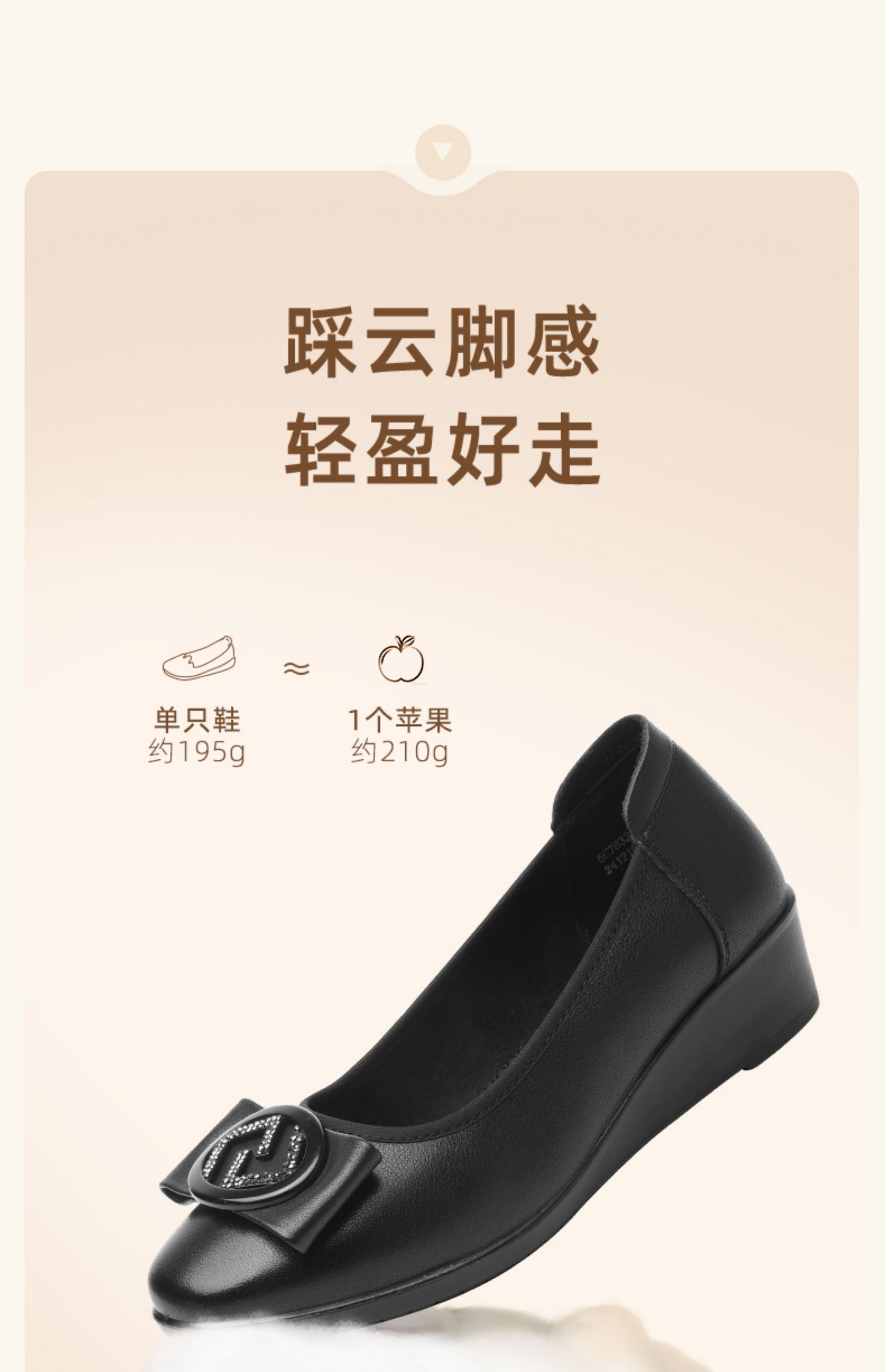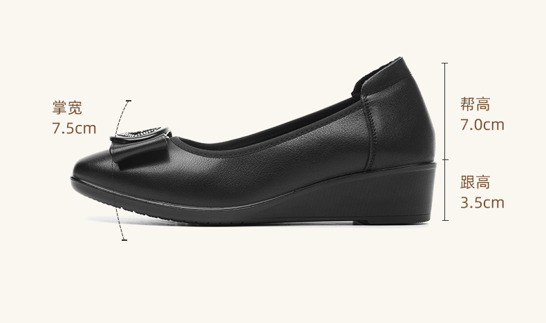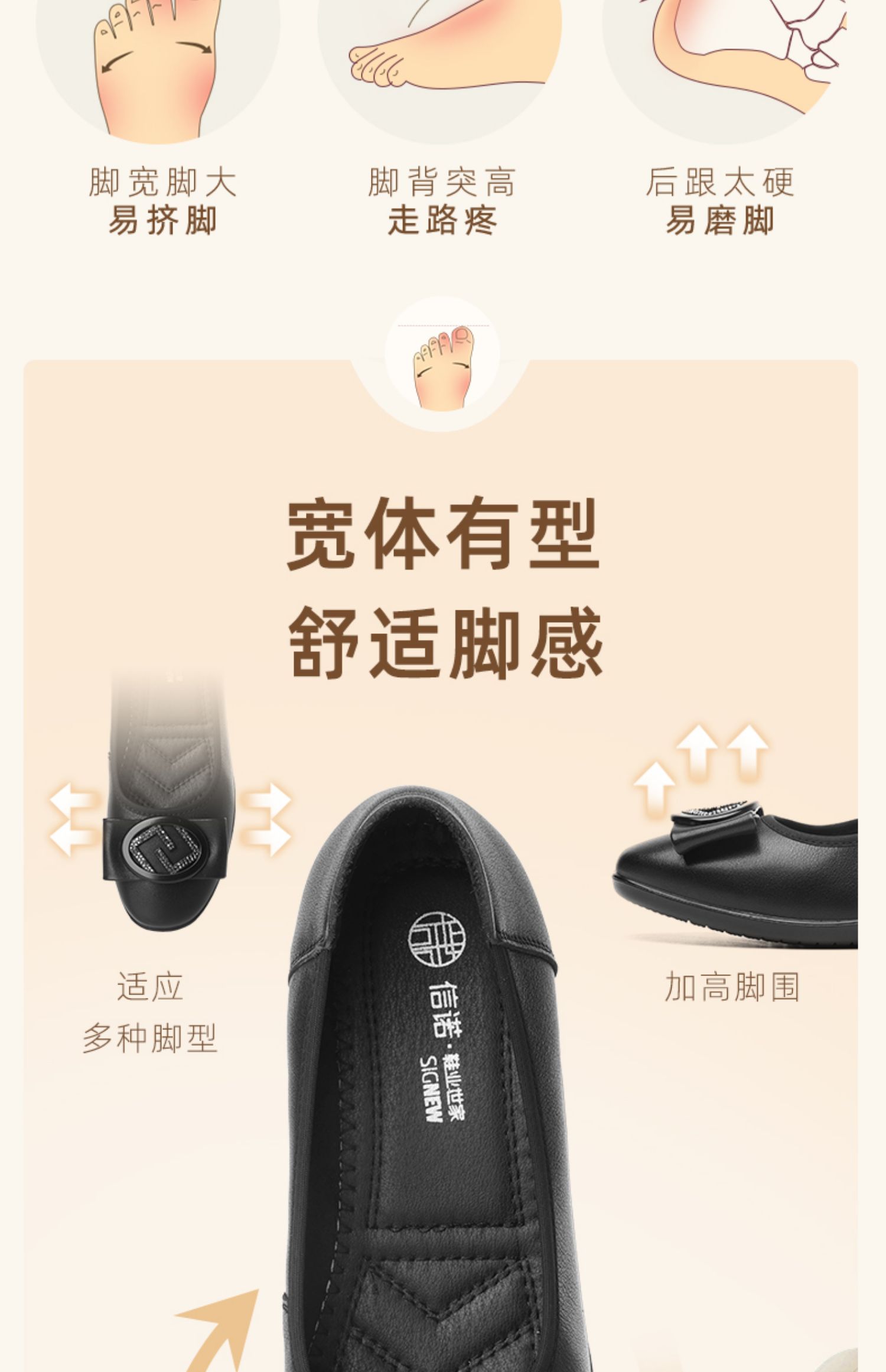 信诺真皮女鞋一脚蹬妈妈鞋子2025春季新款中老年软底皮鞋坡跟单鞋5C7832-83