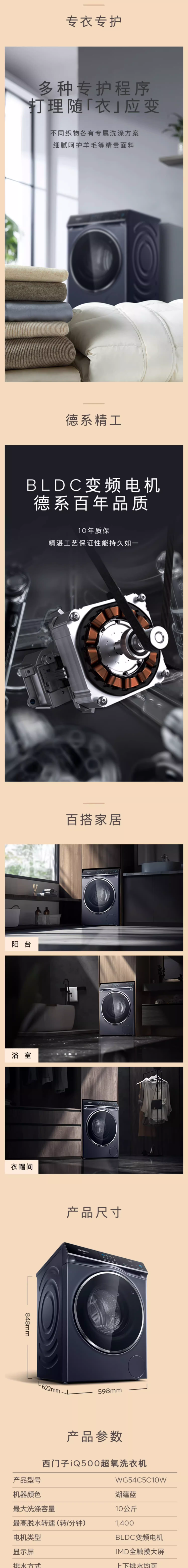 【超氧】西门子(252185)10公斤滚筒家用全自动洗衣机变频一级能效WG54C5C10W