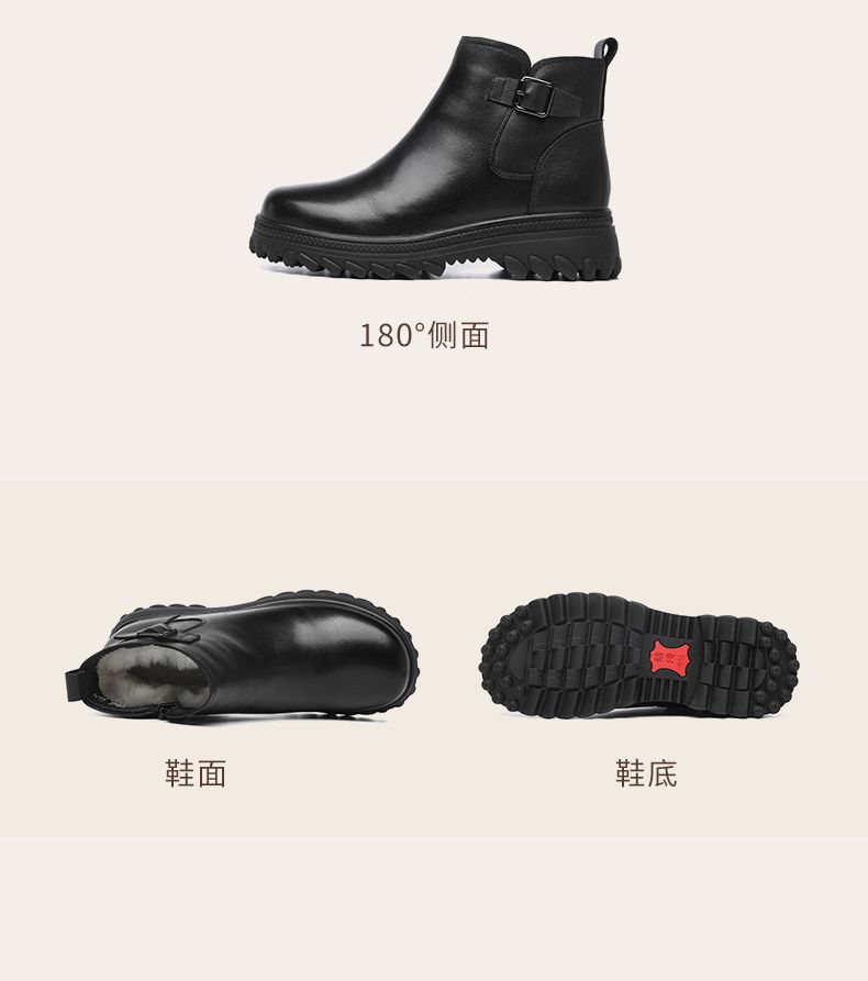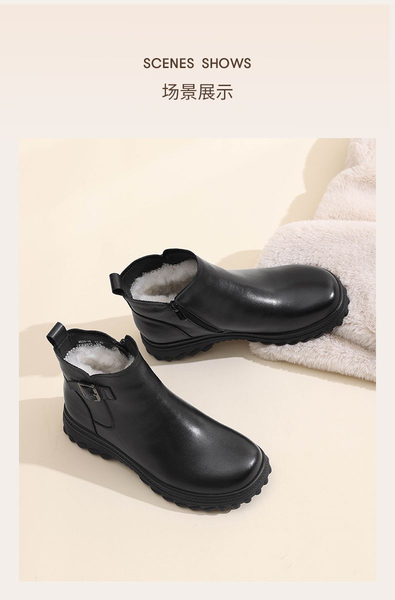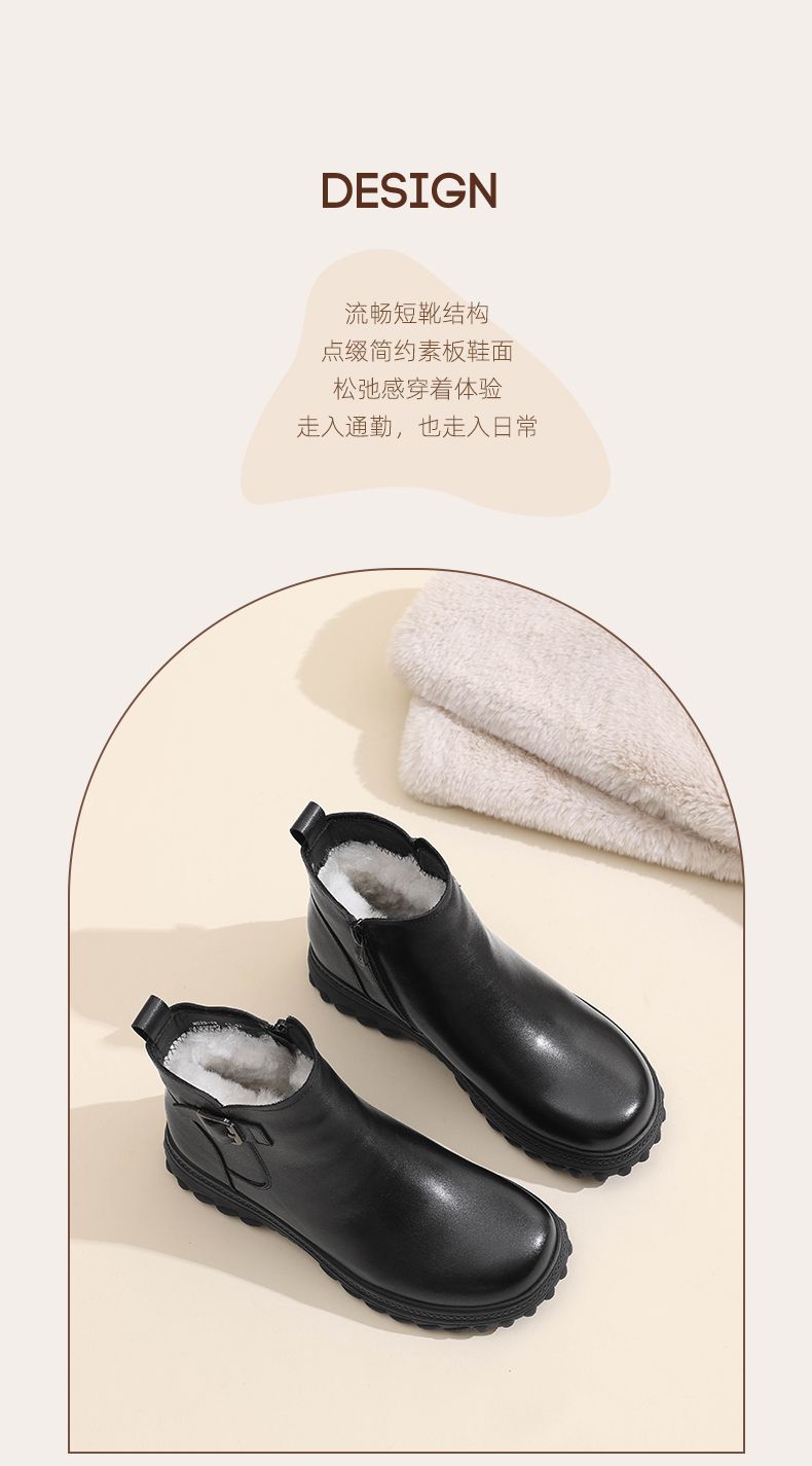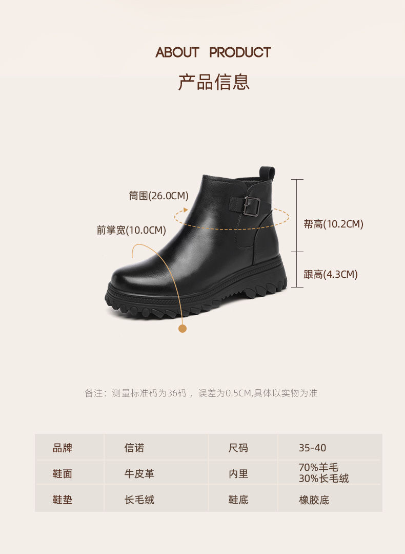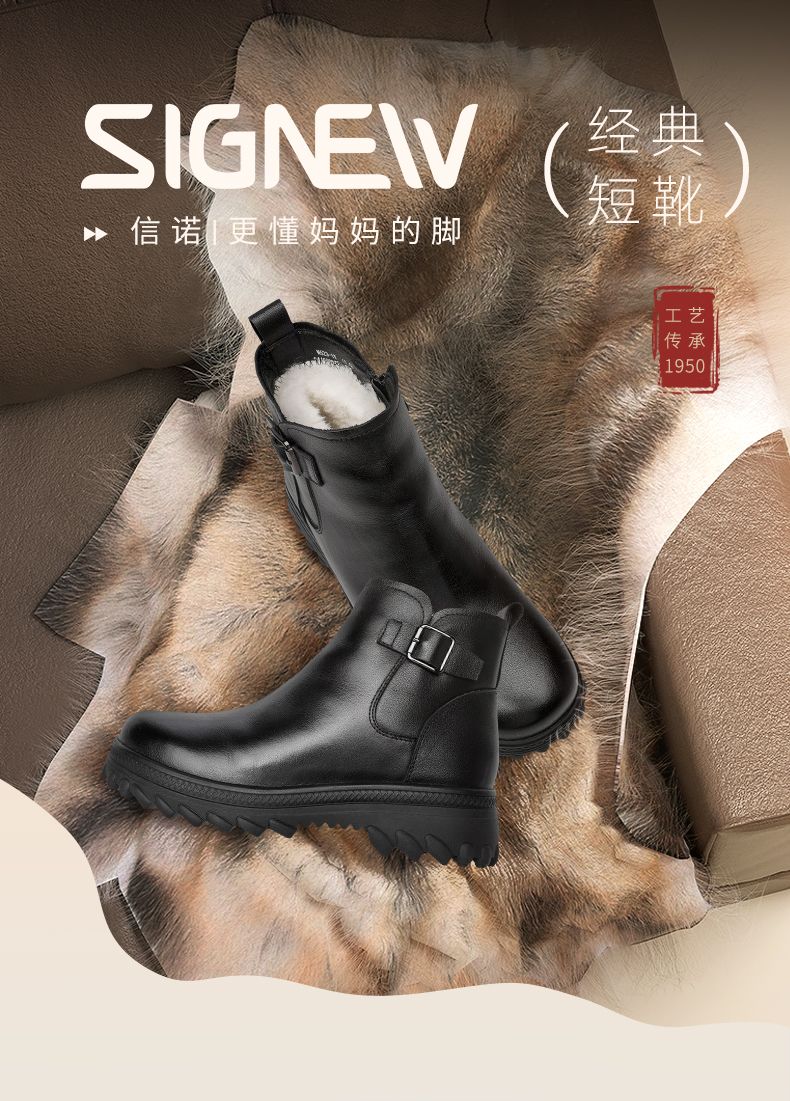 信诺真皮羊毛短靴女加绒保暖雪地靴2024新款冬季妈妈棉鞋厚底皮鞋M523-1Y