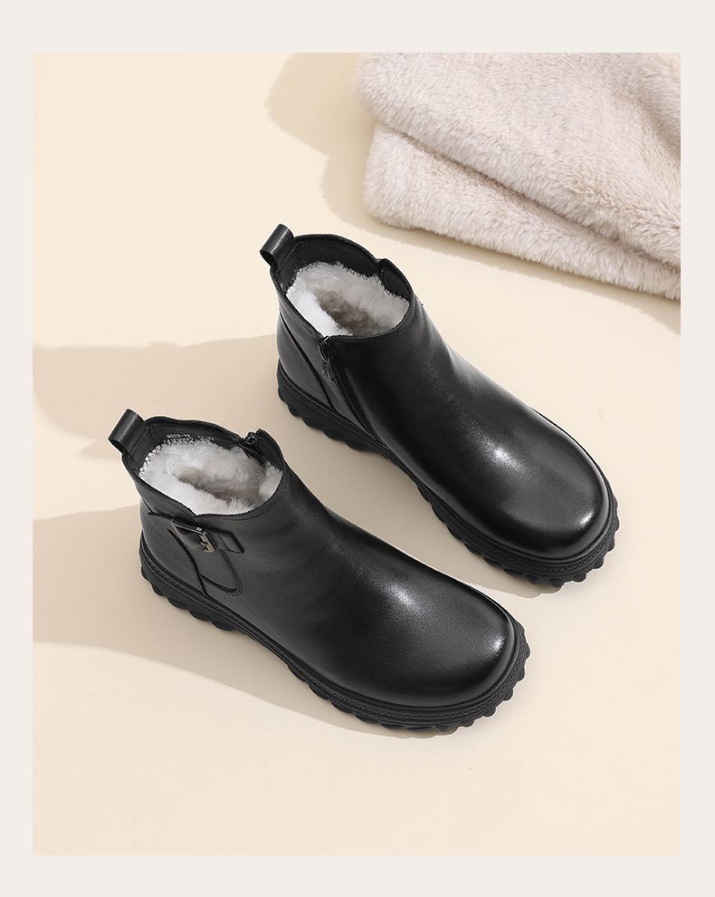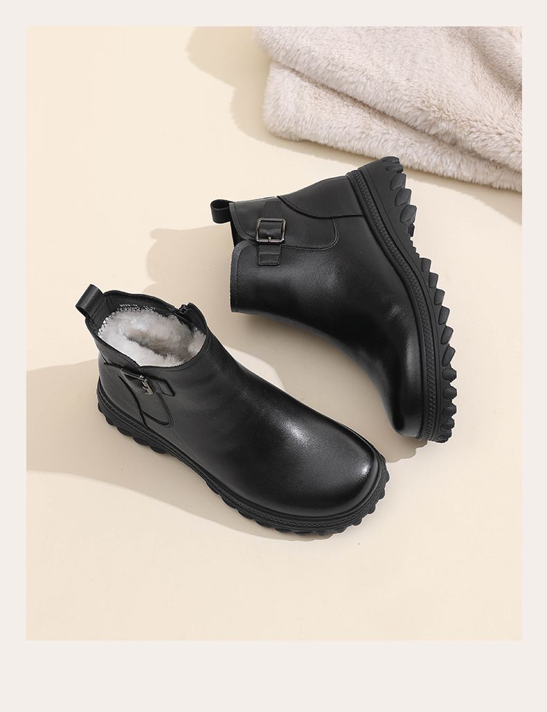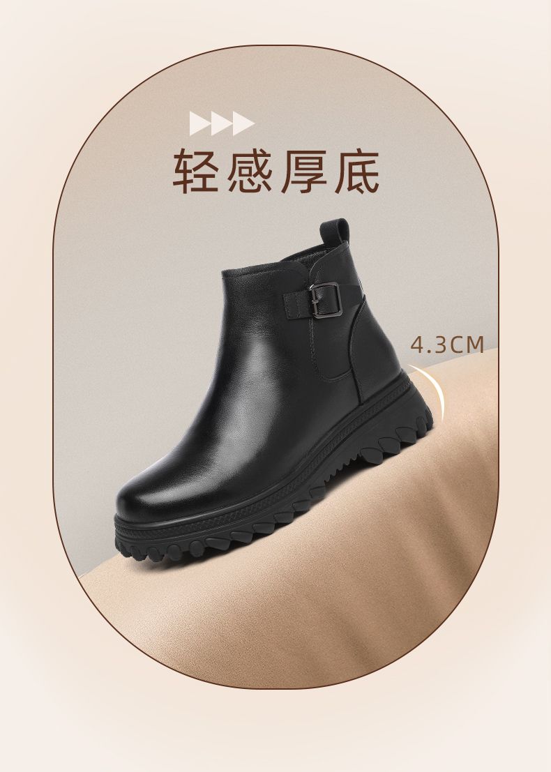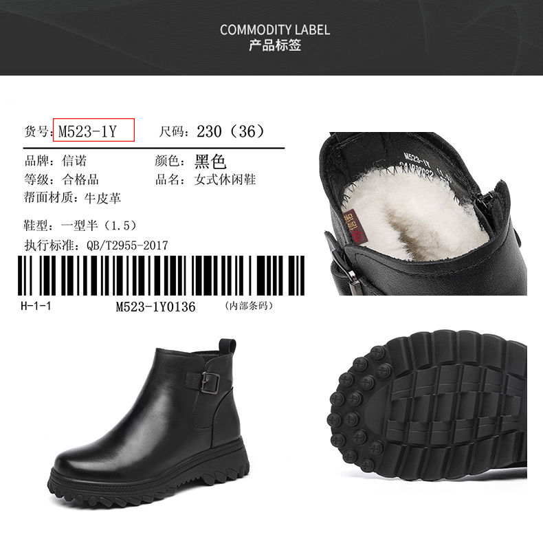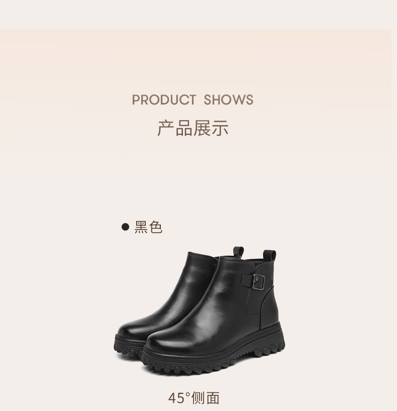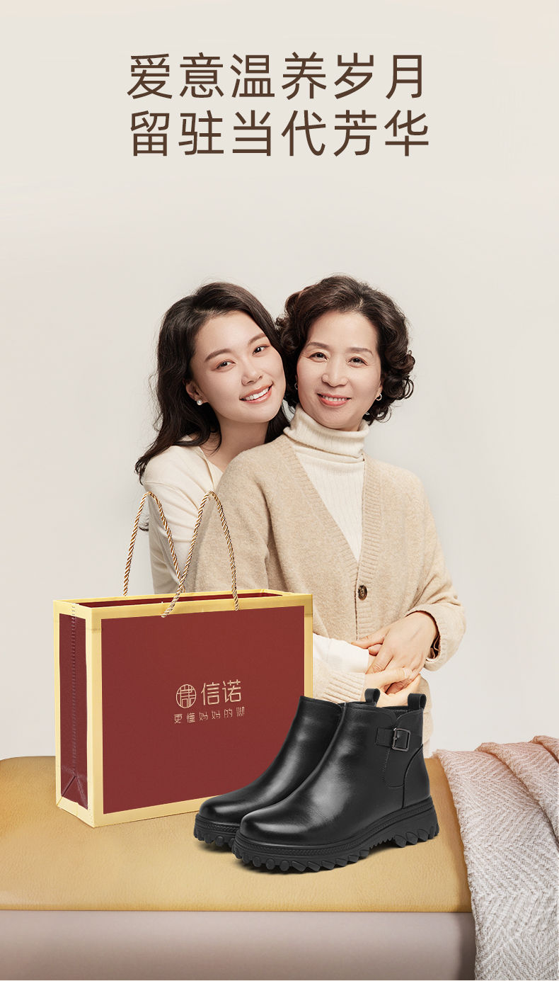 信诺真皮羊毛短靴女加绒保暖雪地靴2024新款冬季妈妈棉鞋厚底皮鞋M523-1Y