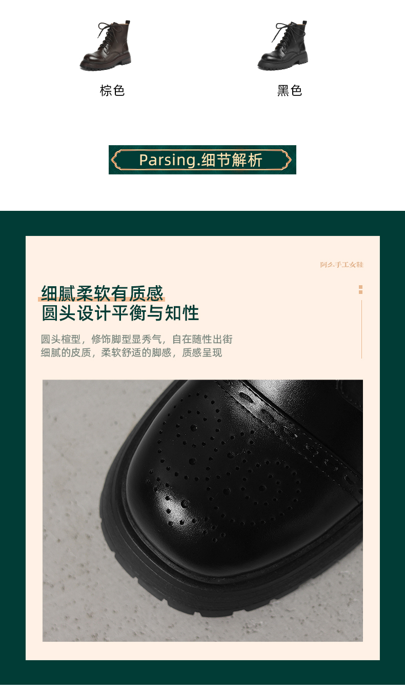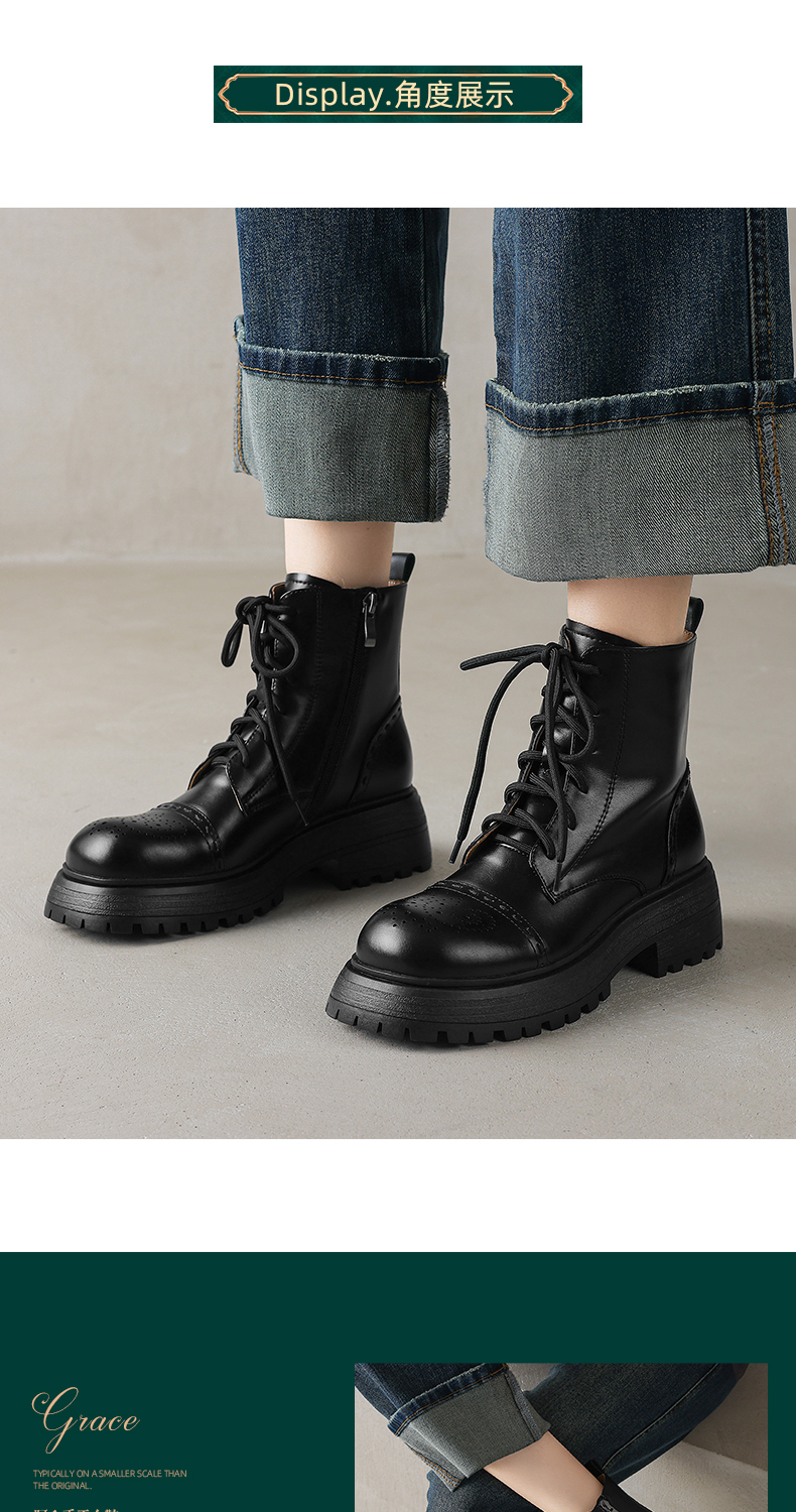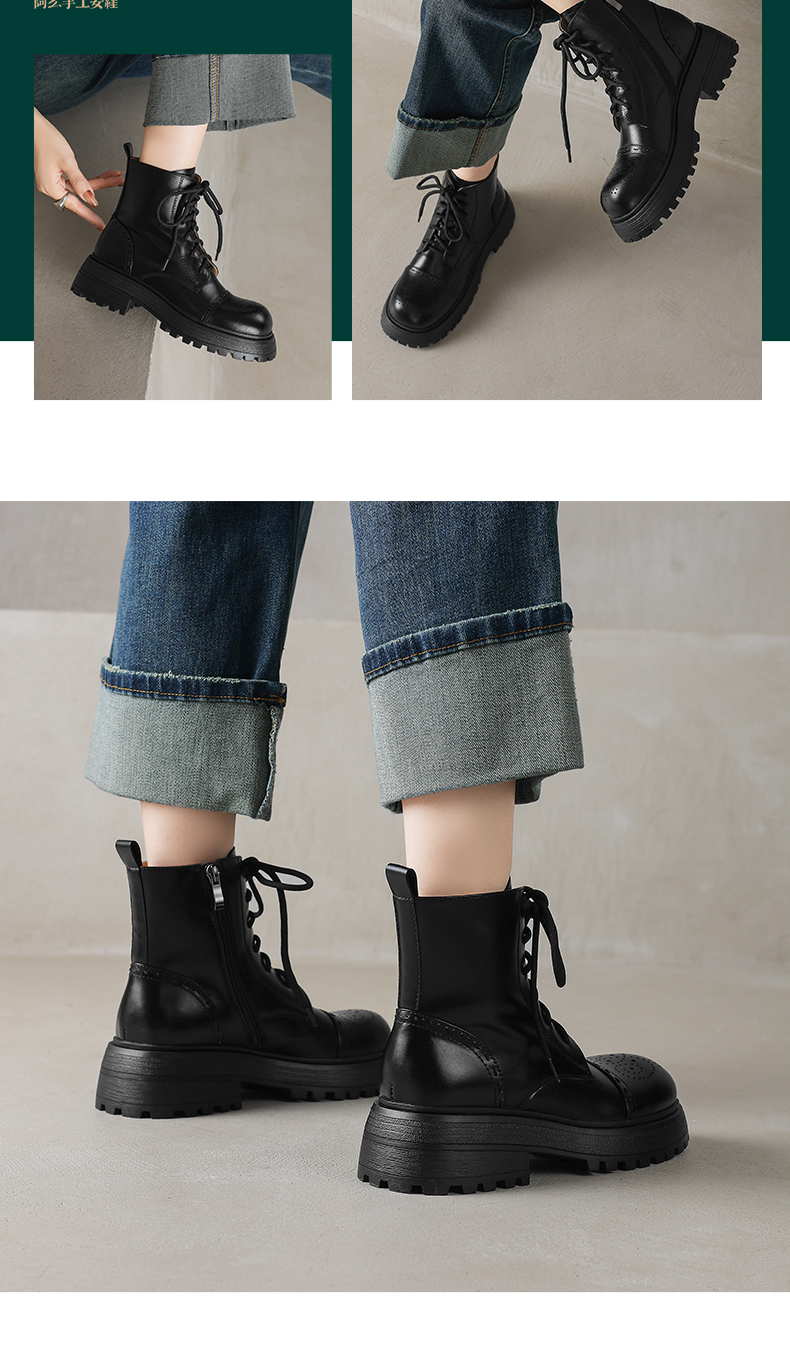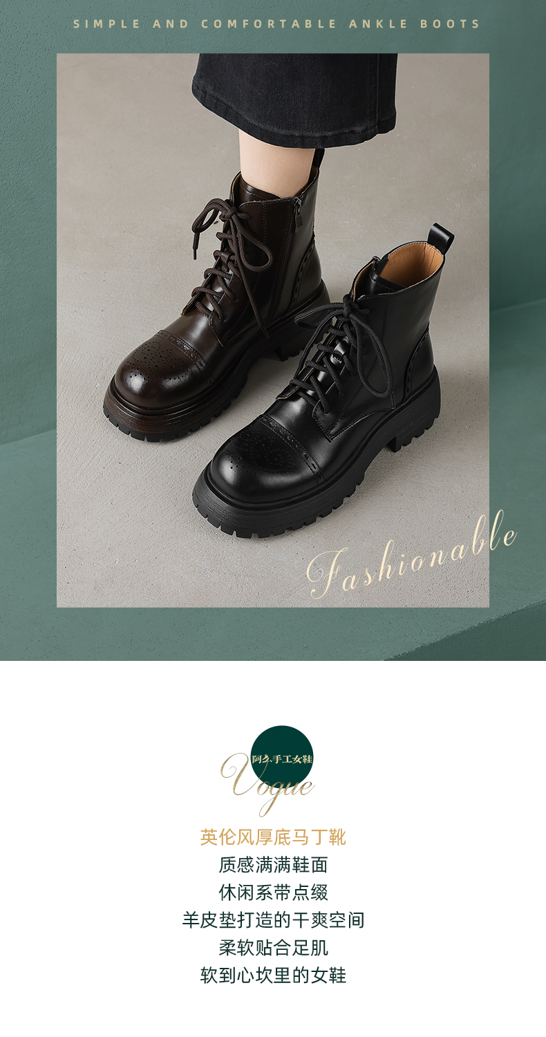 阿么手工女鞋厚底英伦风马丁靴女增高显瘦2025新款真皮短靴5.5CM