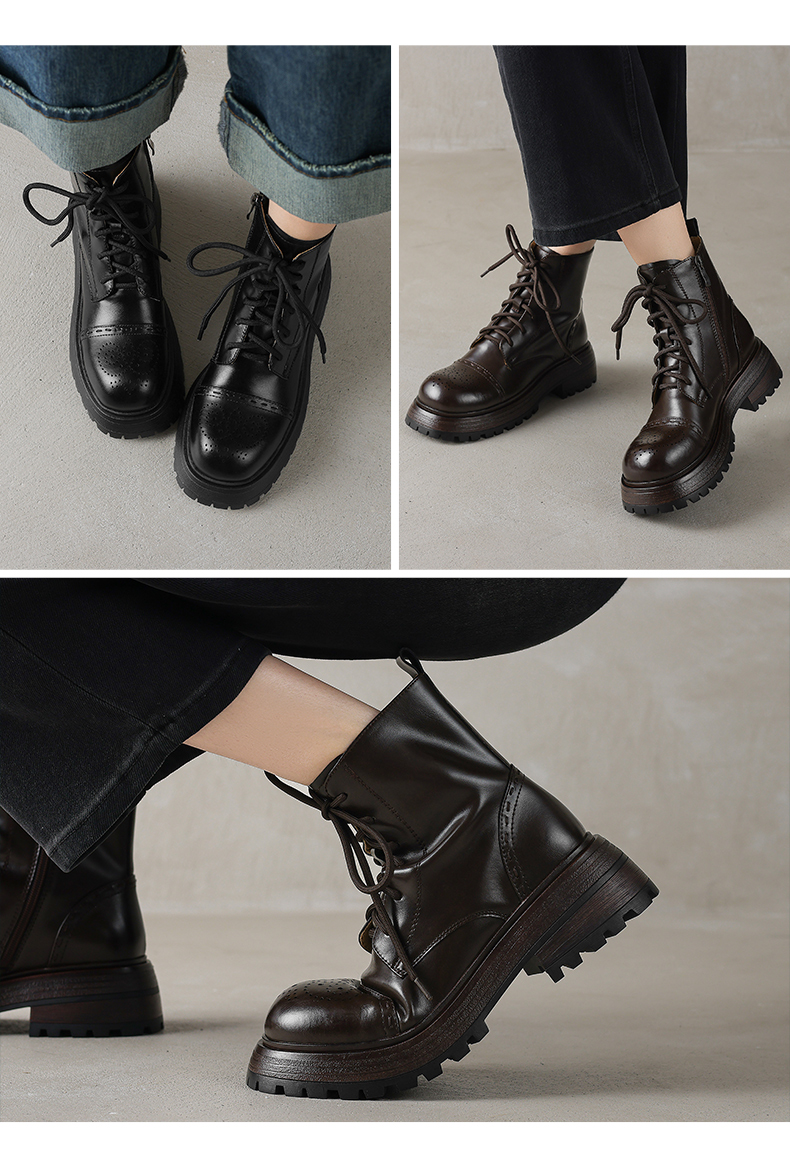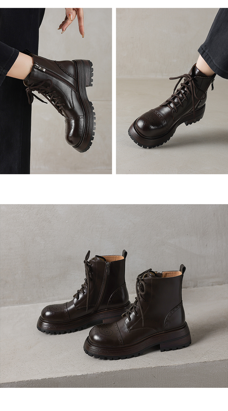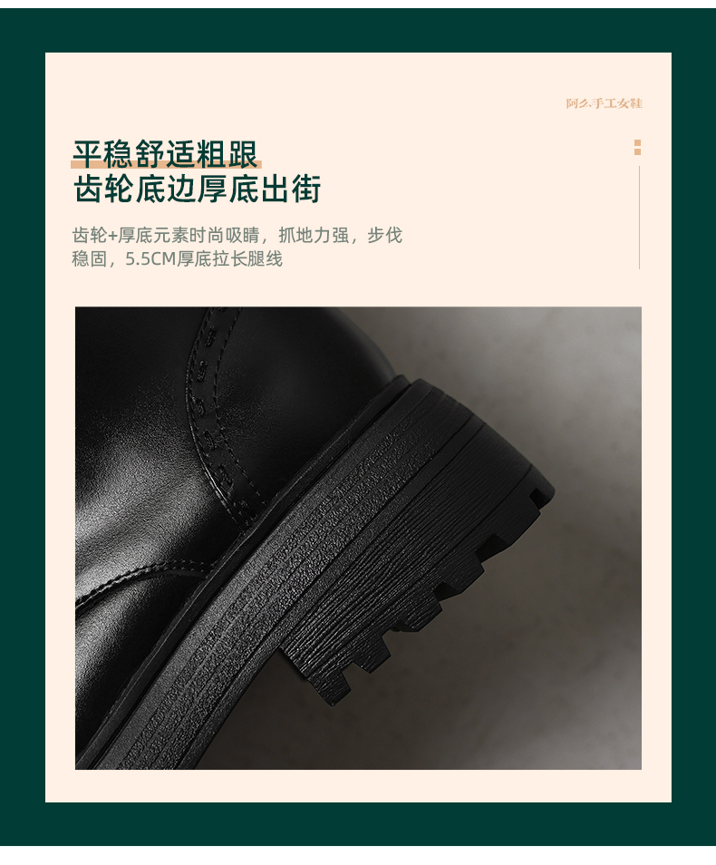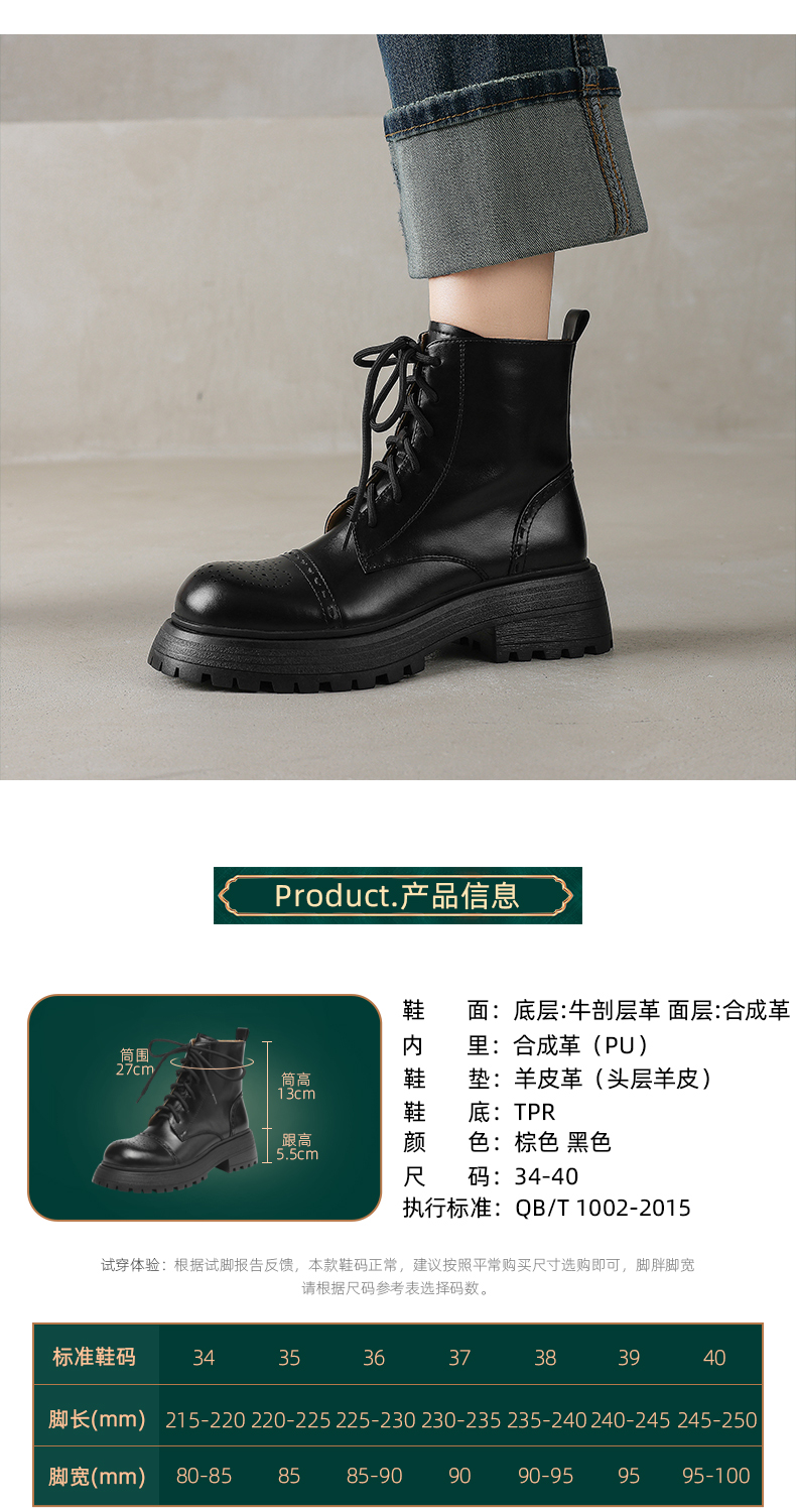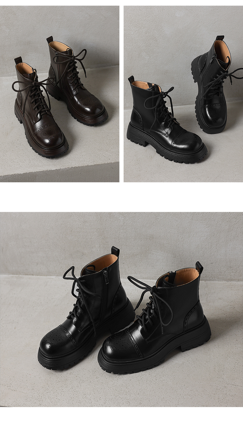 阿么手工女鞋厚底英伦风马丁靴女增高显瘦2025新款真皮短靴5.5CM