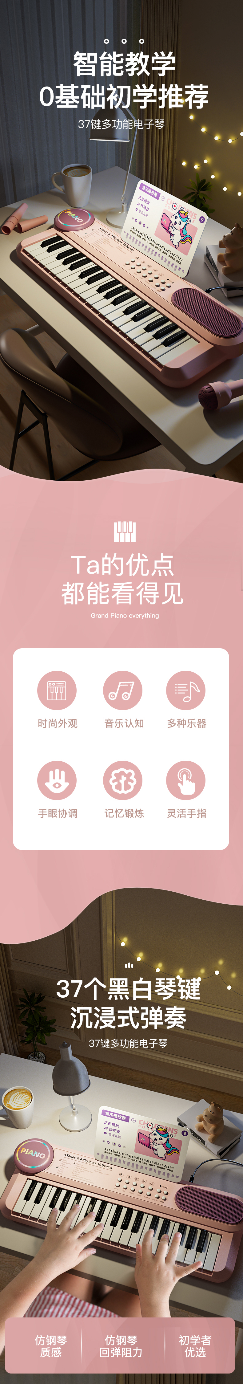 【零基础学钢琴推荐】37键电子琴小钢琴儿童玩具初学女孩子宝宝可弹奏多功能乐器