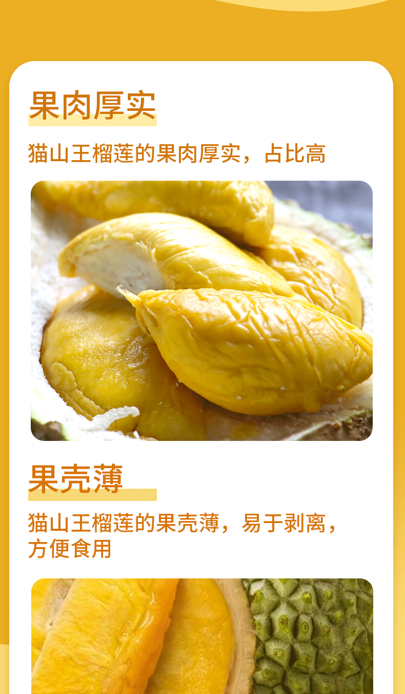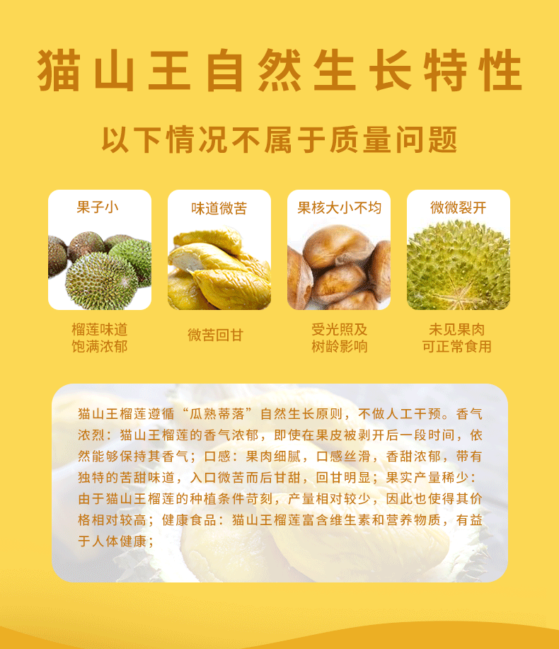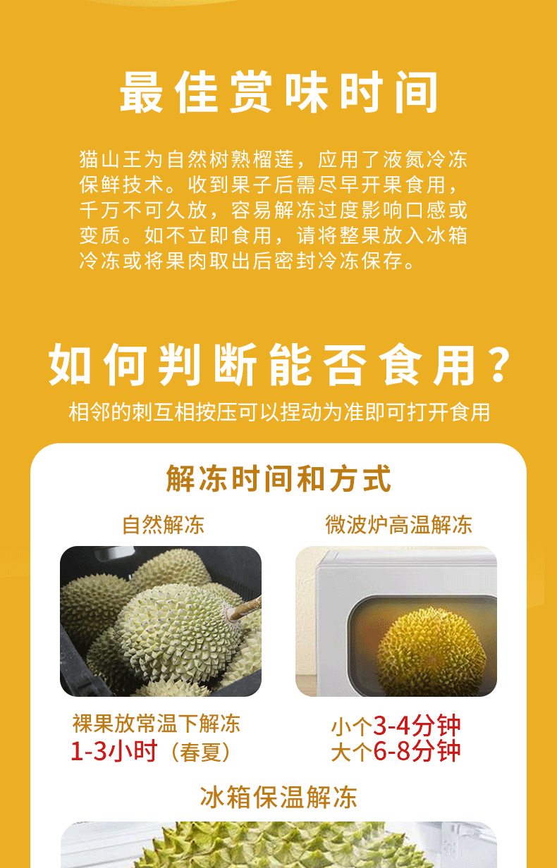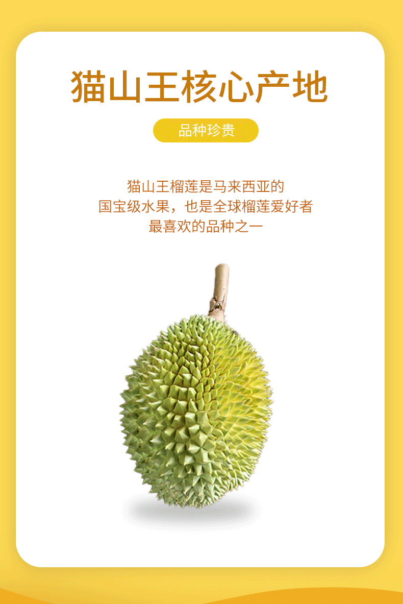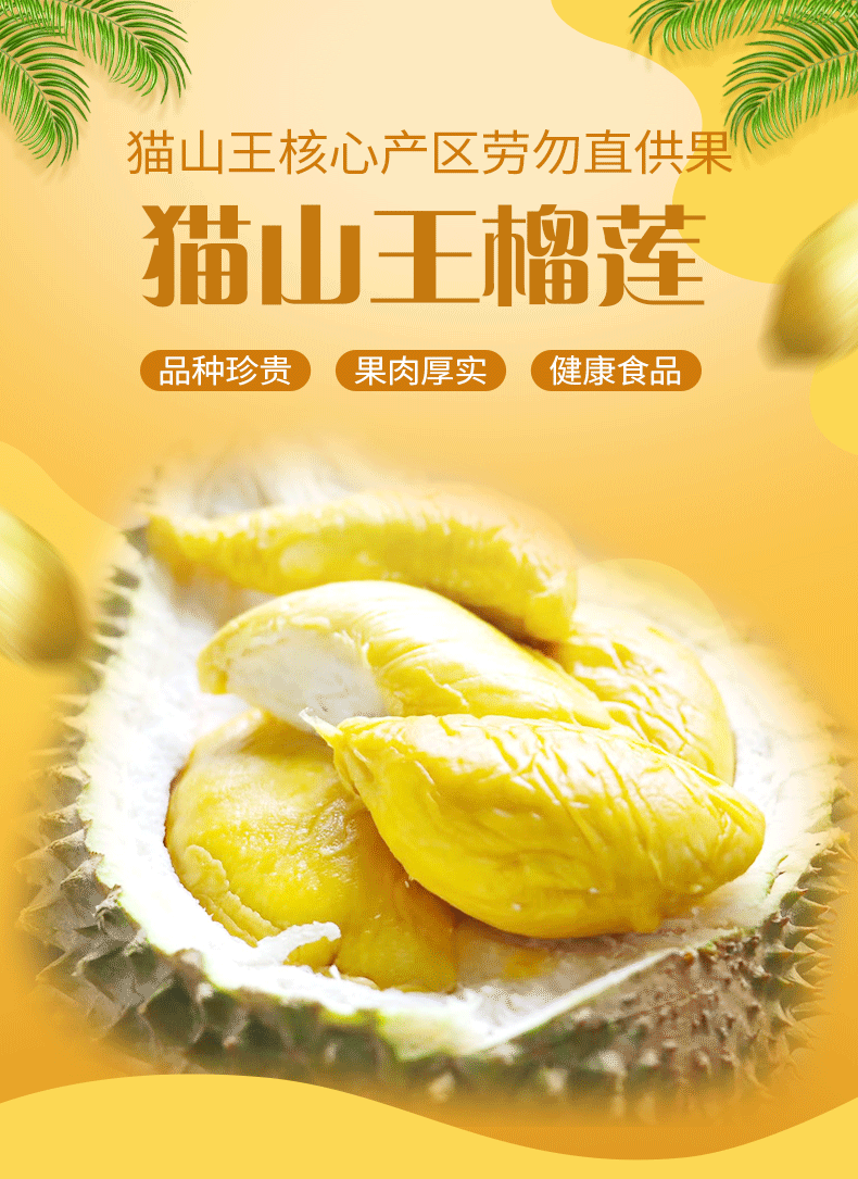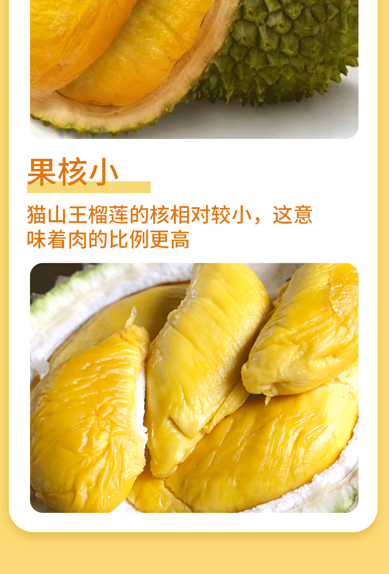 冷冻保存!【猫山恋】正宗马来西亚猫山王榴莲精品果3-3.5斤 包4房