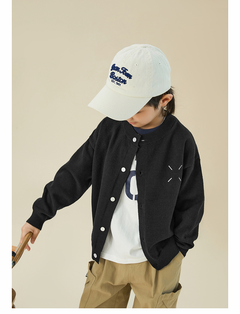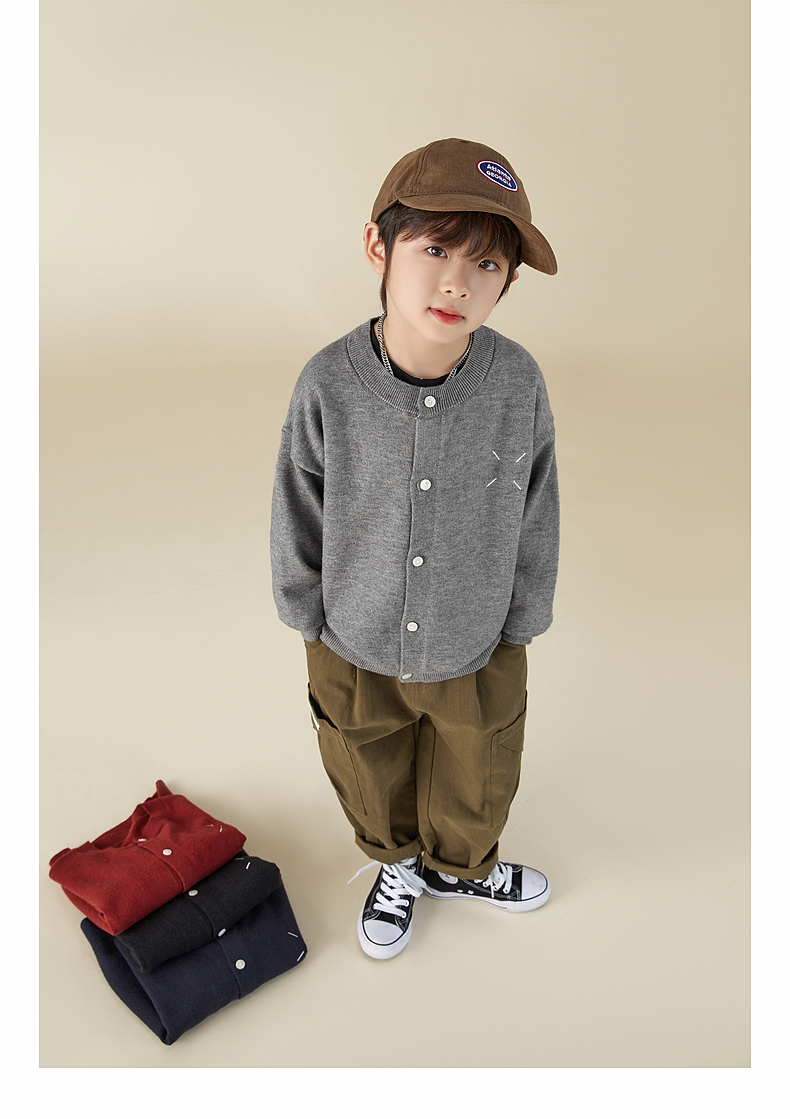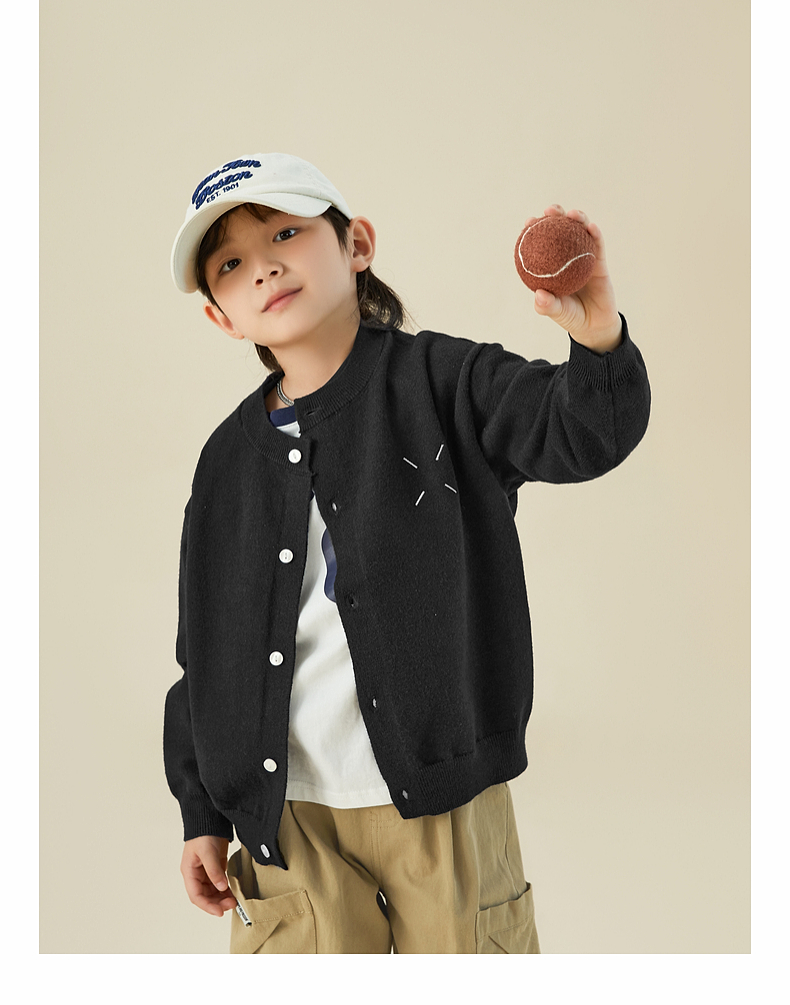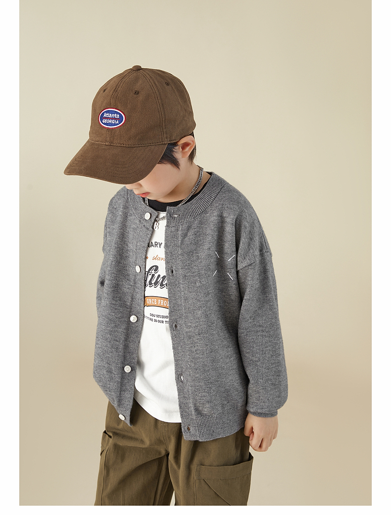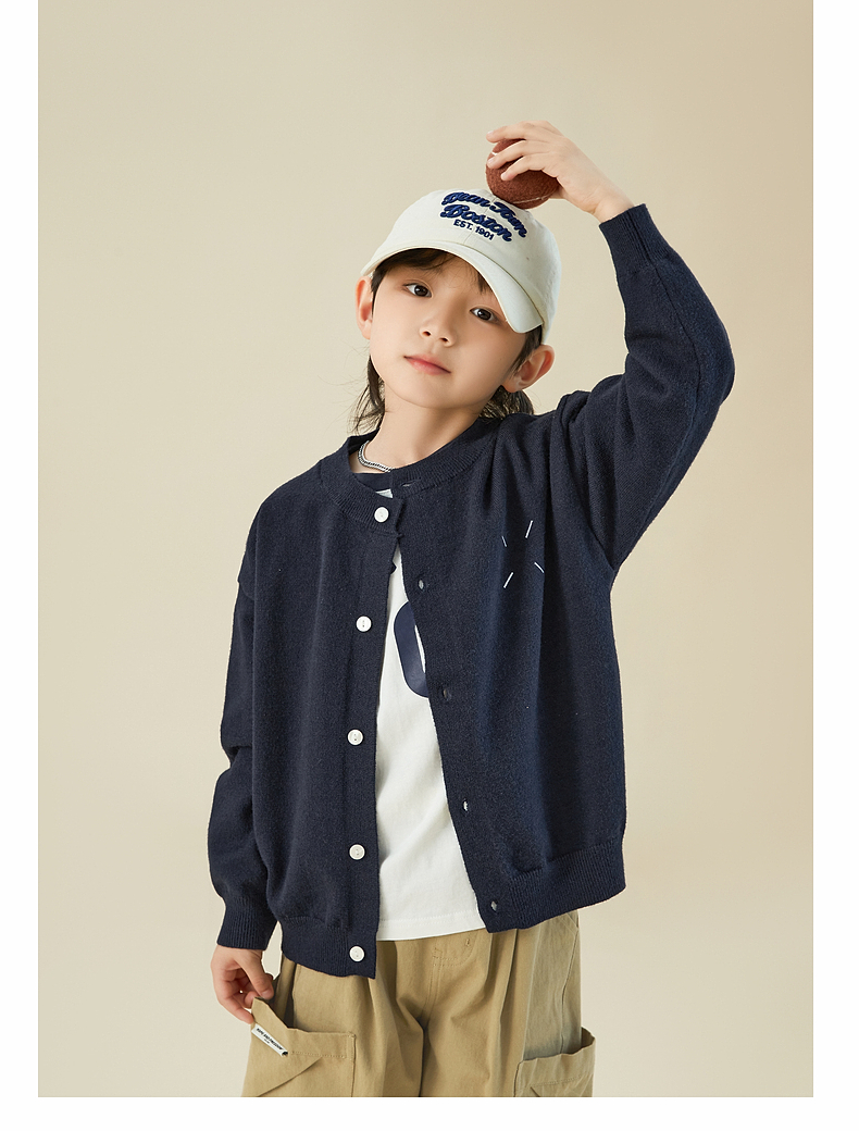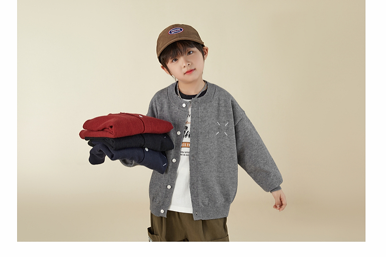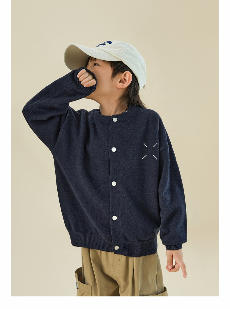 【宠粉专享团购价69.9】多多家男童开衫毛衣2024春秋新款刺绣儿童圆领针织衫外套男孩春装9145