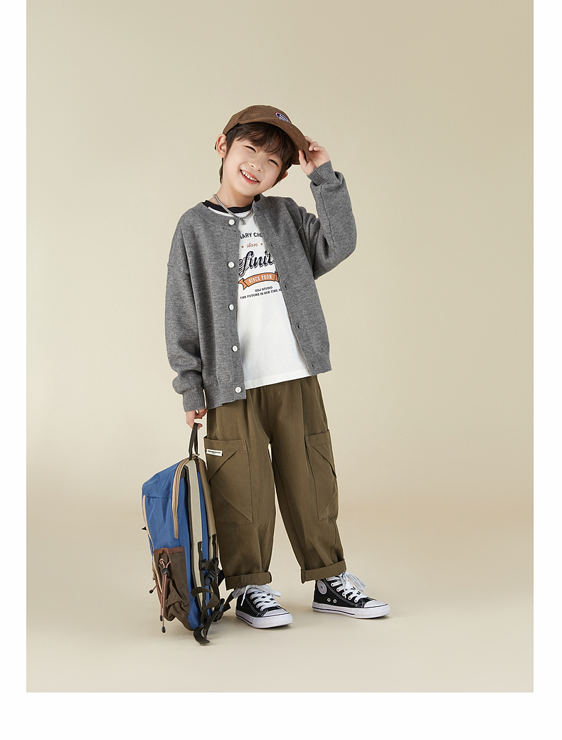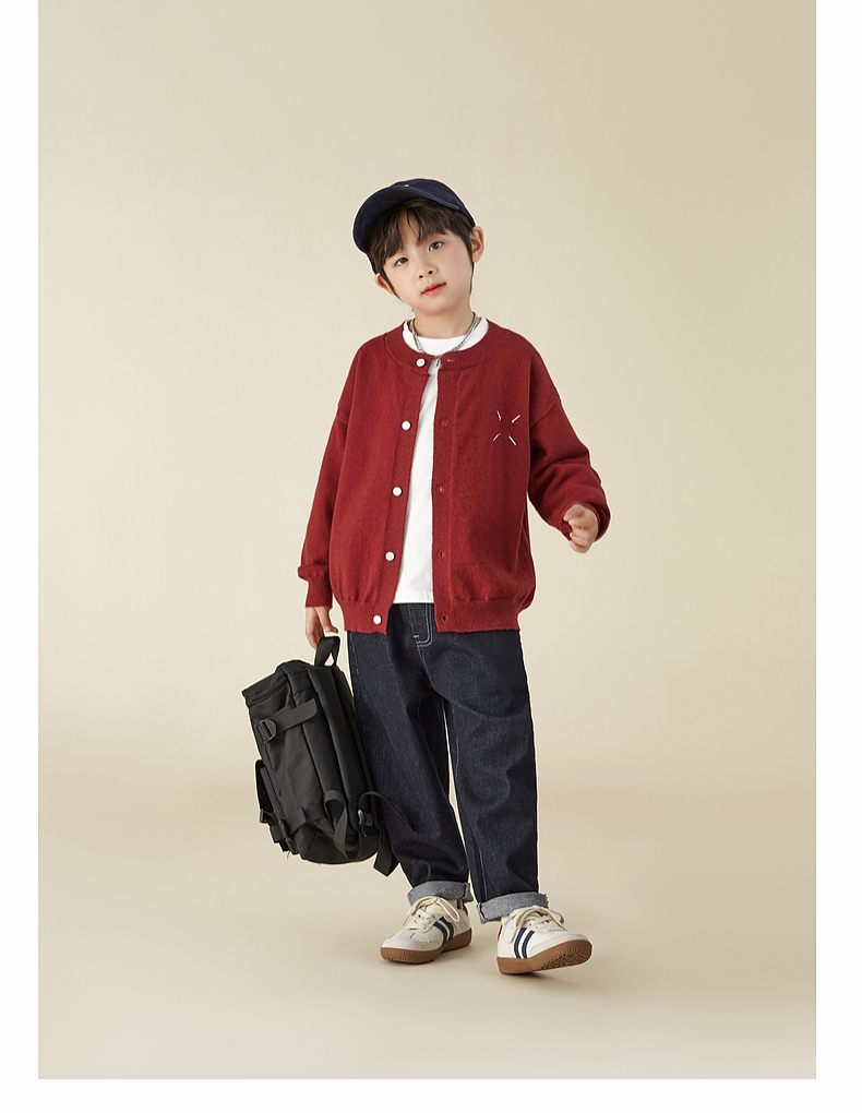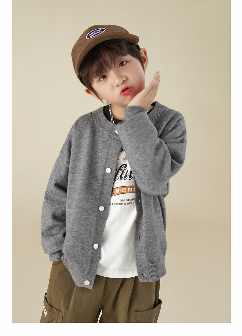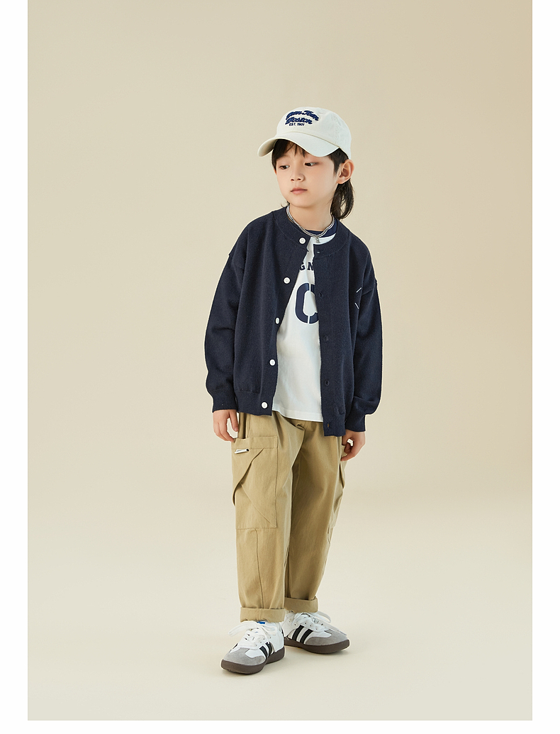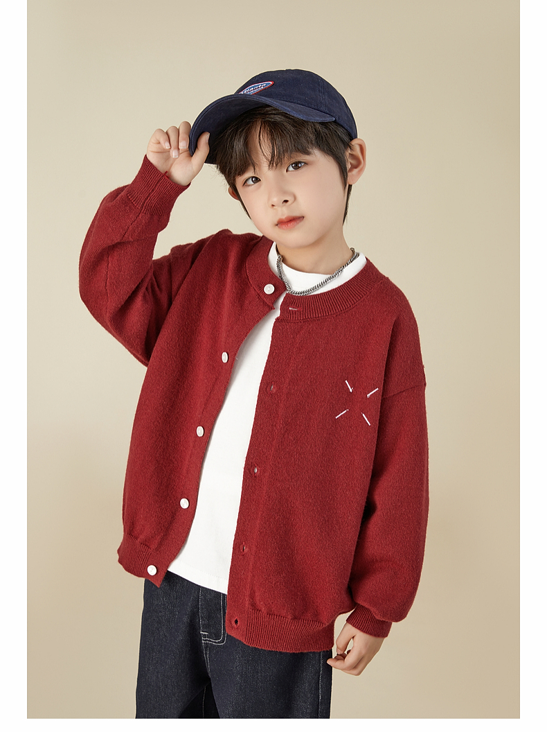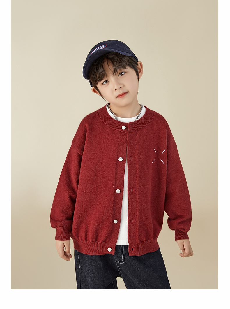 【宠粉专享团购价69.9】多多家男童开衫毛衣2024春秋新款刺绣儿童圆领针织衫外套男孩春装9145
