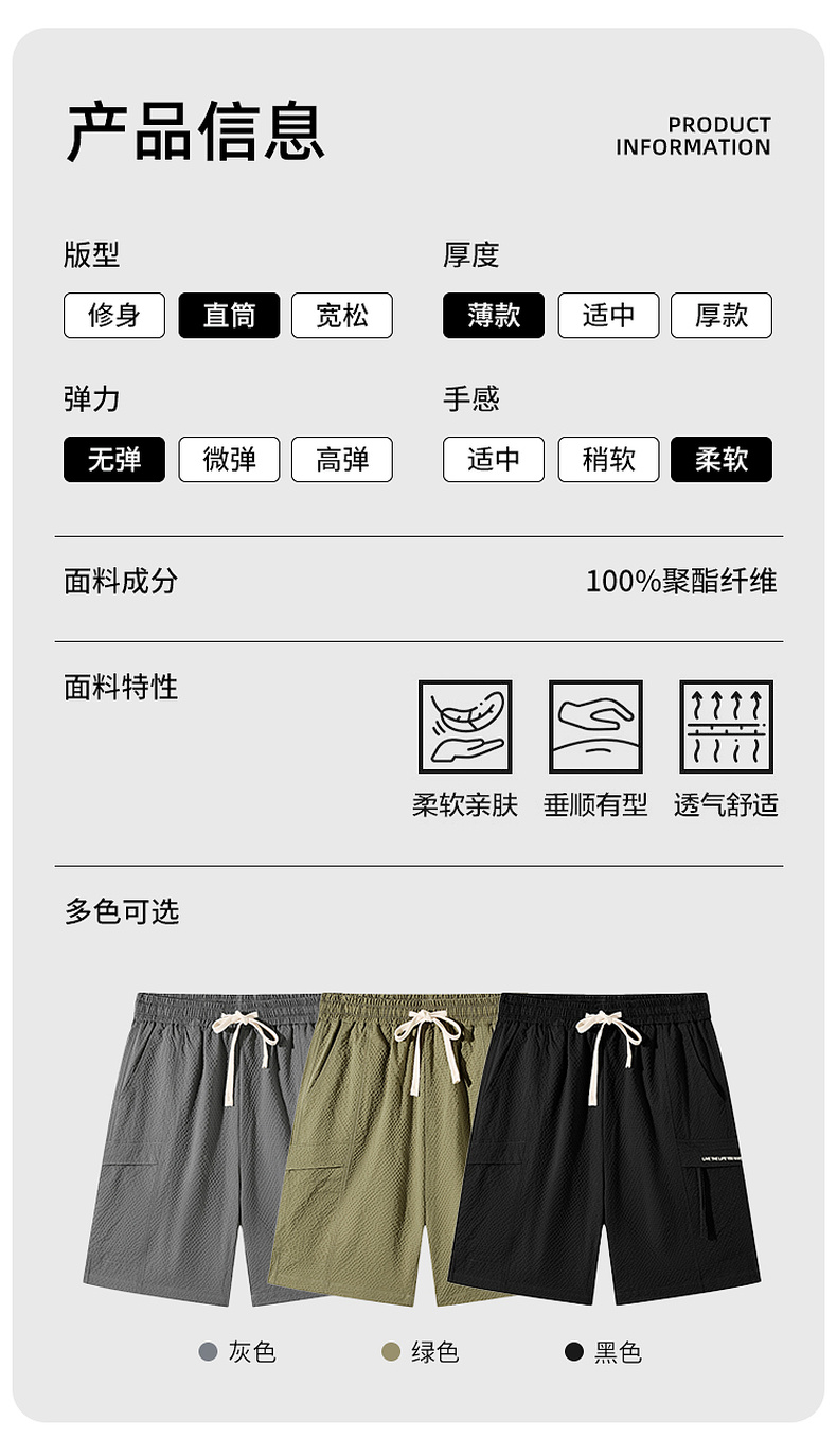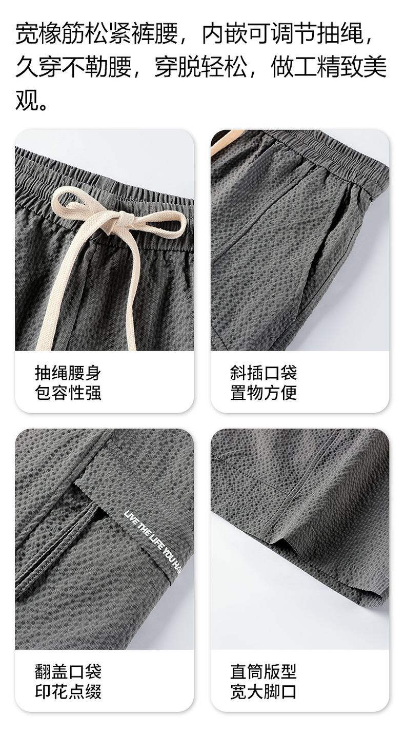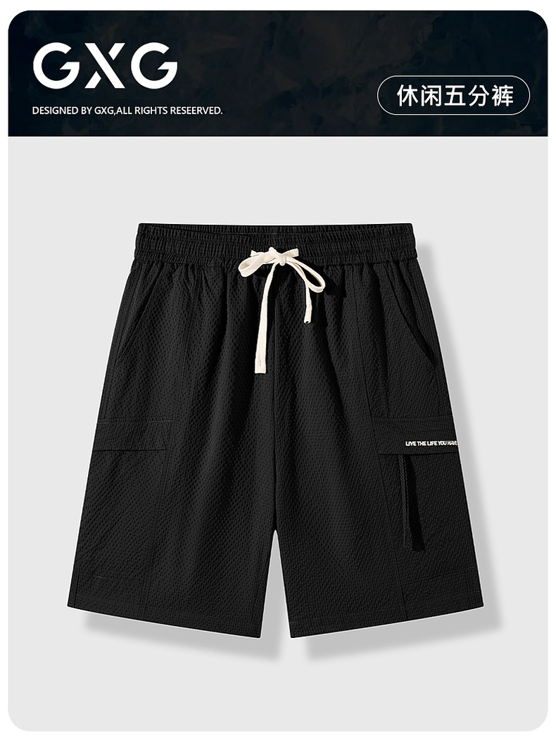 GXG男装25夏季日系工装时尚抽绳松紧腰轻薄休闲直筒男式五分短裤K&C