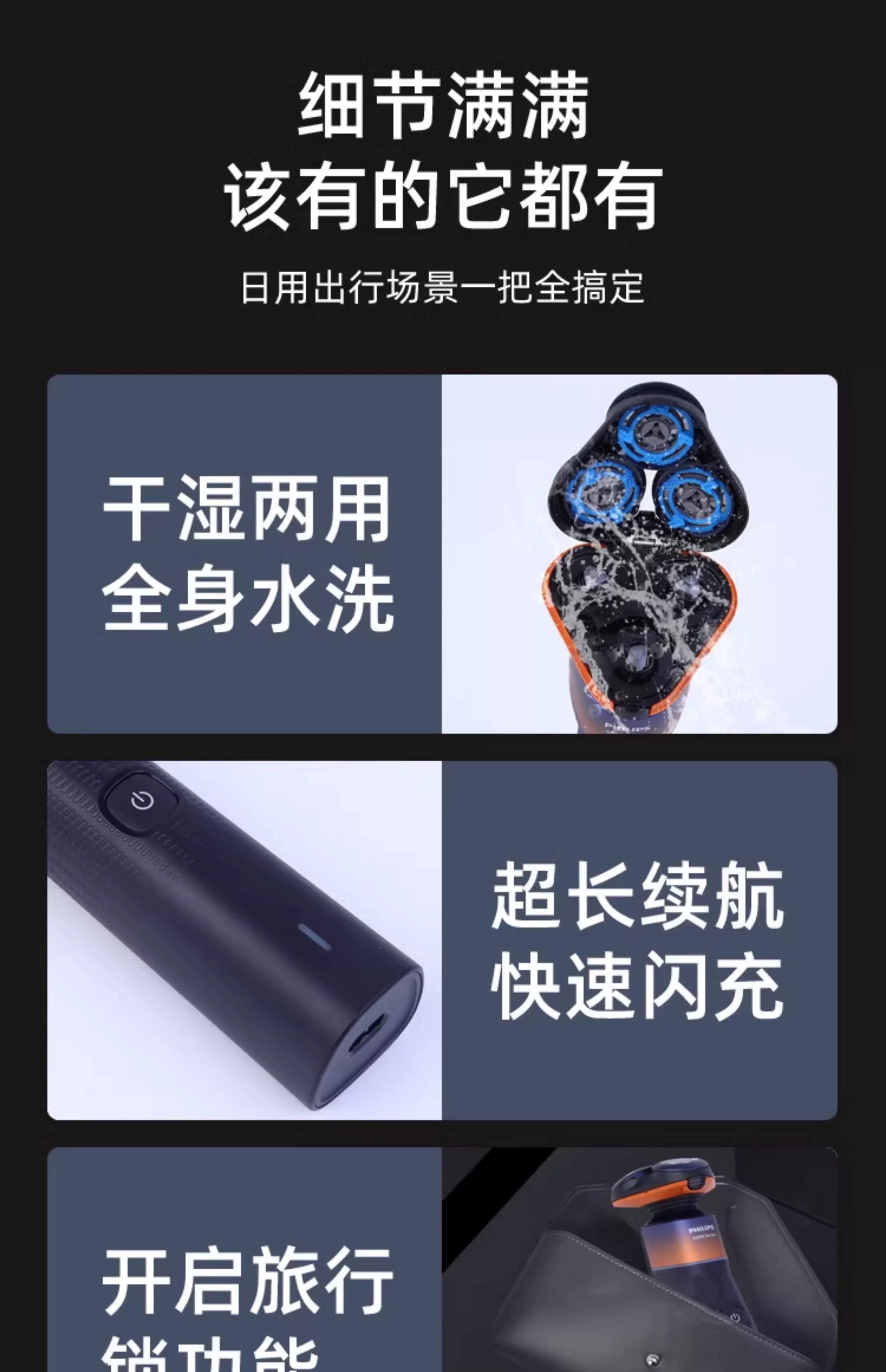 PHILIPS飞利浦告白气球电动剃须刀礼盒X5005/05CBP 全身水洗送修剪器 手提袋 男士礼物