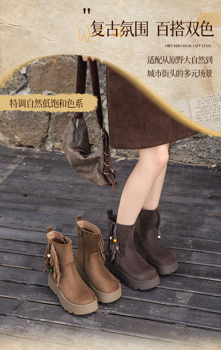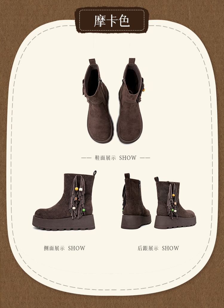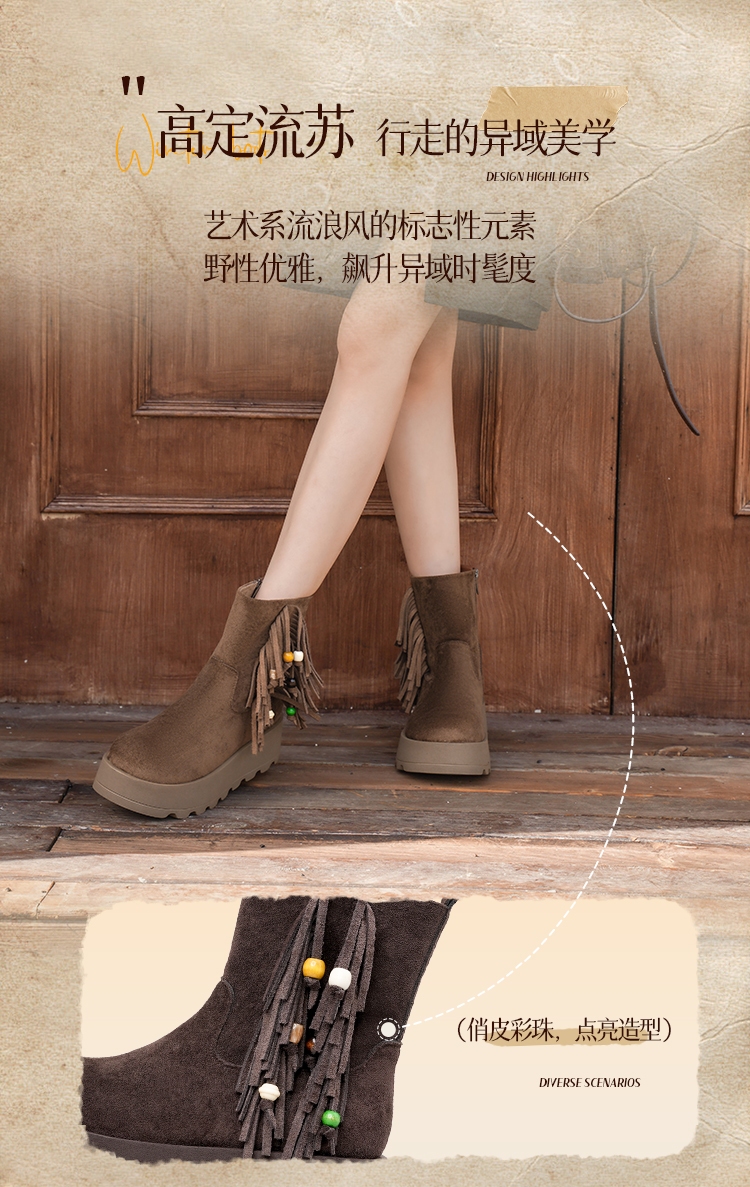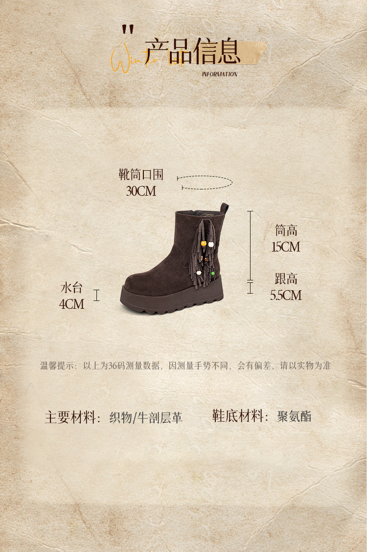 预售|Safiya/索菲娅流苏民族风坡跟厚底侧拉链百搭复古西部短靴2025SFD4116408