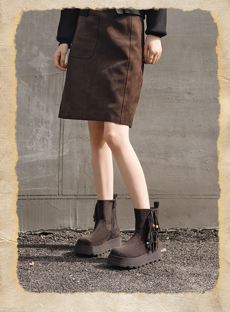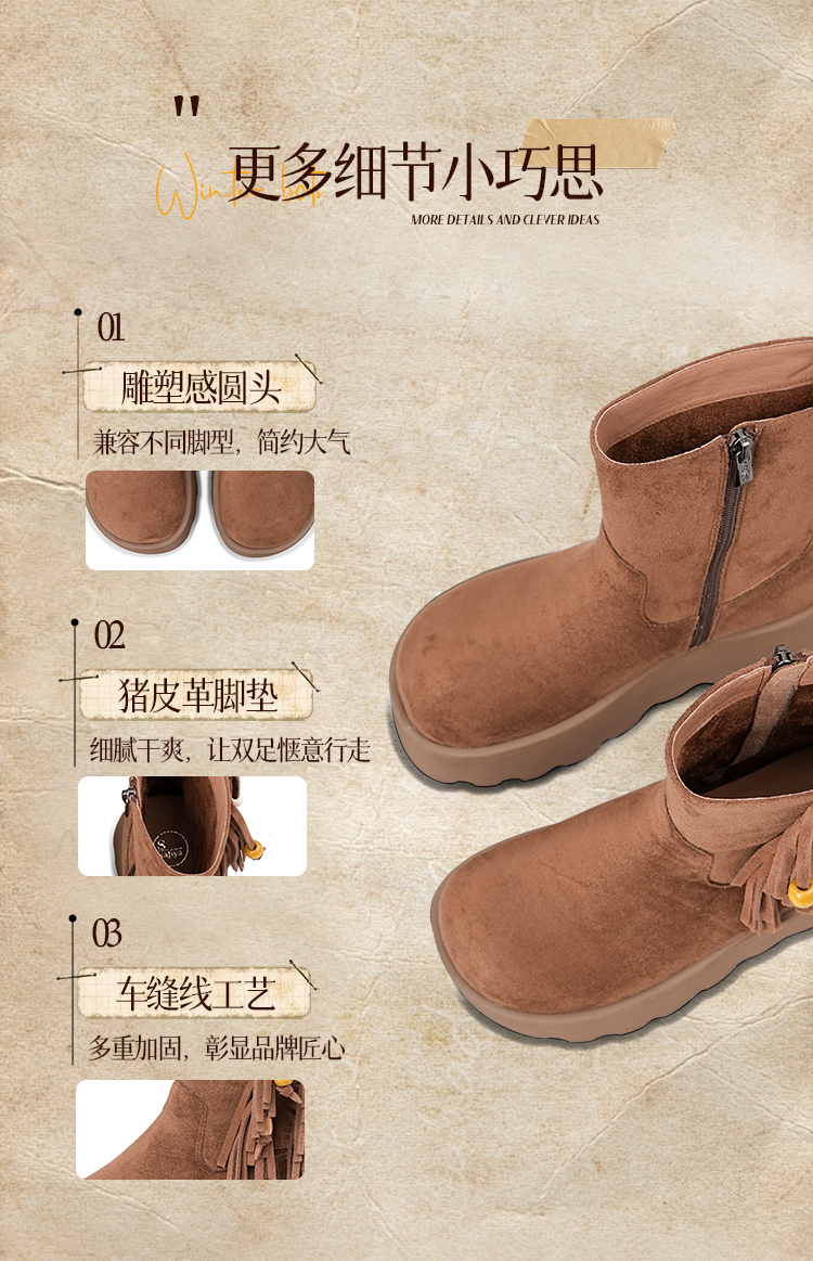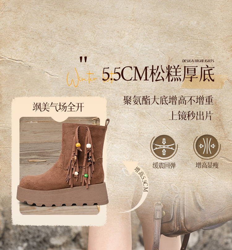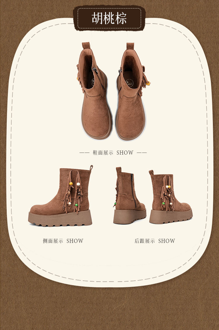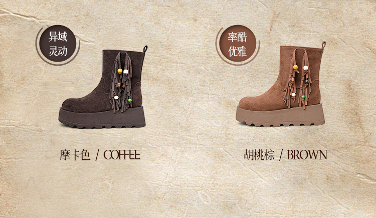 预售|Safiya/索菲娅流苏民族风坡跟厚底侧拉链百搭复古西部短靴2025SFD4116408