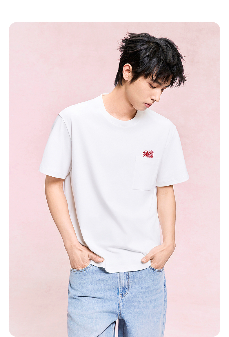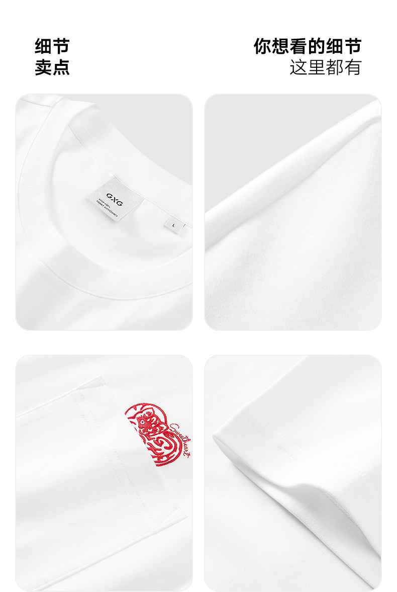 GXG男装 圆领T恤纯色口袋上衣短袖针织 2025年夏季热卖