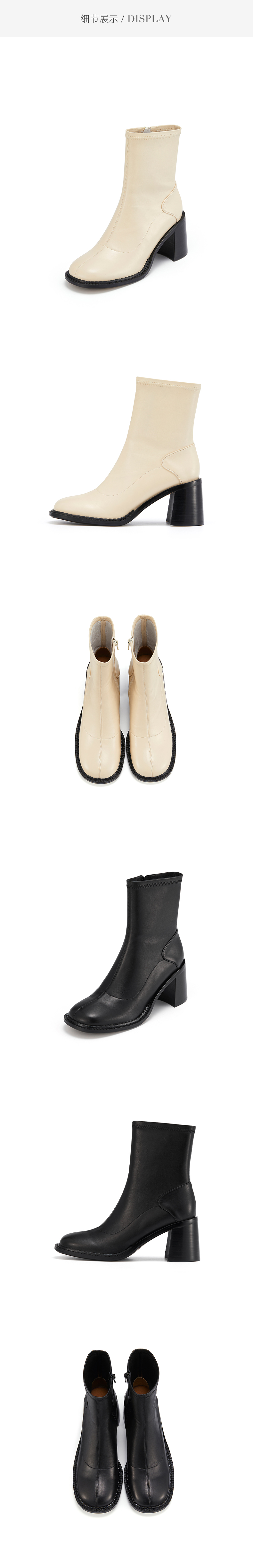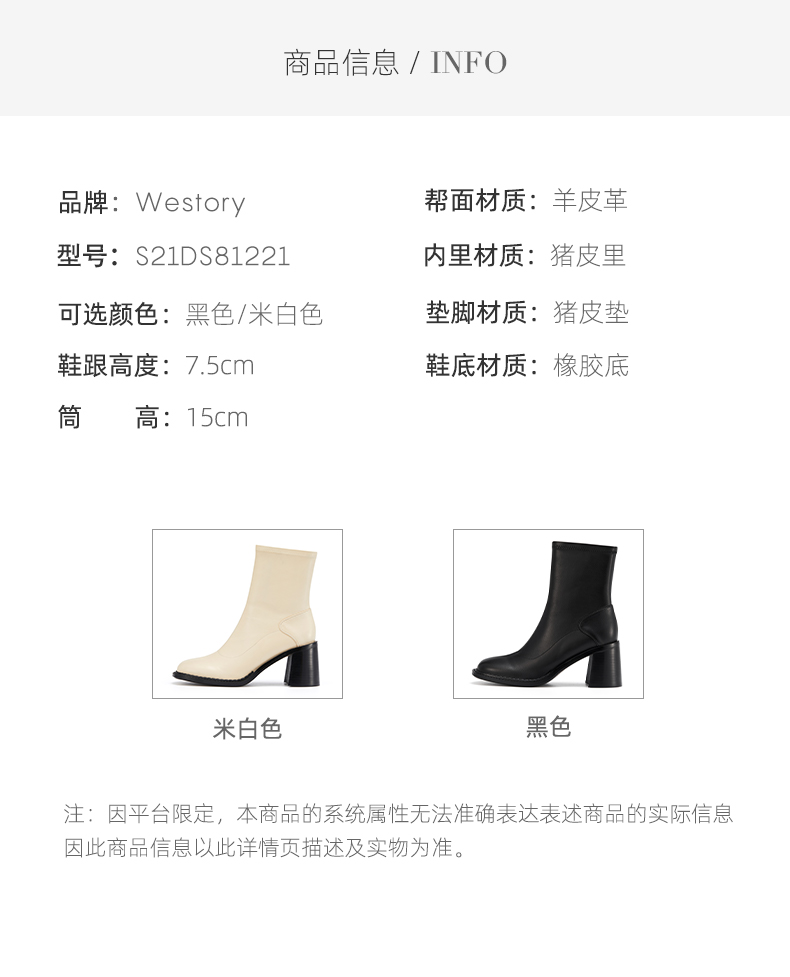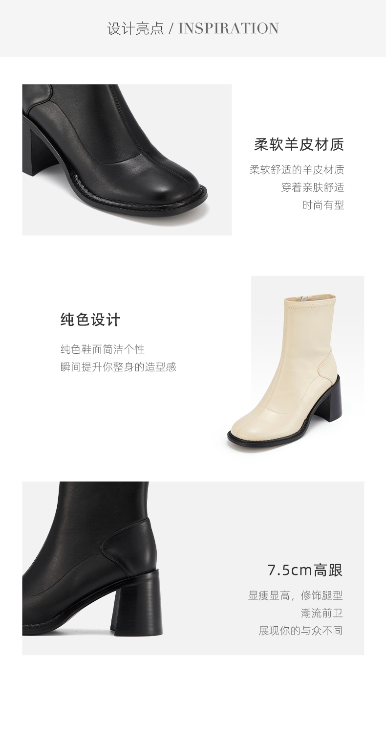 westory粗高跟时装短靴真皮拉链显瘦增高靴子22年秋冬新款女82281