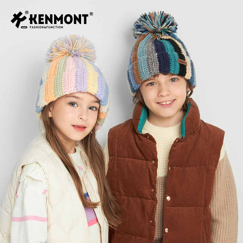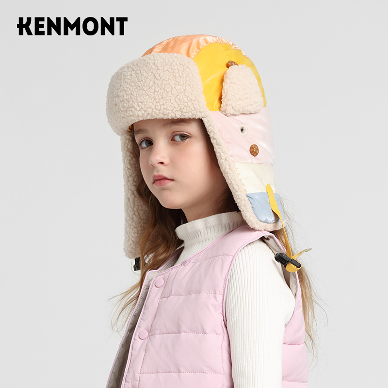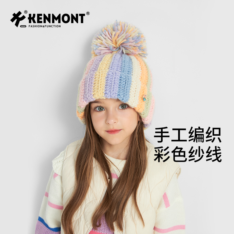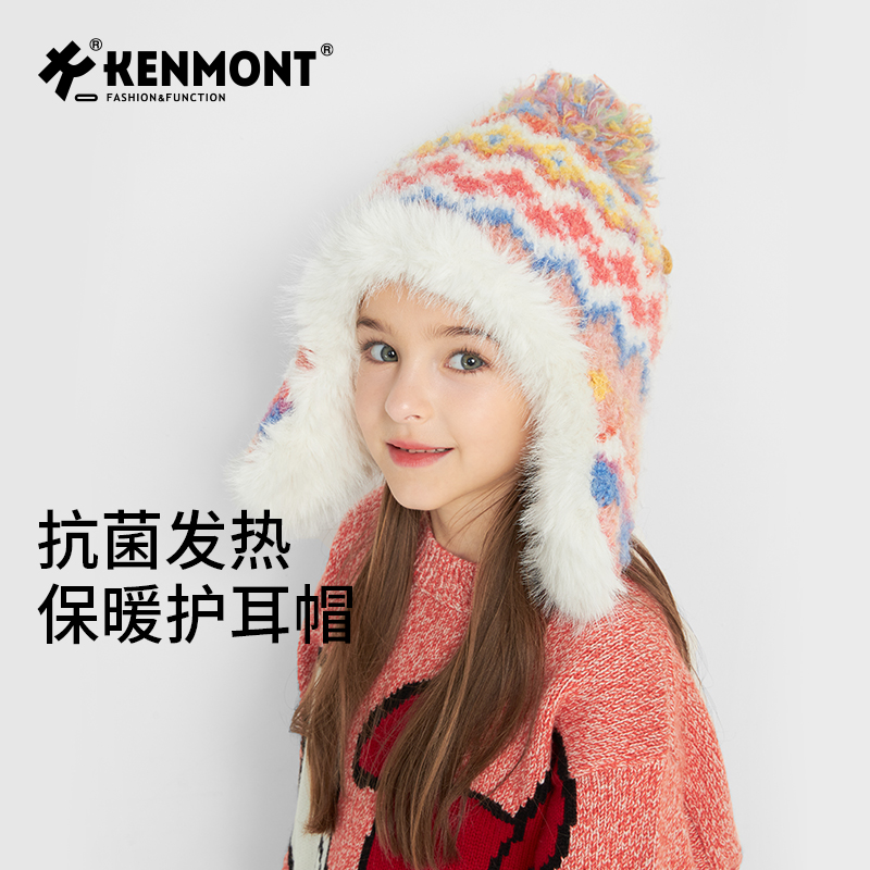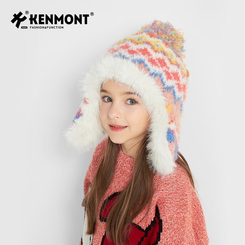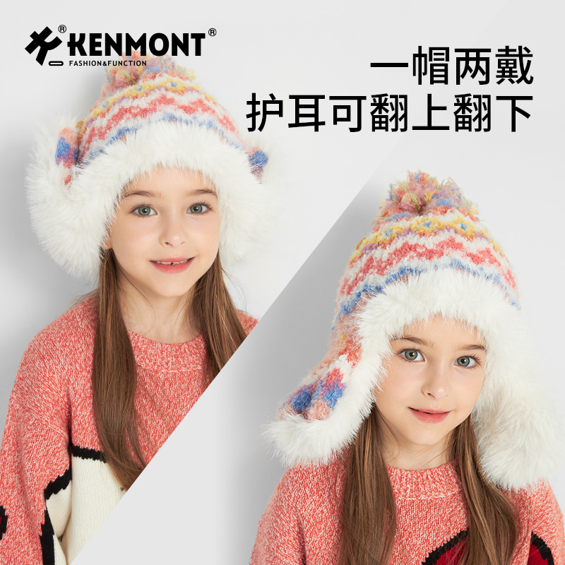 *【清仓特价】shukiku儿童拼色帽子女童护耳毛绒针织保暖毛线帽新款秋冬季男孩