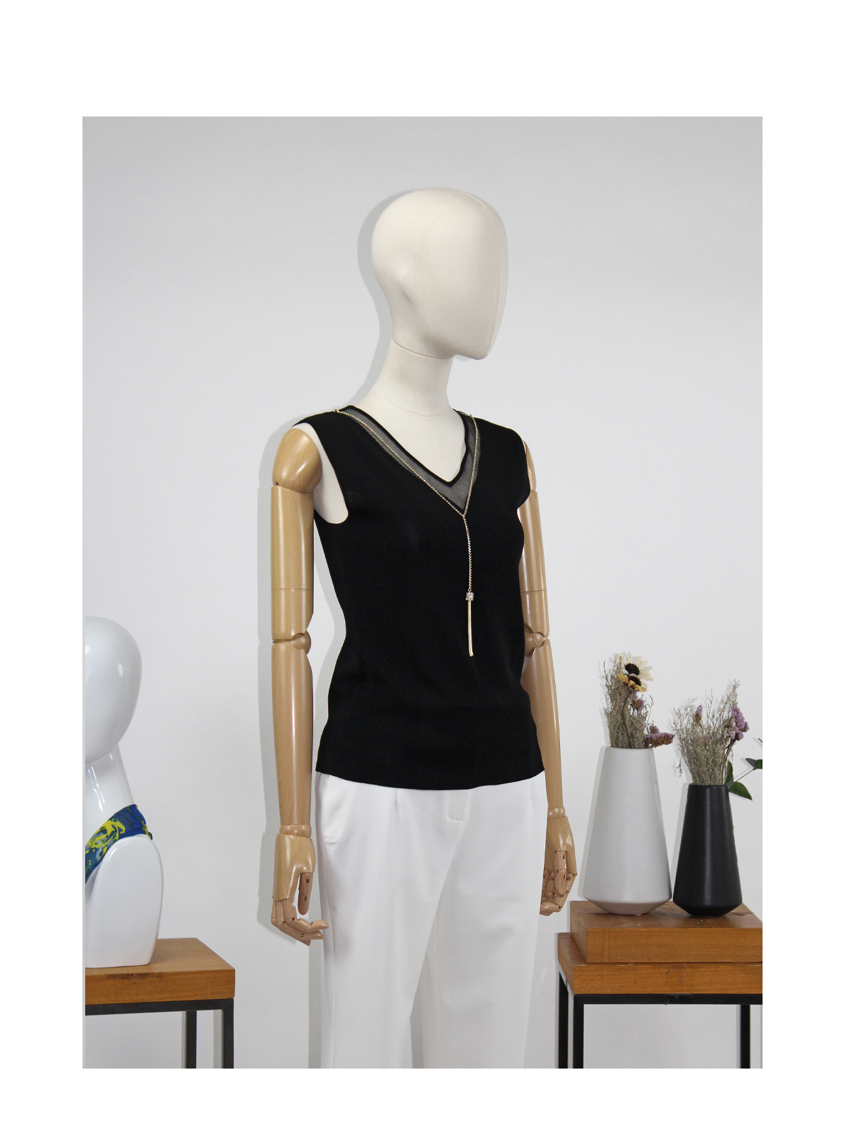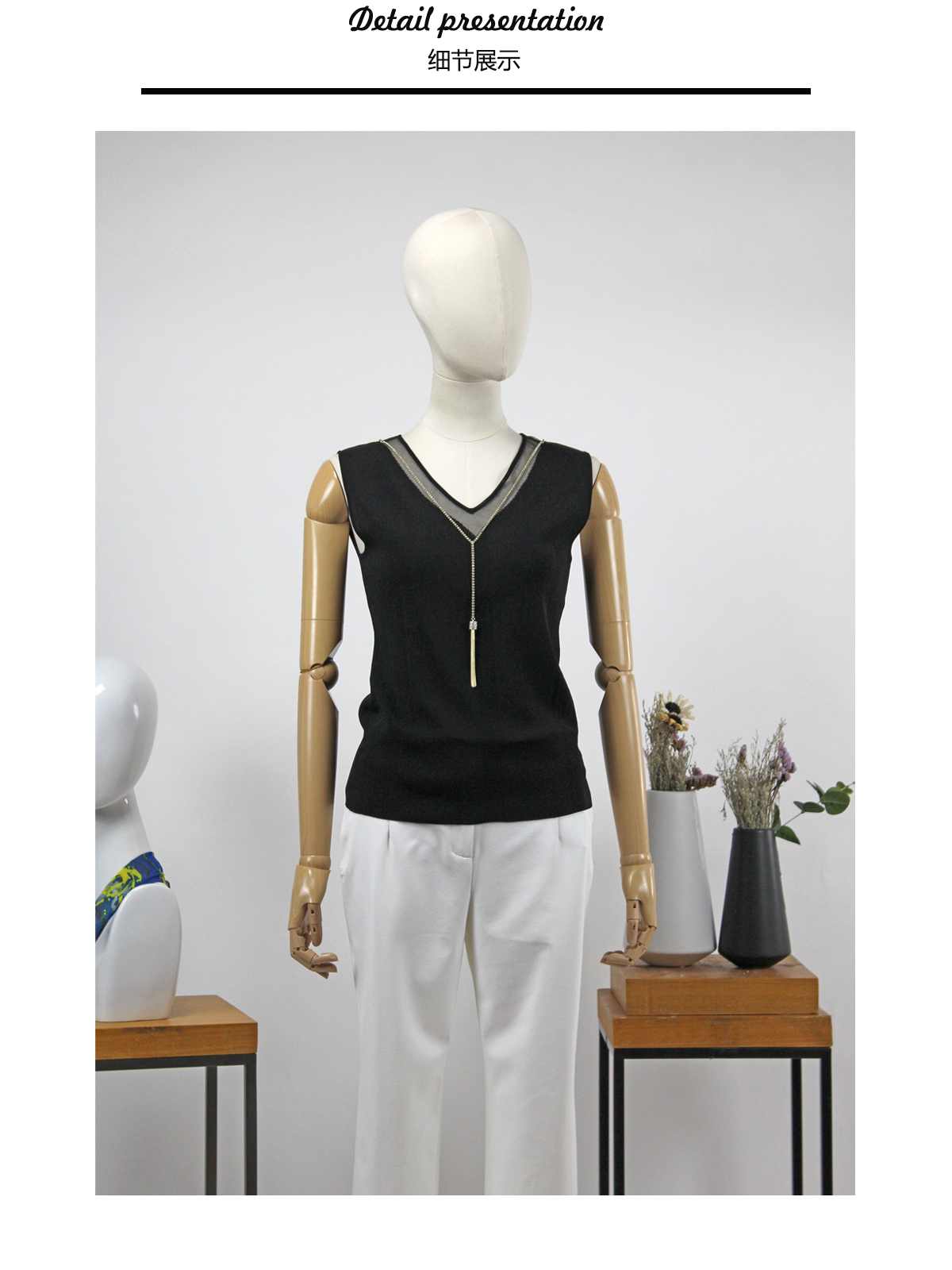 FOCALS福柯斯女装夏季新款V领套头针织衫纯色打底背心FRRBM178