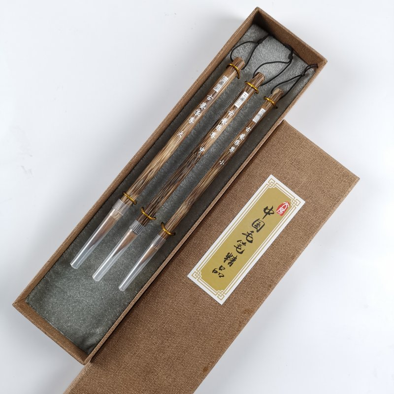 【红黑檀杆珍品纯狼毫】贡品纯狼毫三支套装大中小三支礼盒套装