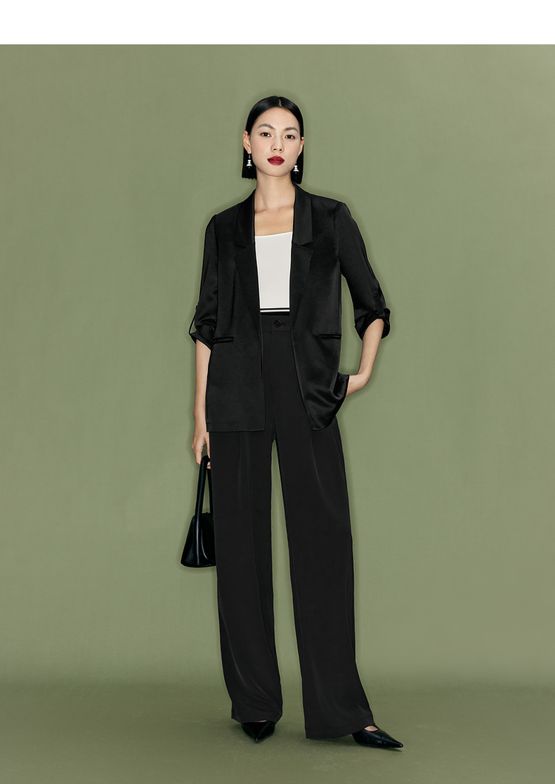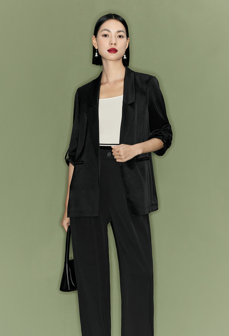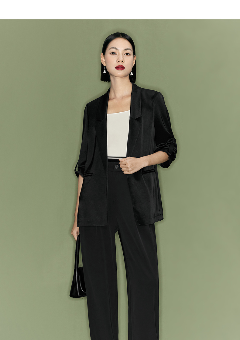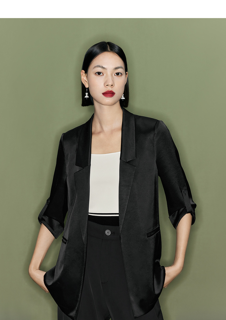 【商场同款】伊芙丽夏高级感通勤黑色西装1F4110751G