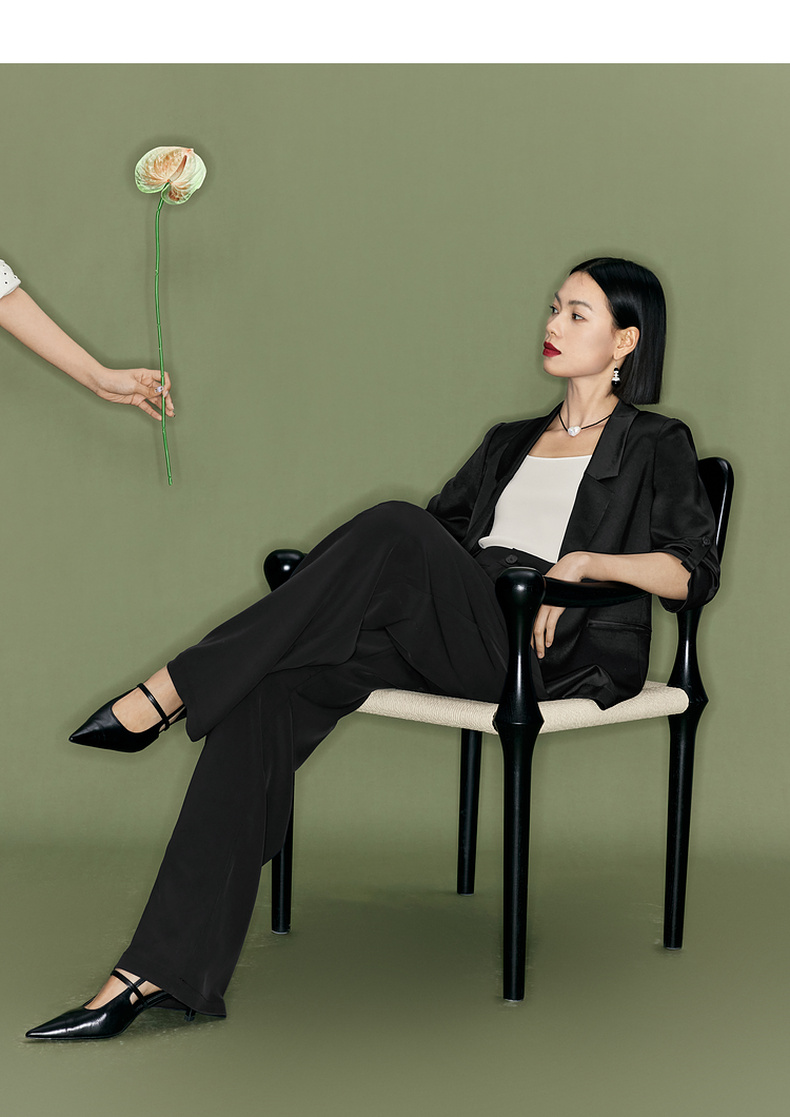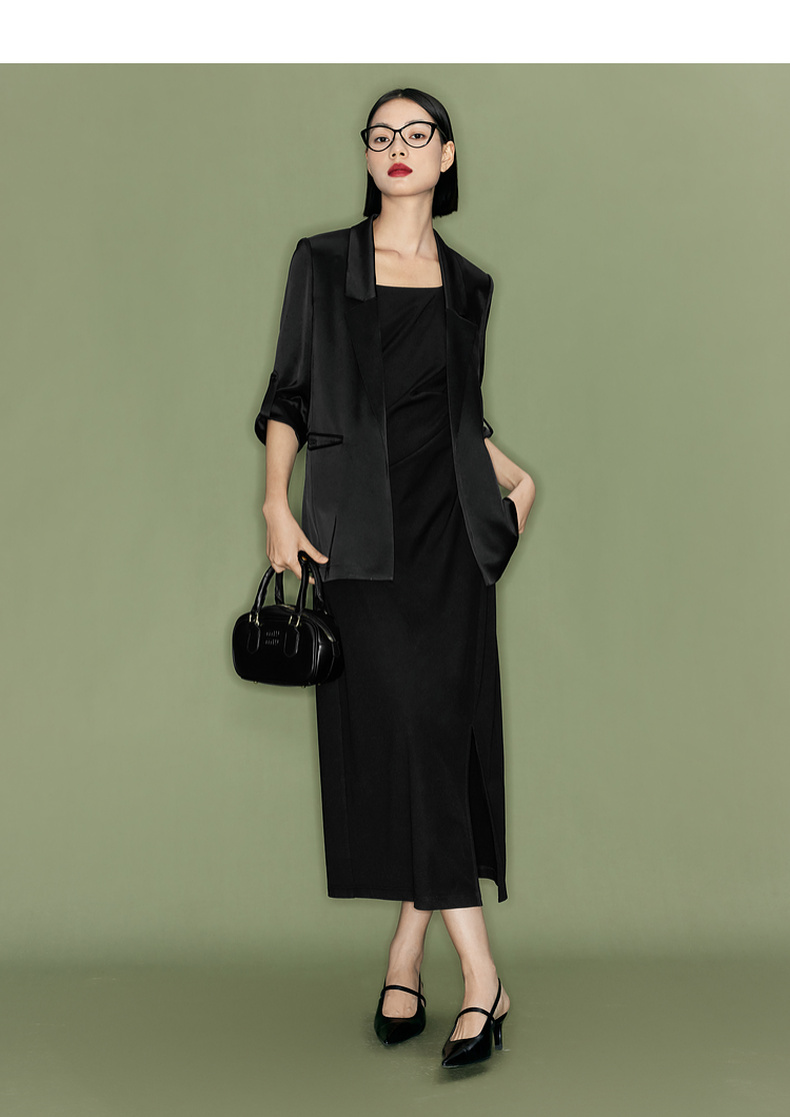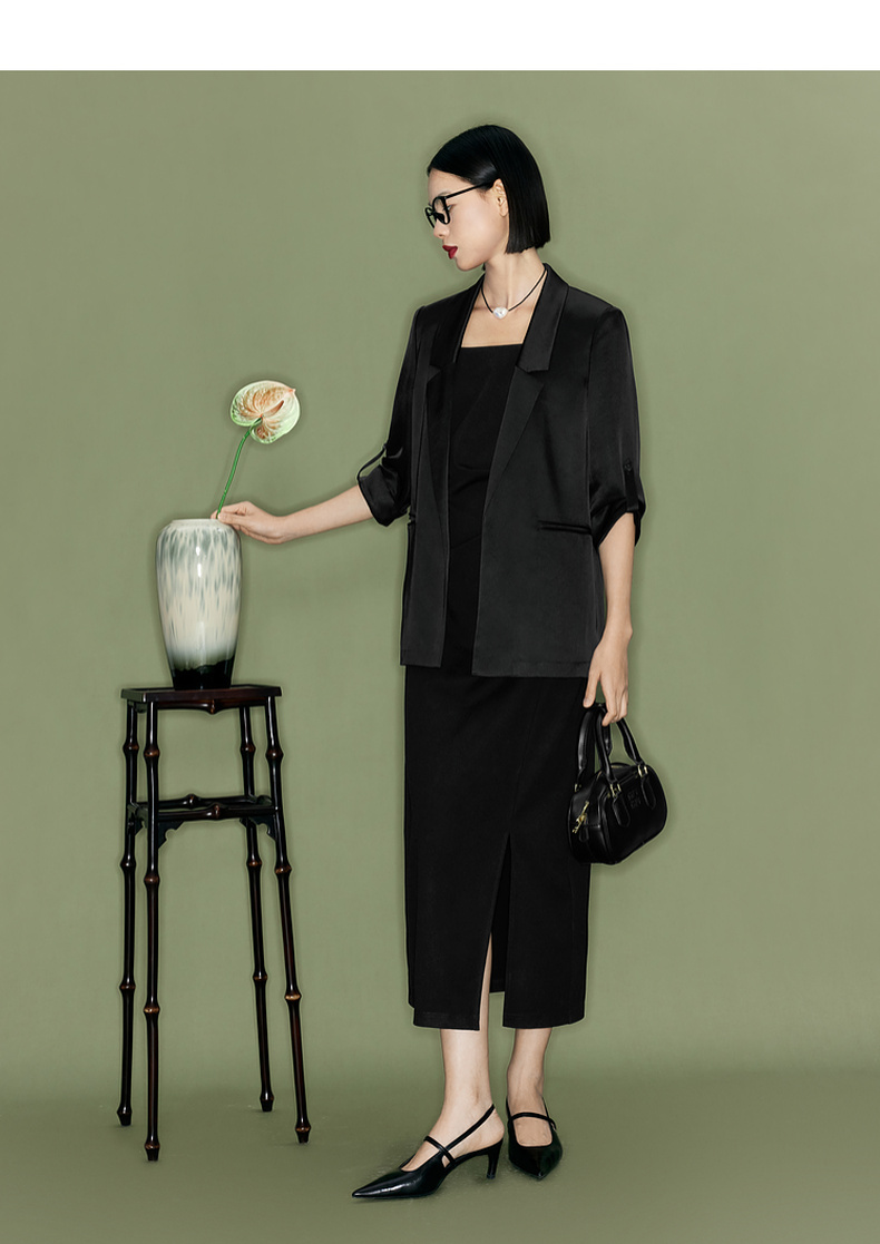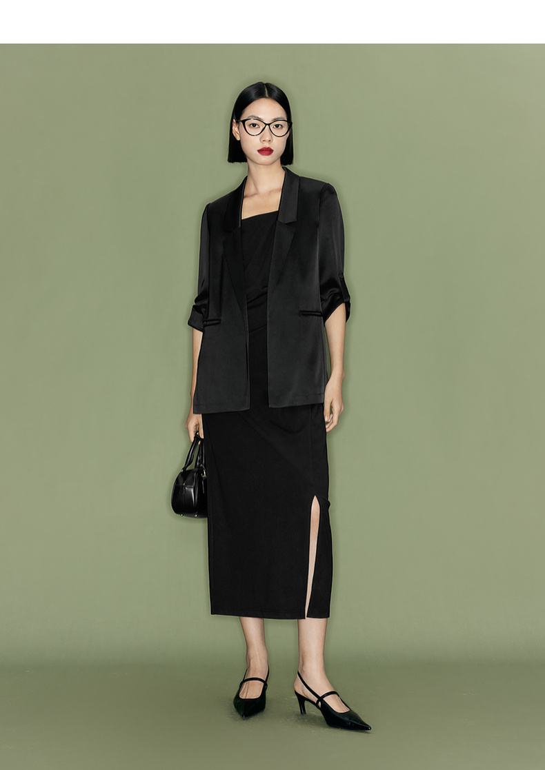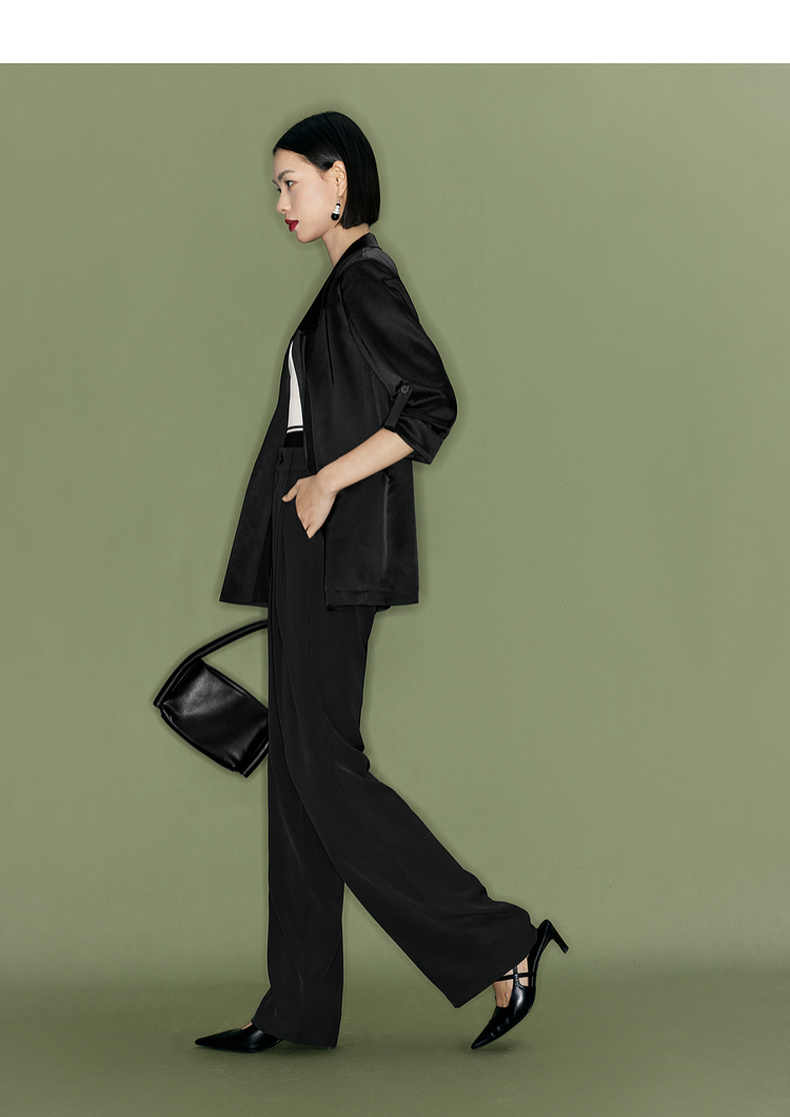 【商场同款】伊芙丽夏高级感通勤黑色西装1F4110751G