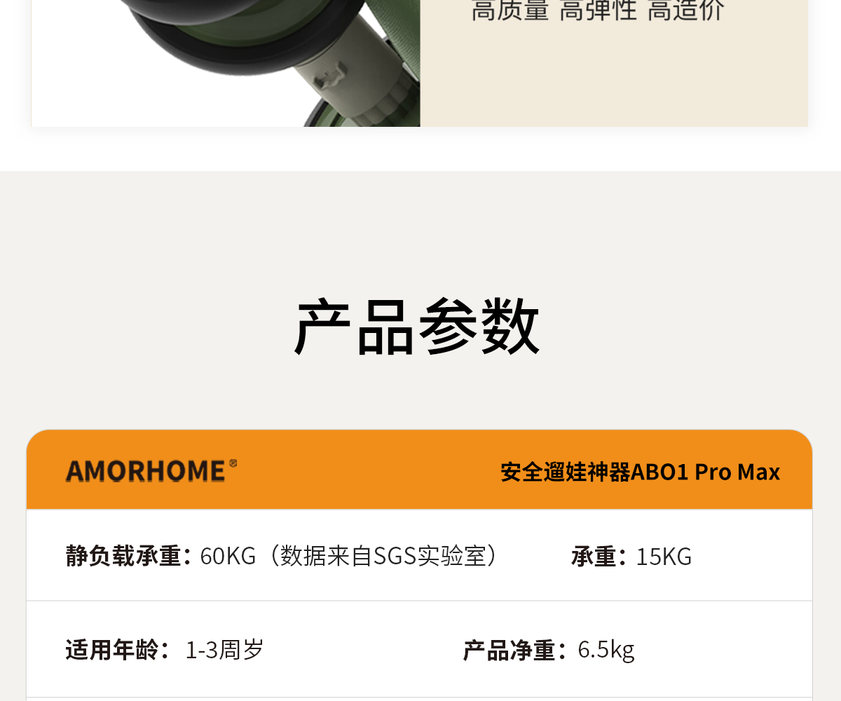AMORHOME遛娃神器am遛娃车轻便推车儿童溜娃神器高景观口袋婴儿车