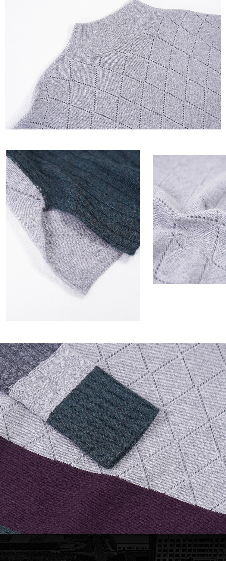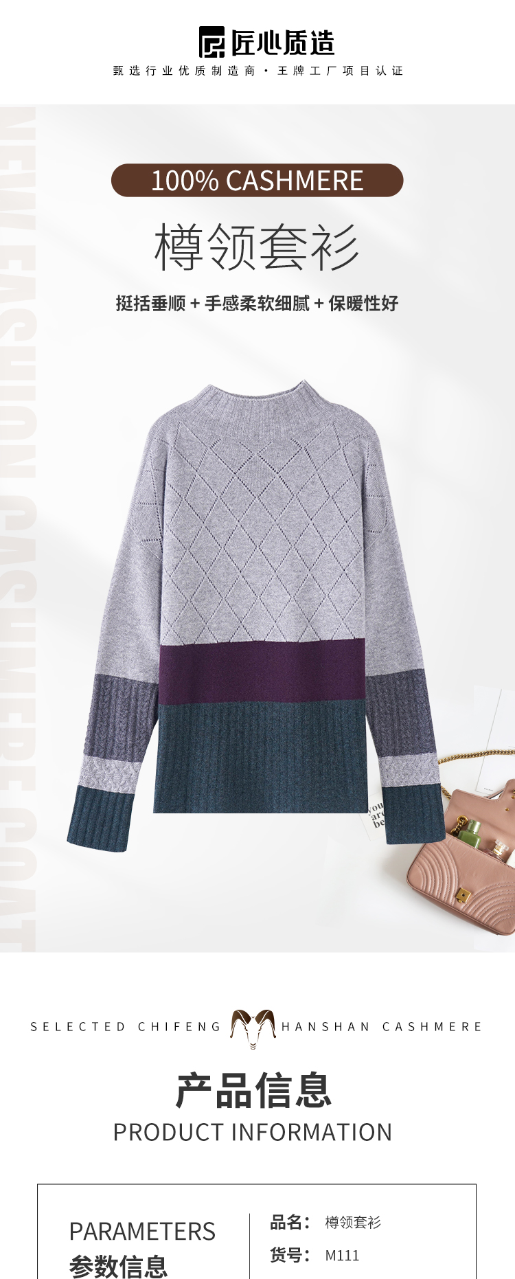 DONGLI&张继成联名款 中性风春秋针织半高领羊绒衫拼色宽松长袖 M111