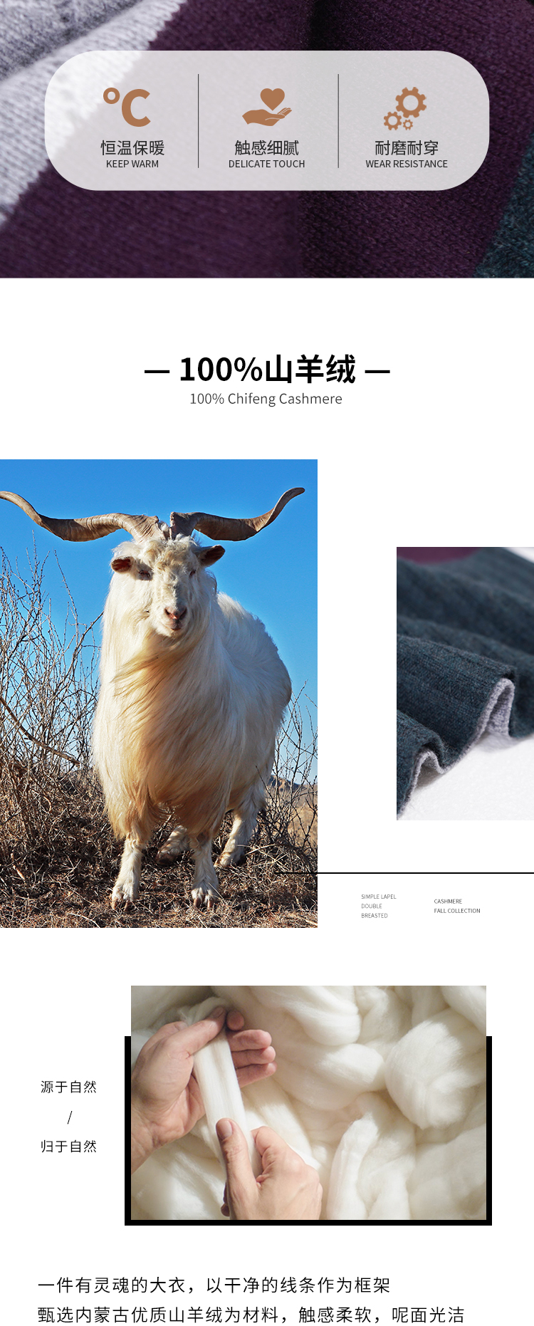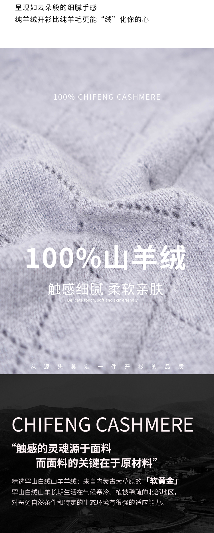东黎羊绒是赤峰东荣集团自主品牌,自有牧场/羊绒制品全产业链优势,实现了羊绒从“牧场”到“商场”的华丽转变。