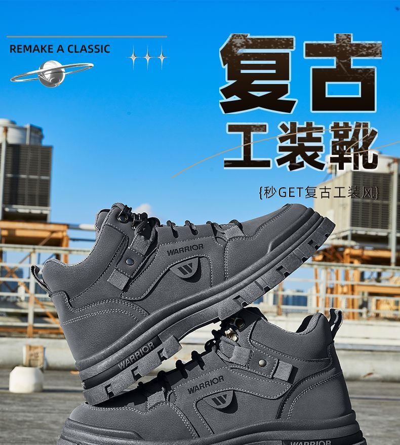 回力工装鞋男鞋秋冬新款复古时尚马丁靴男士运动户外登山鞋子男款