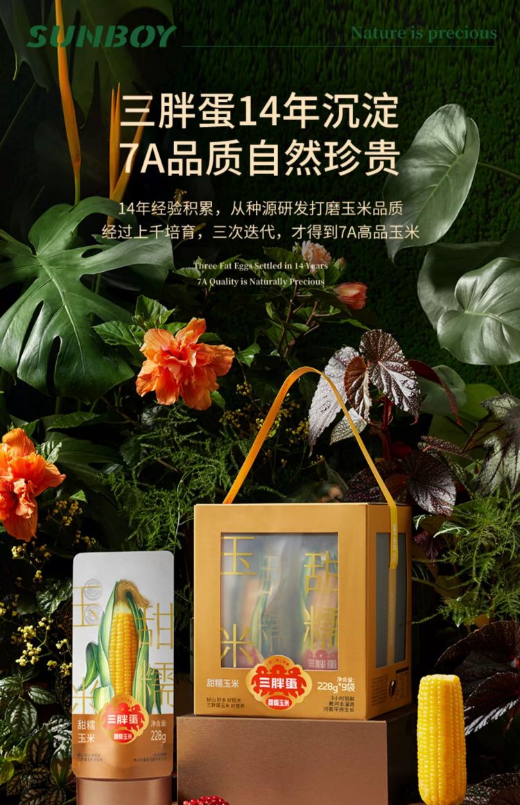自营(山蒙海时)-三胖蛋甜糯玉米真空锁鲜礼盒装(228g*9)*2提