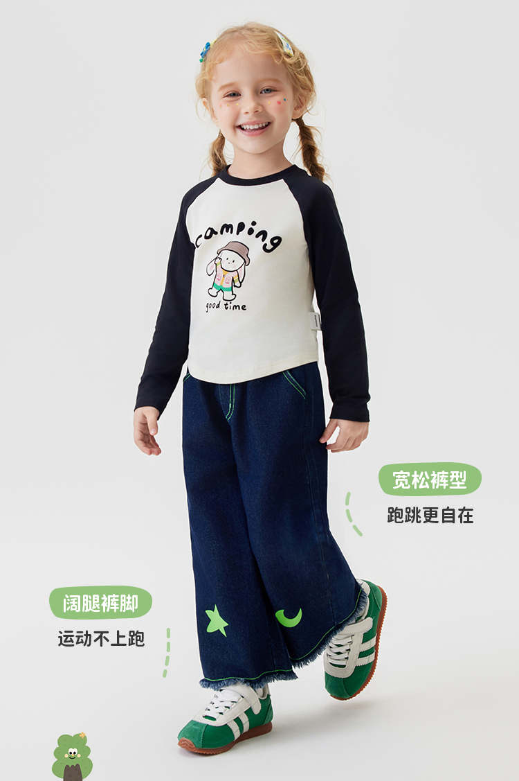 【110-140】【MQDmini】女童春秋阔腿牛仔裤