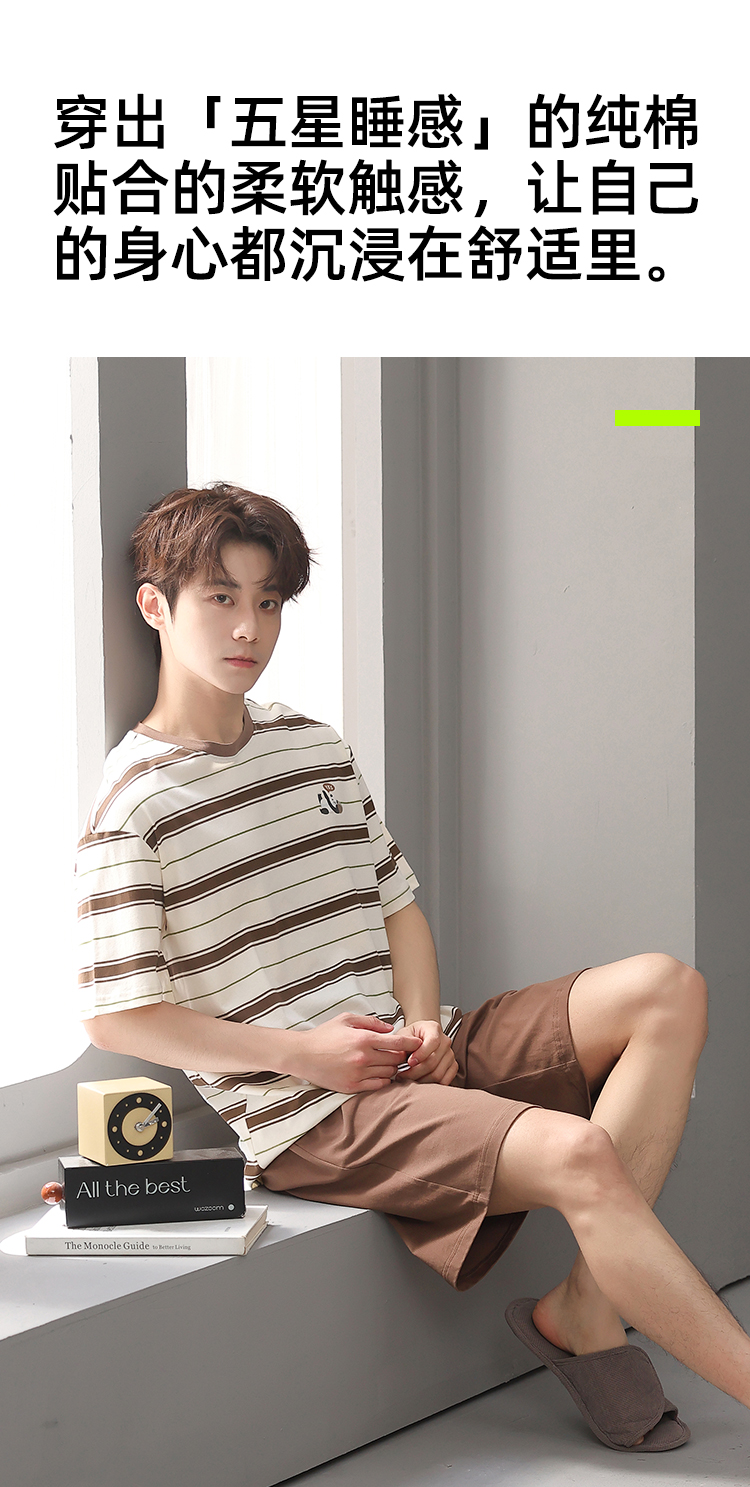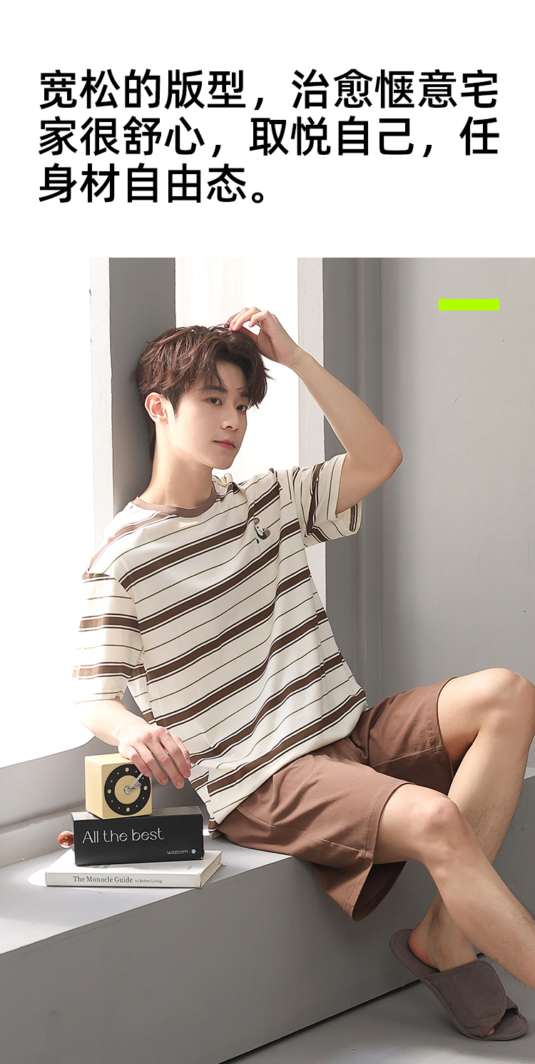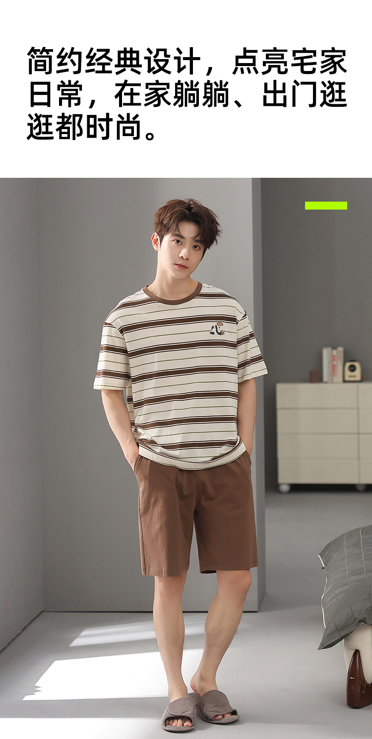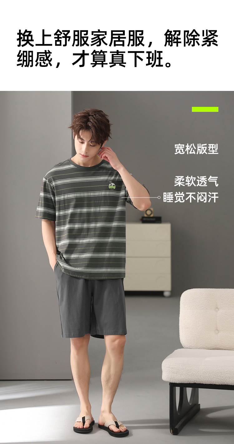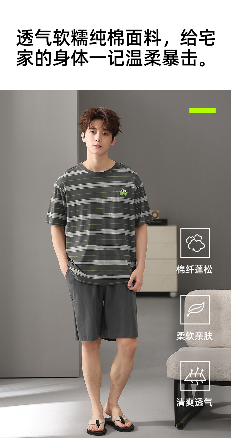【L-3XL】【有棵树】男士短袖短裤纯棉家居服套装