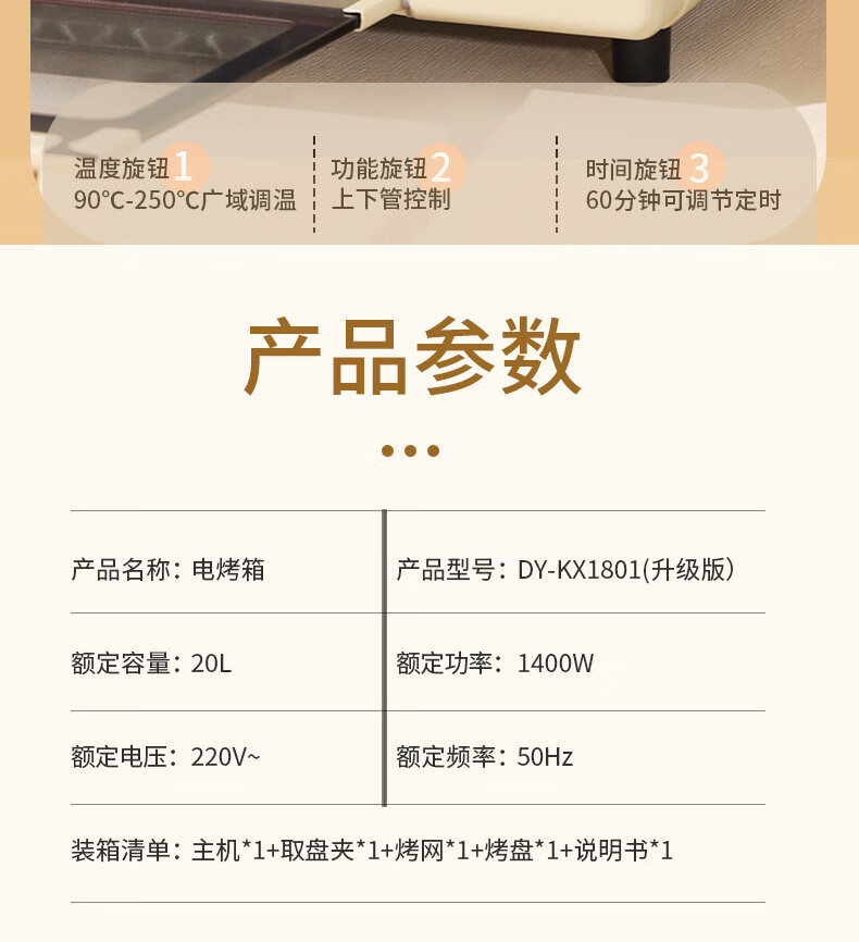 大宇电烤箱家用多功能20L电烤箱_DY-KX1801