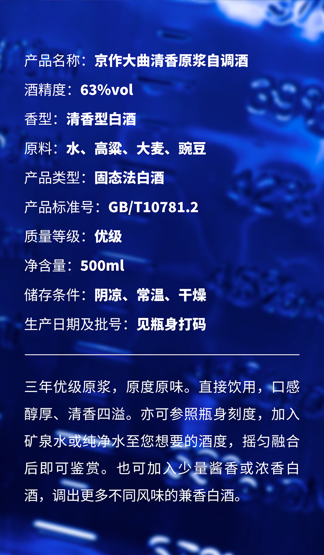 【酒厂直营】京作大曲清香原浆自由调 63%vol.纯粮原浆酒