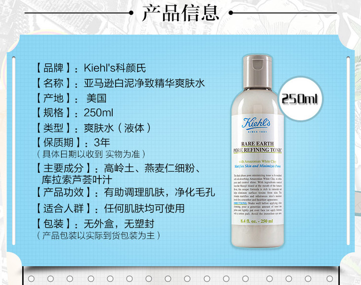 【香港直邮 】kiehl's/科颜氏 亚马逊白泥爽肤水250ml