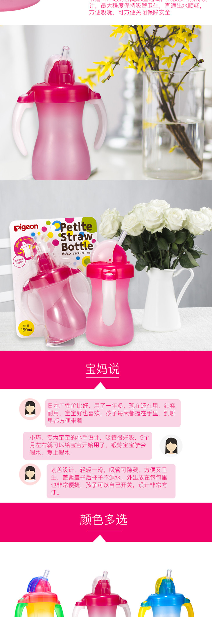 【一般贸易】日本贝亲Pigeon 贝亲手柄训练杯 草莓红色 150ml