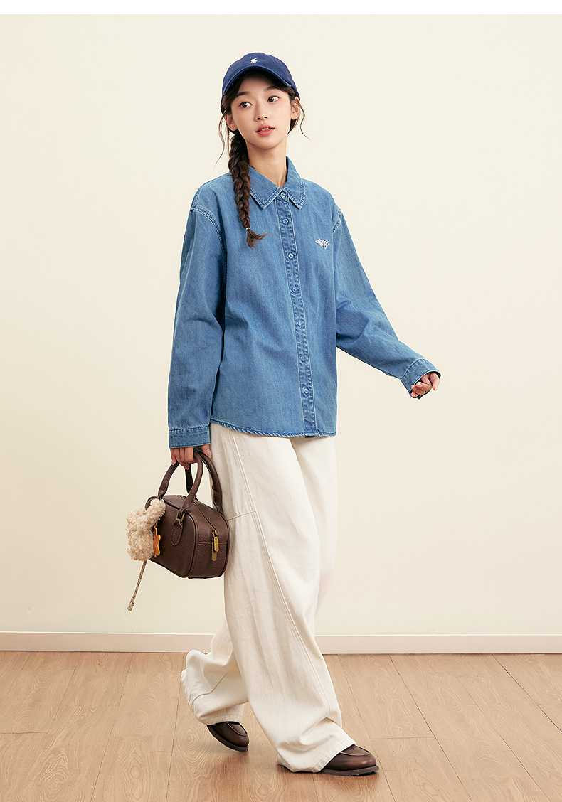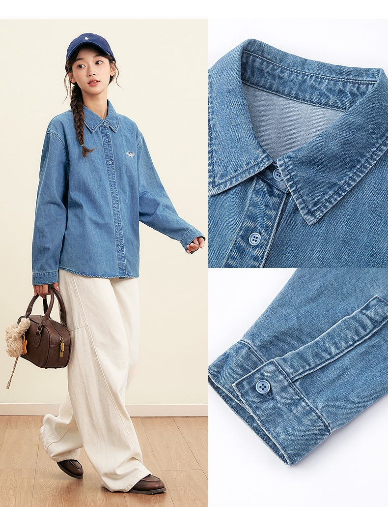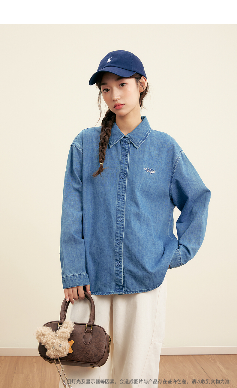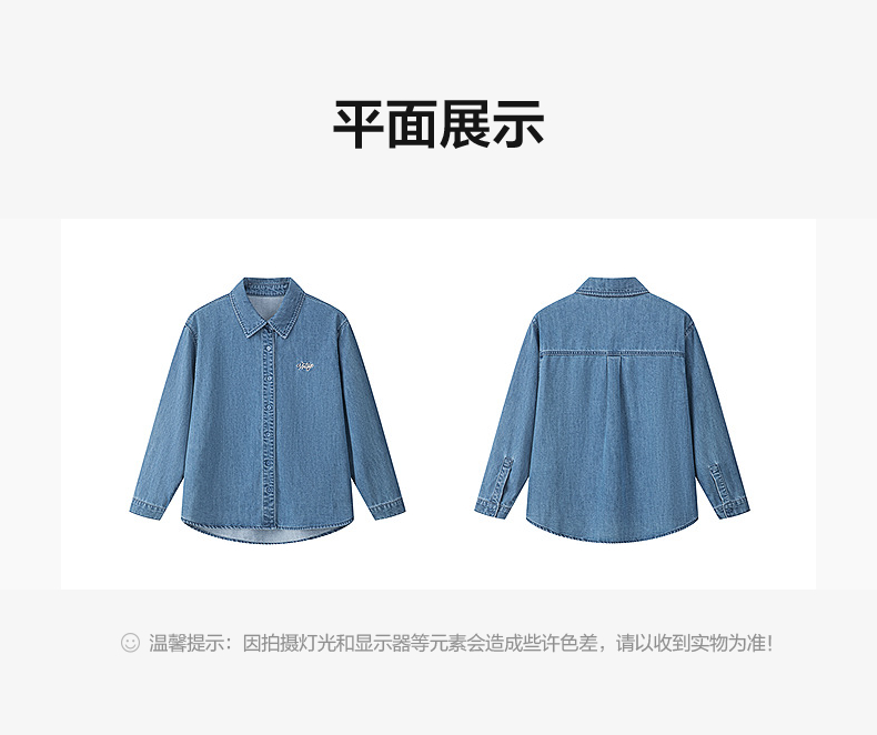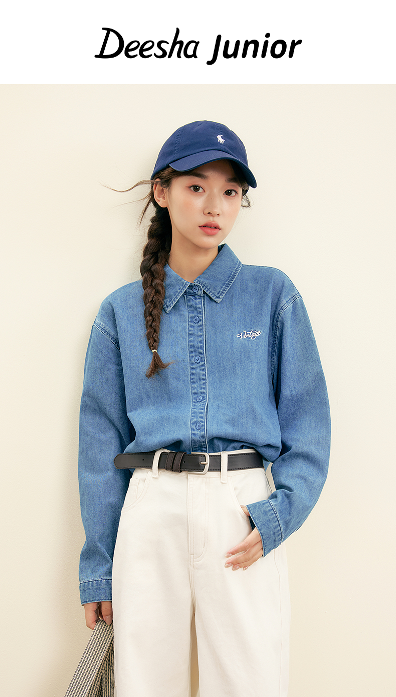 笛莎Deesha青少年女童衬衫2025秋季女童刺绣牛仔休闲衬衫