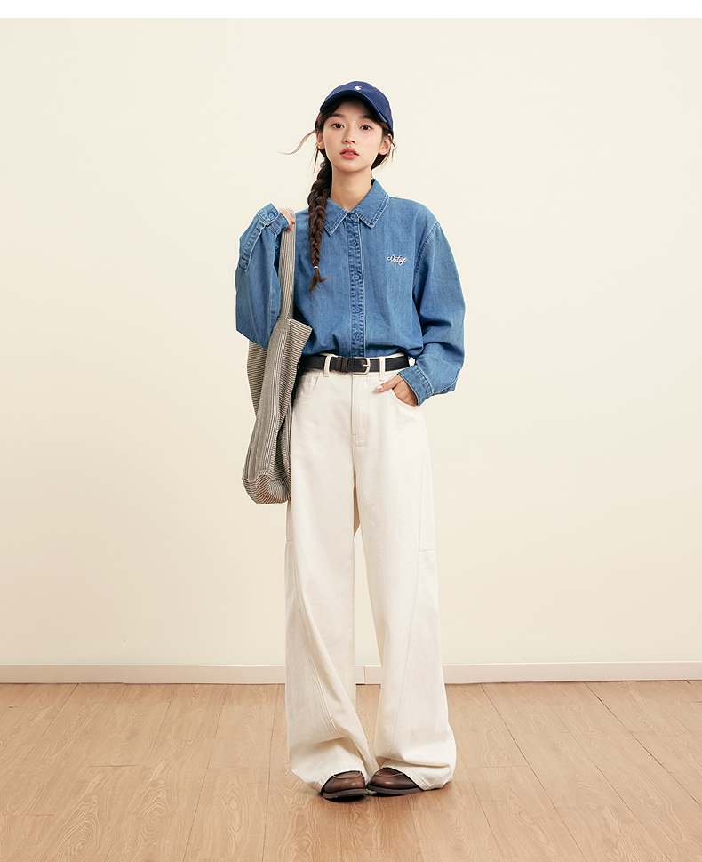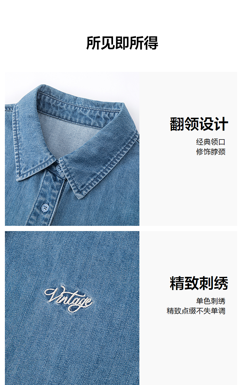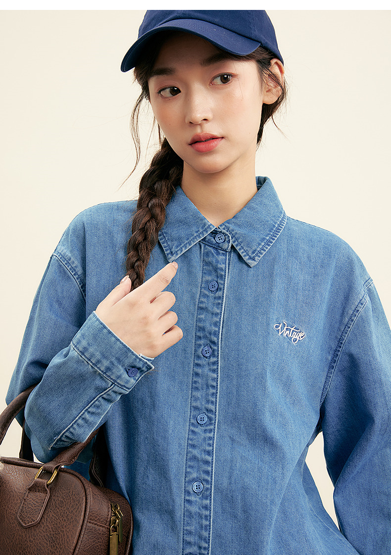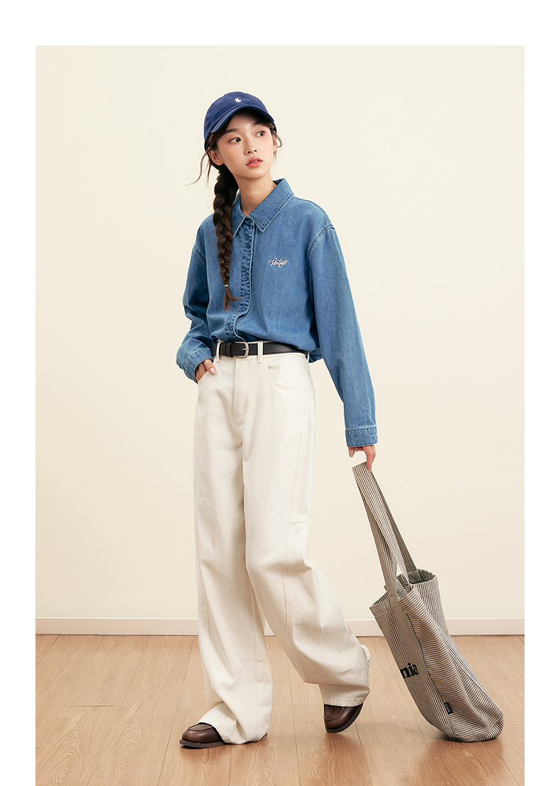 笛莎Deesha青少年女童衬衫2025秋季女童刺绣牛仔休闲衬衫