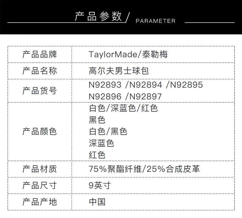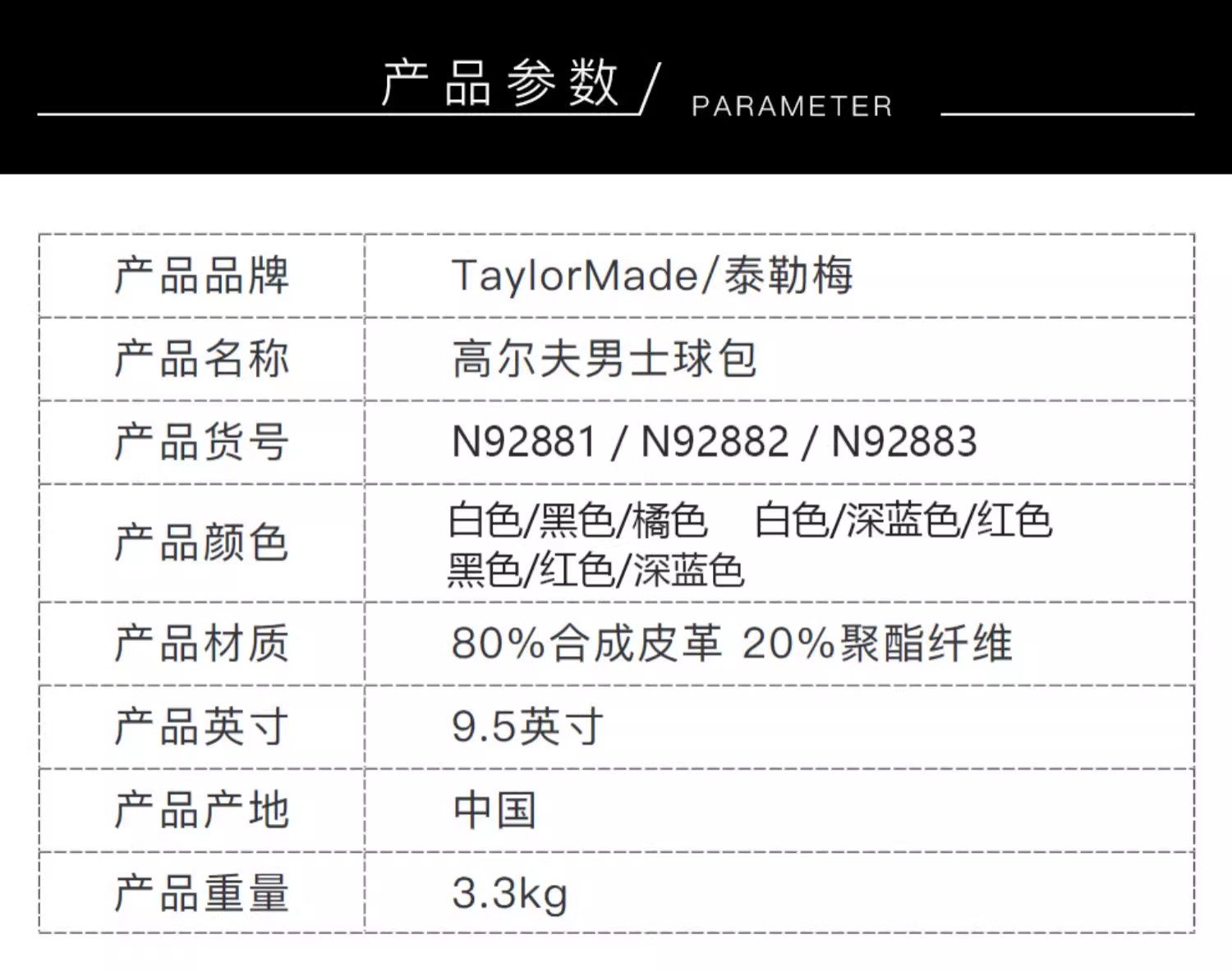 TaylorMade泰勒梅高尔夫球包立式便携车载时尚球包
