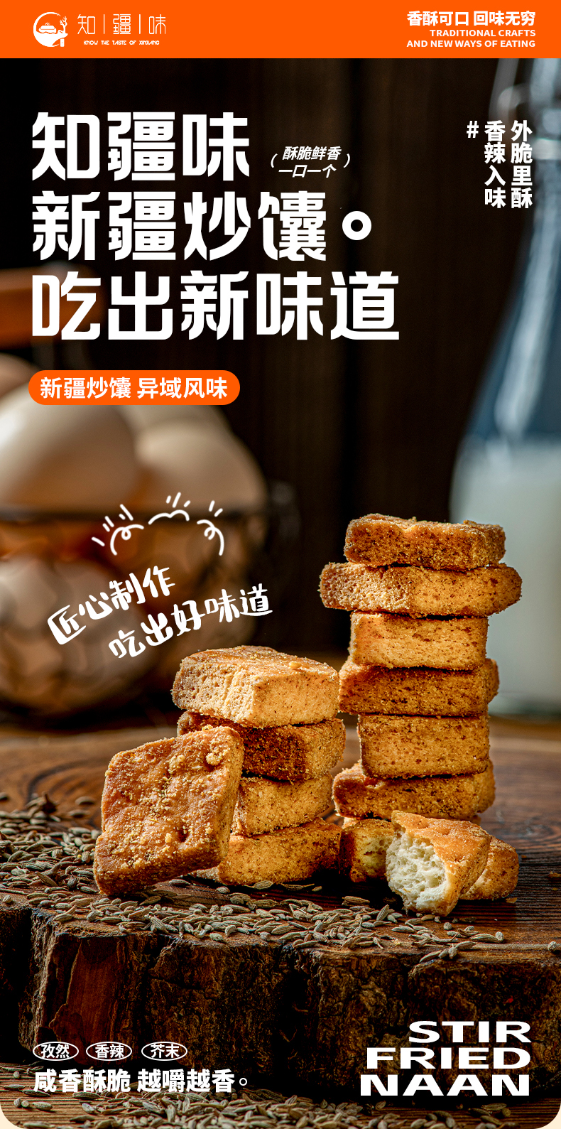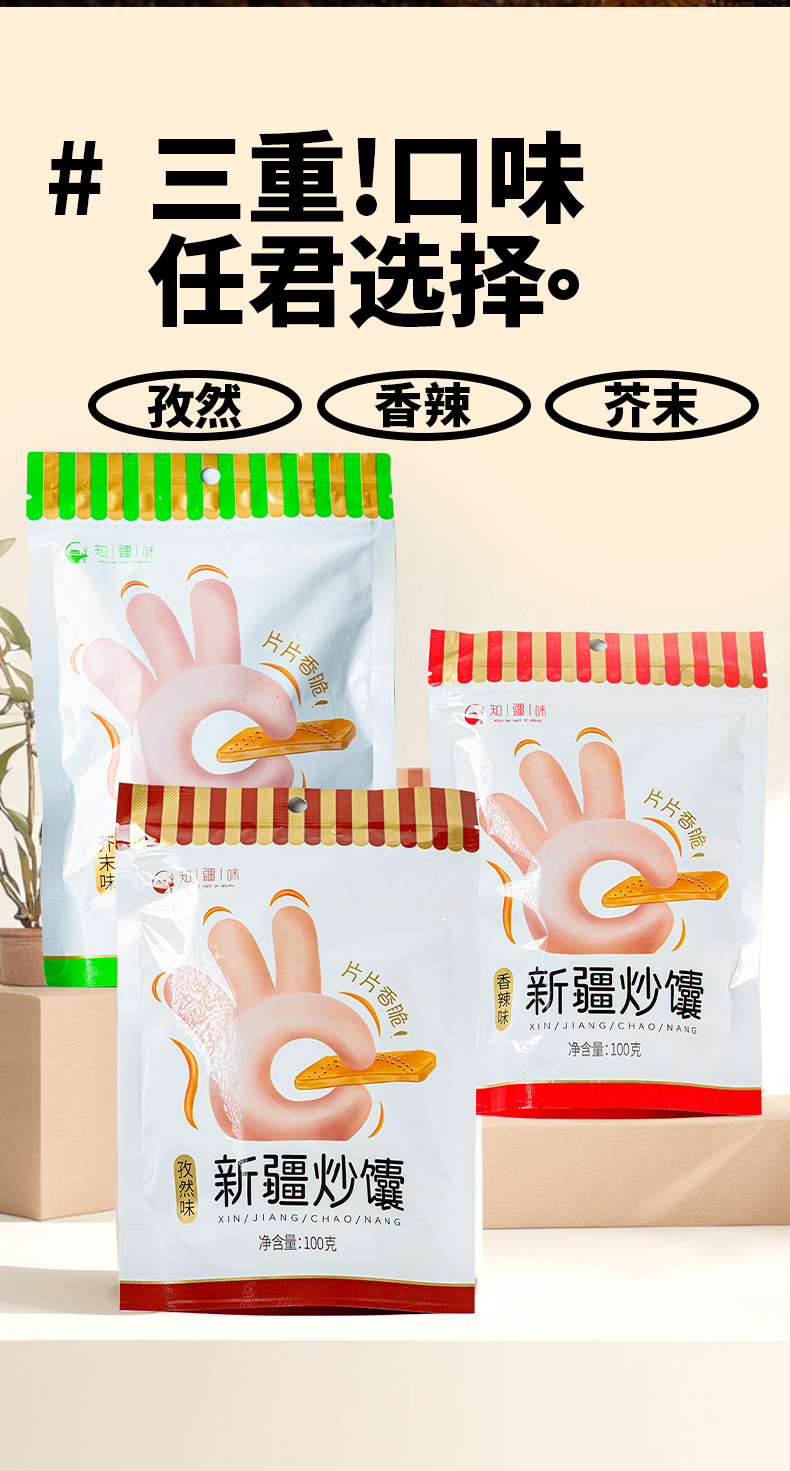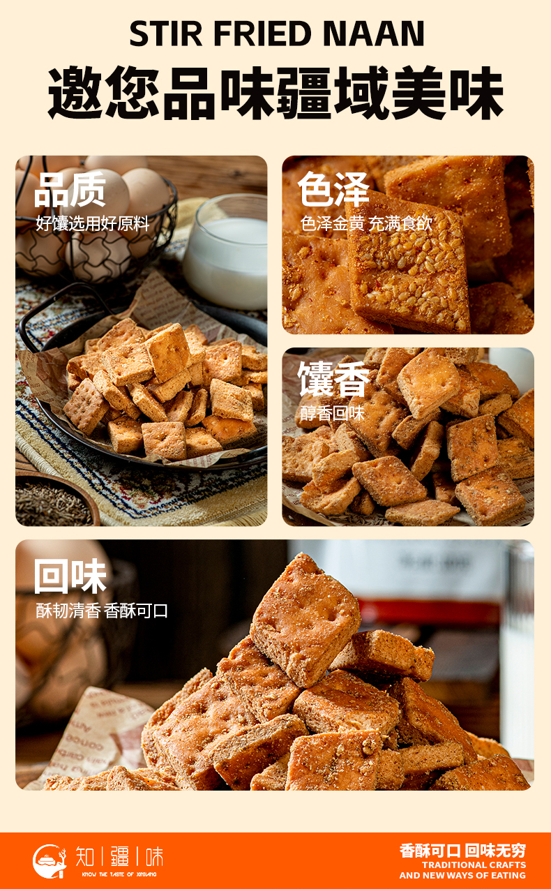 【品名/规格】【知疆味】新疆炒馕(100g/袋,孜然味/香辣味/芥末味)