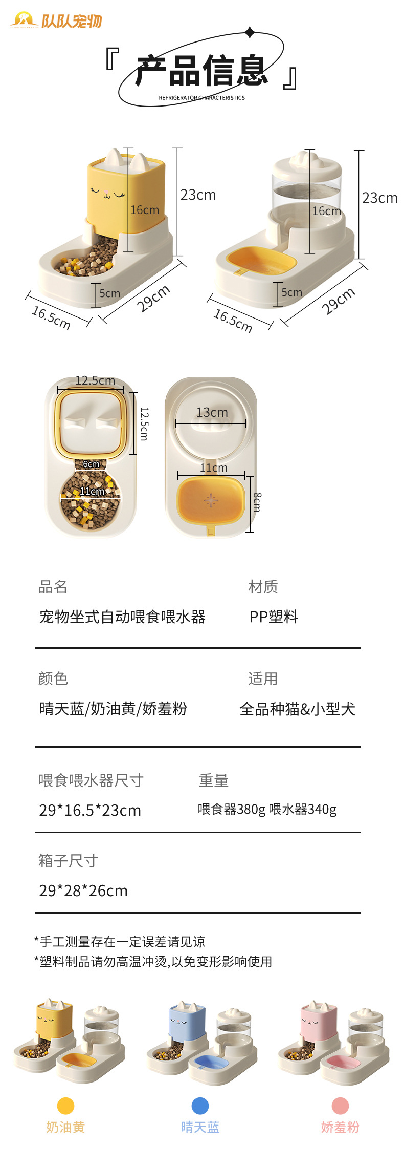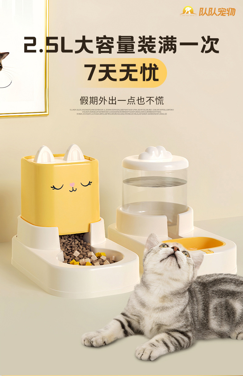 卡通猫咪坐式喂食器 喂水器 猫咪食盆自动喂食大容量