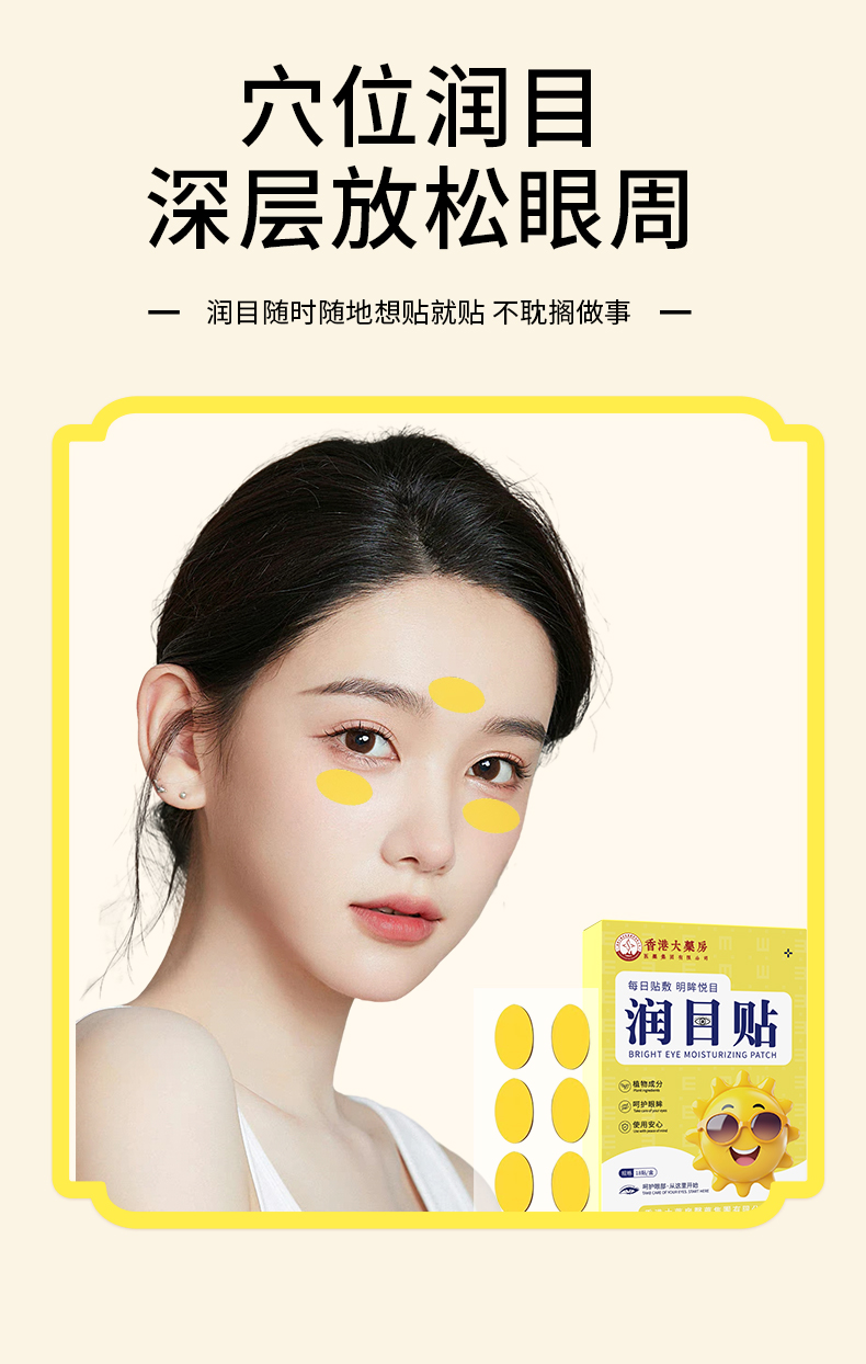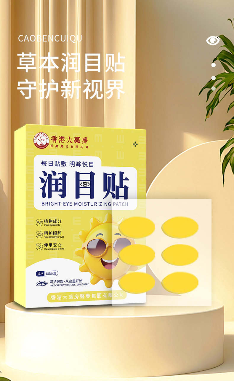 【舒缓疲劳!养护双眼】香港大药房润目贴 护眼做事两不误 植物成分呵护眼眸 长绒棉无纺布层