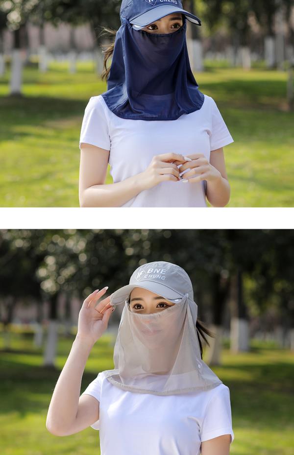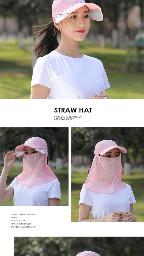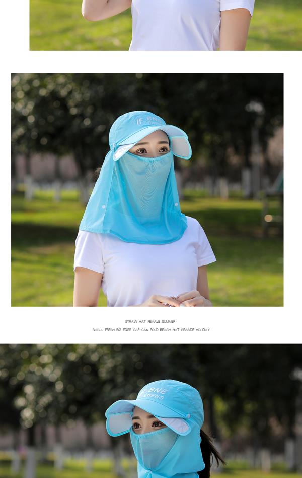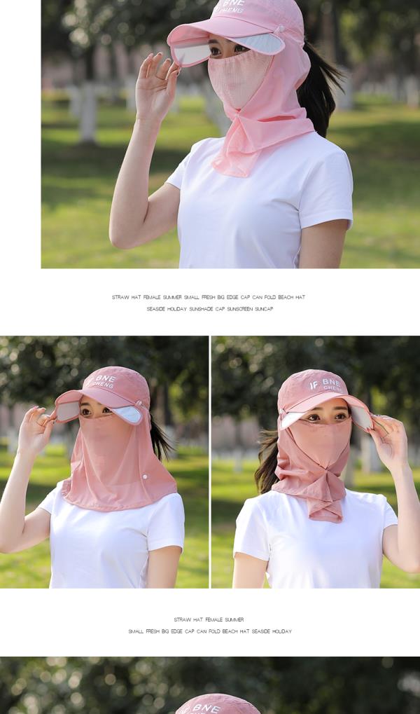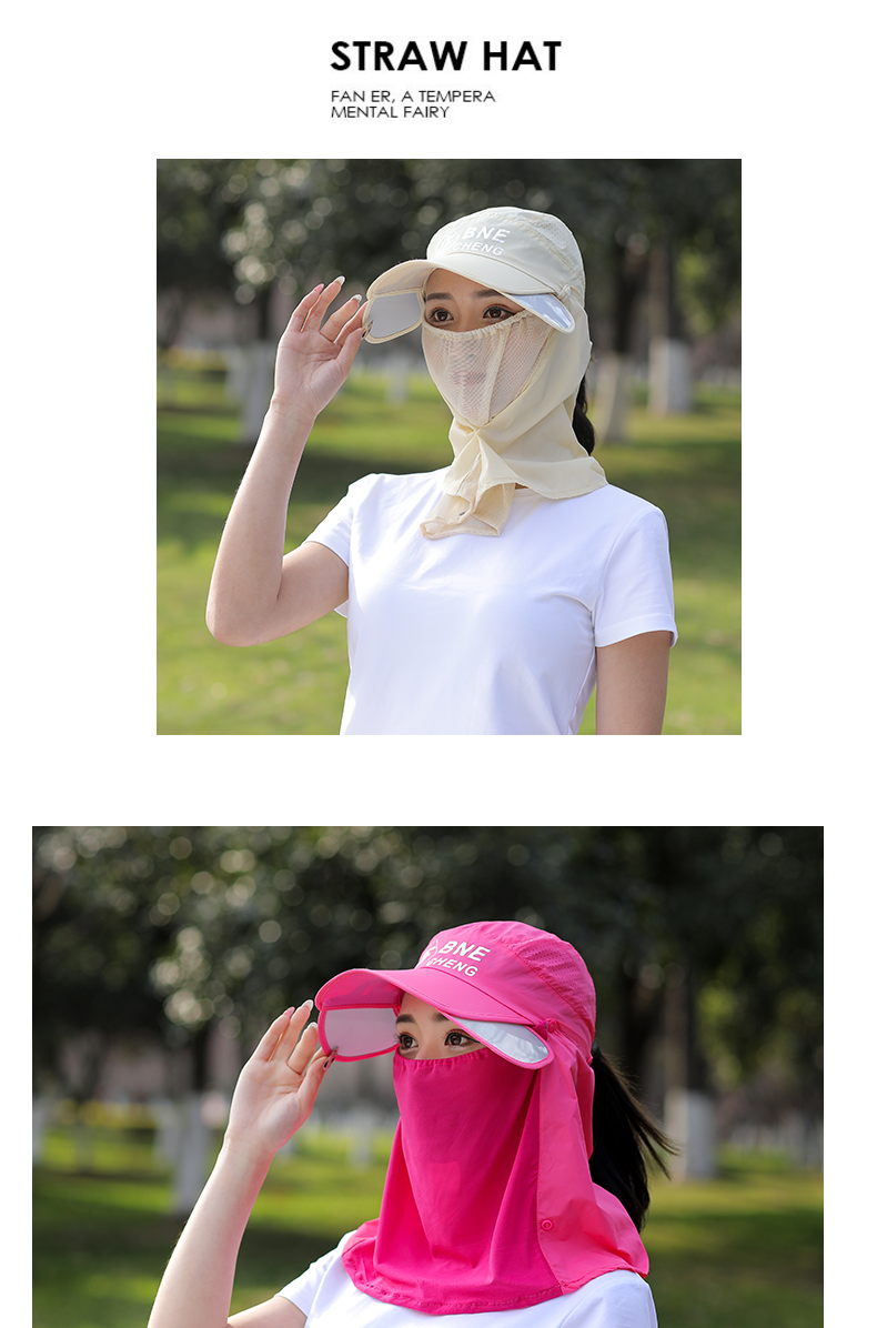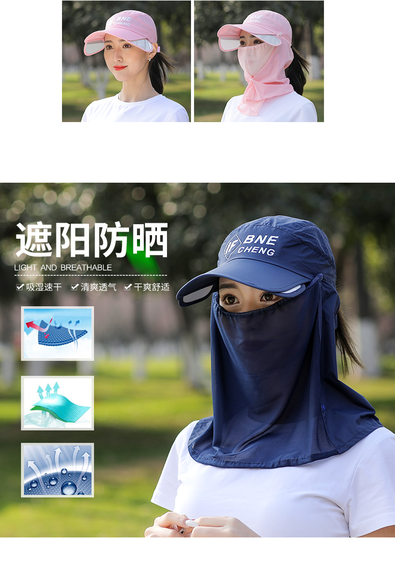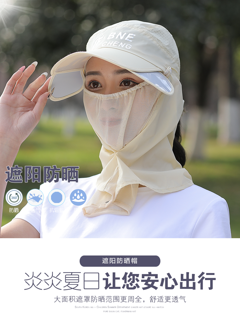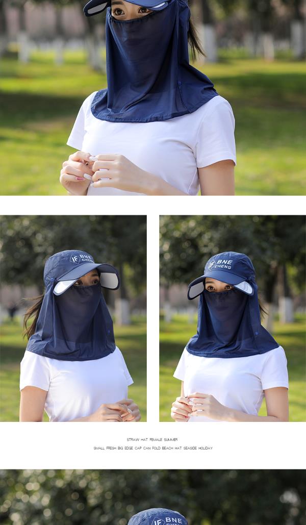 防晒帽子女夏遮脸护颈防紫外线太阳帽骑车户外遮全脸大沿遮阳帽男 WQ-25-BC拉板