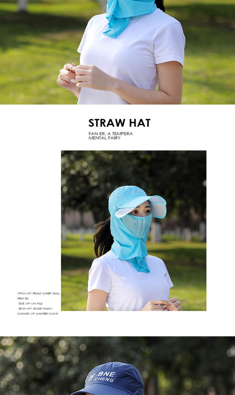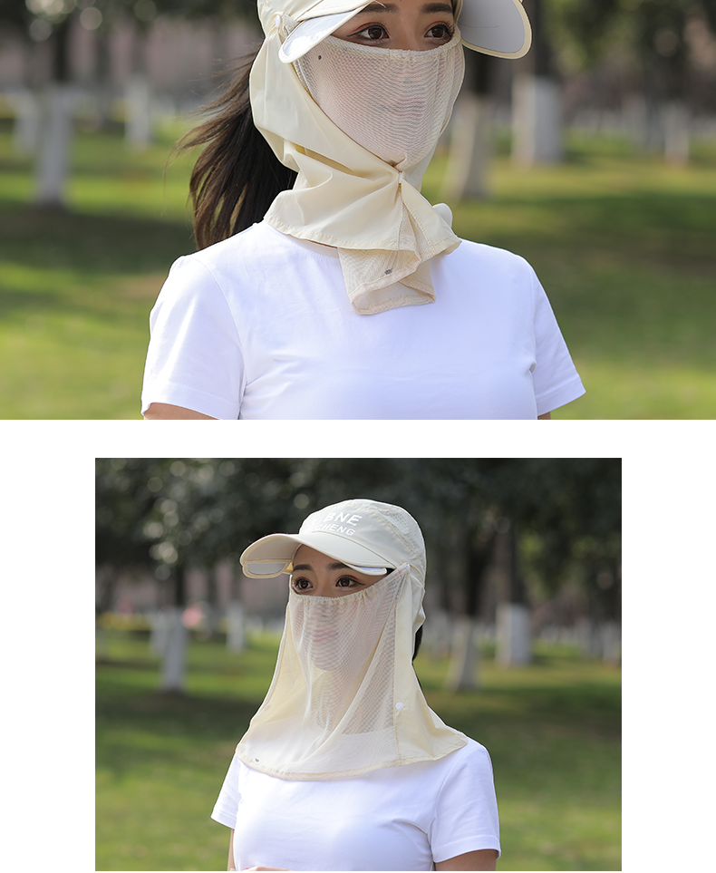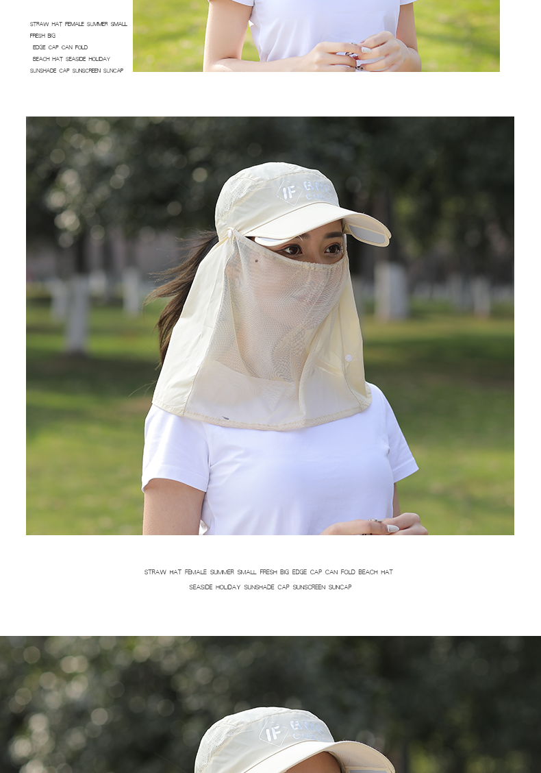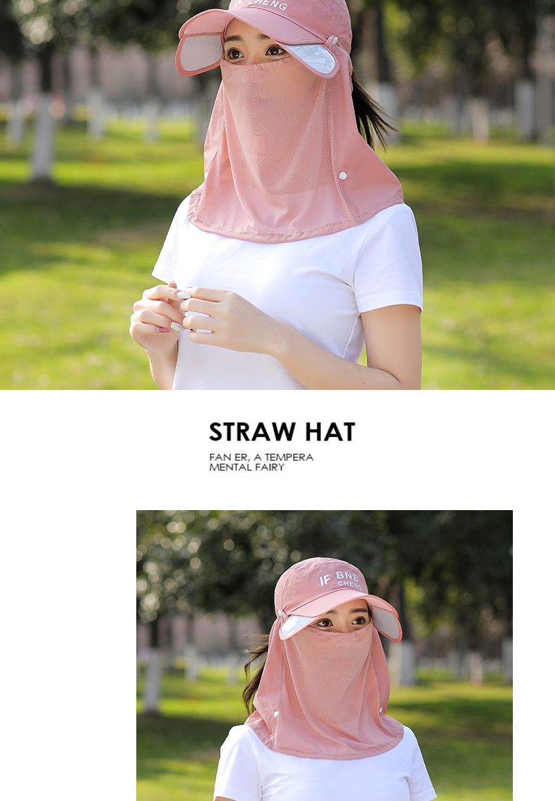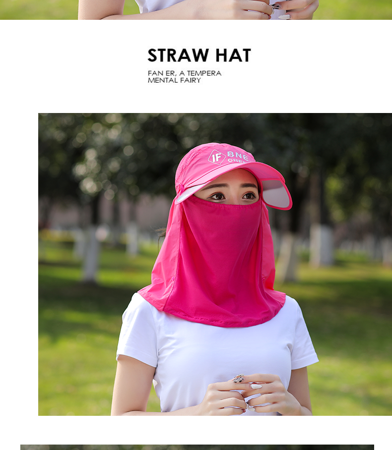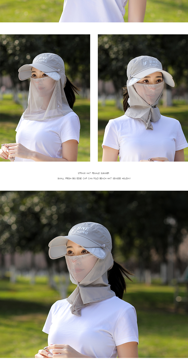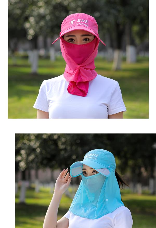 防晒帽子女夏遮脸护颈防紫外线太阳帽骑车户外遮全脸大沿遮阳帽男 WQ-25-BC拉板