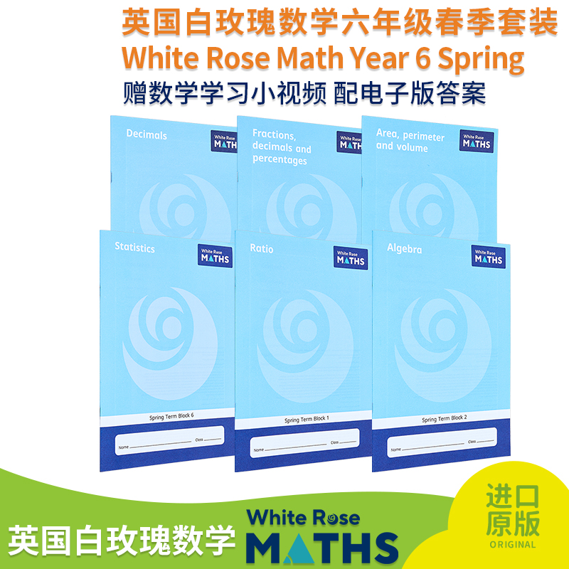 【中商原版】英国白玫瑰数学练习册六年级春季套装6册 White Rose Math Year 6 Spring Block 1-6 小学代数分数小数 英文原版