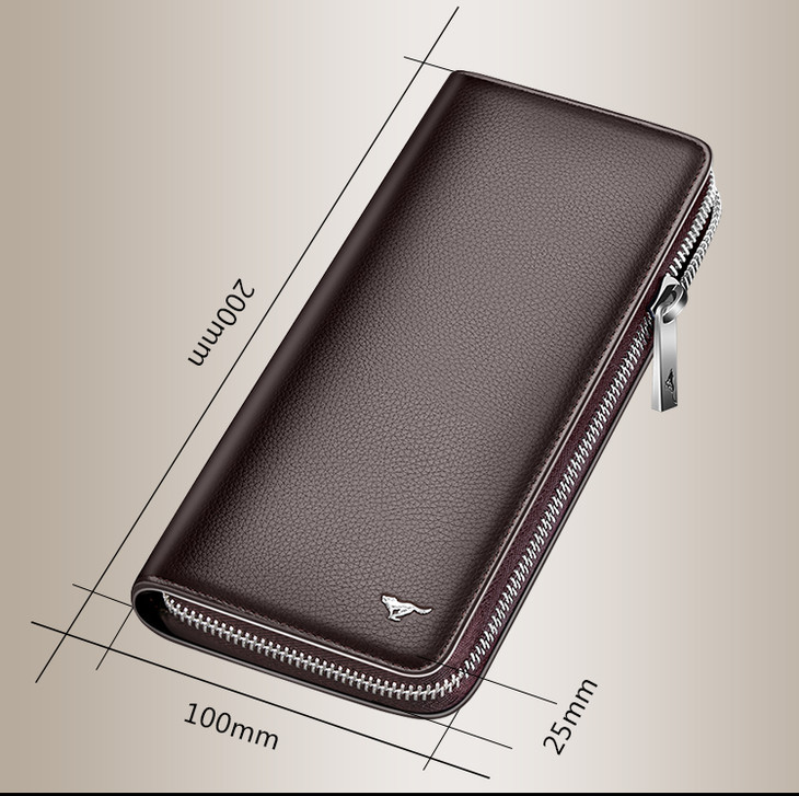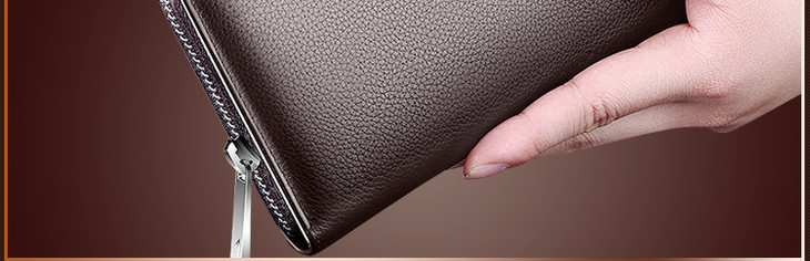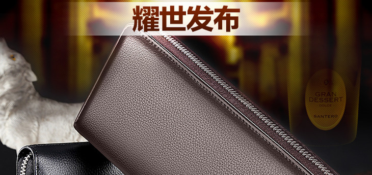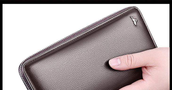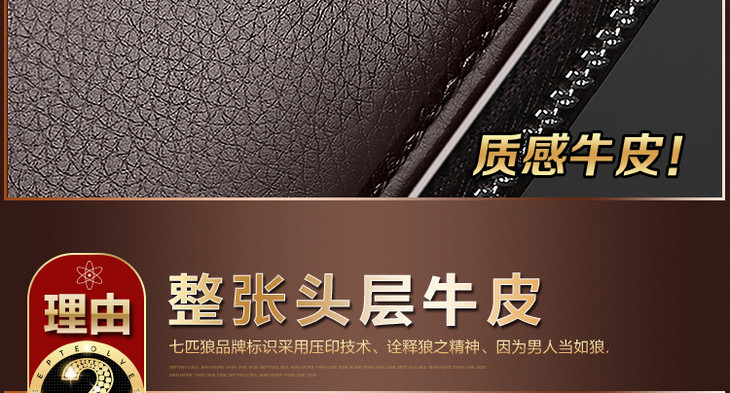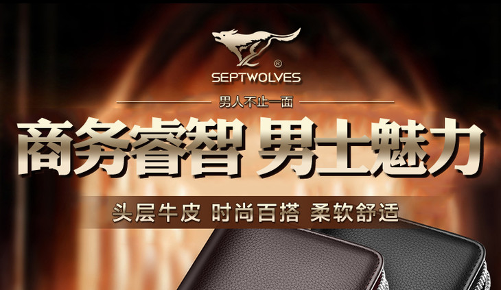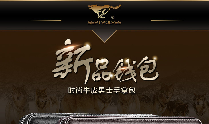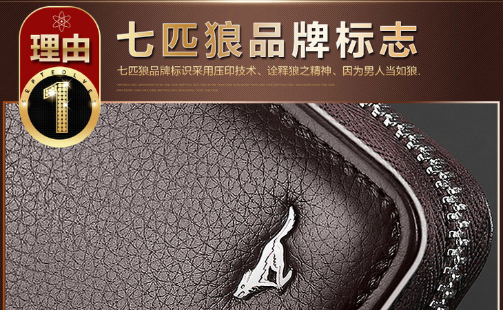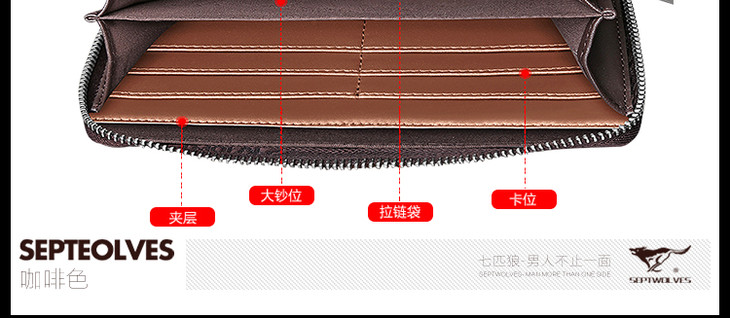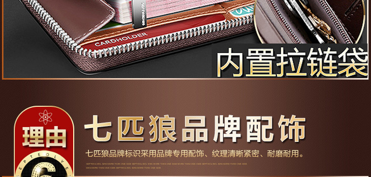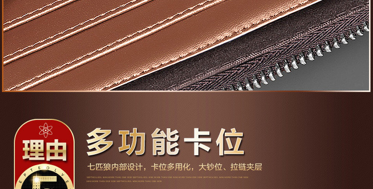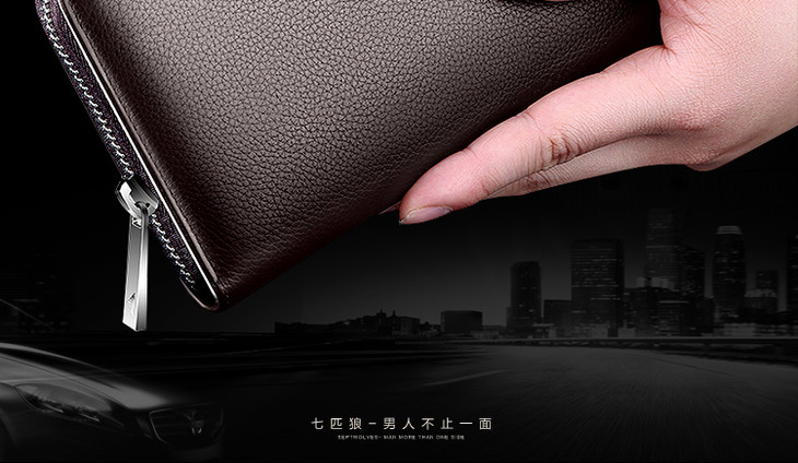 七匹狼男士手包 头层牛皮钱包多功能软皮商务男卡包手机包1A4964081-01 黑色